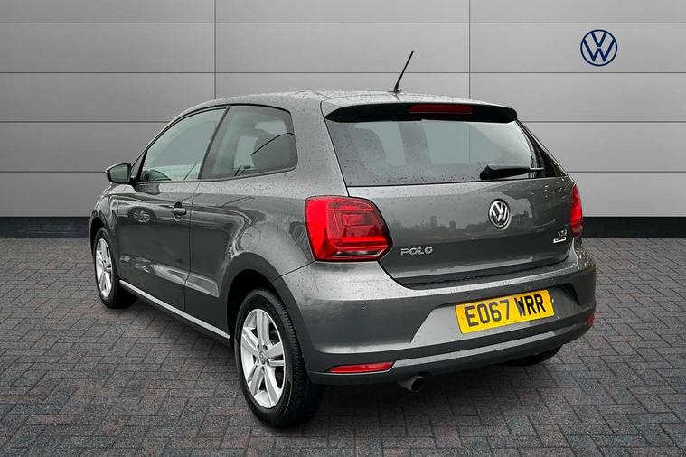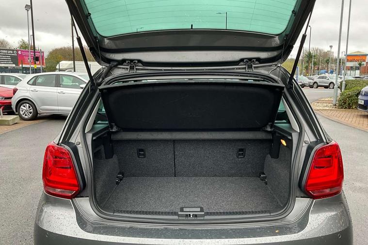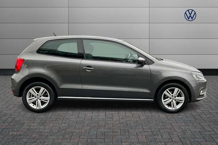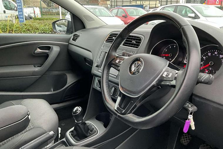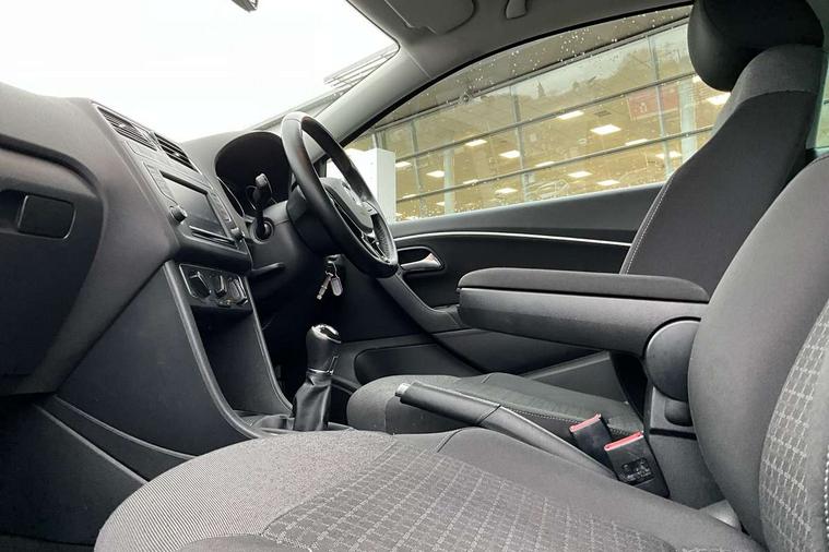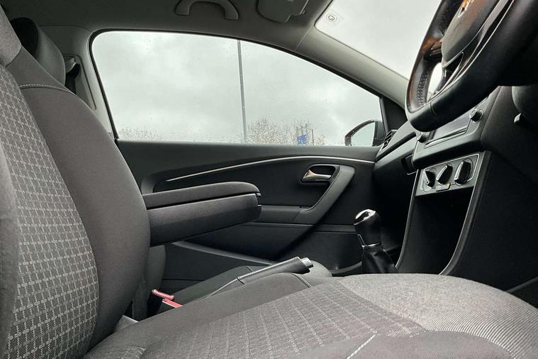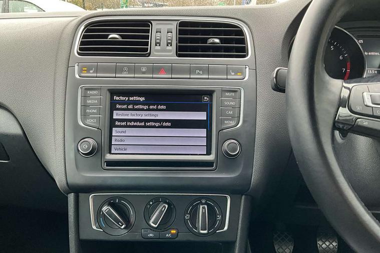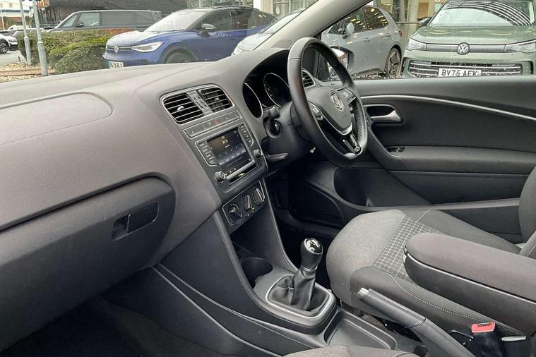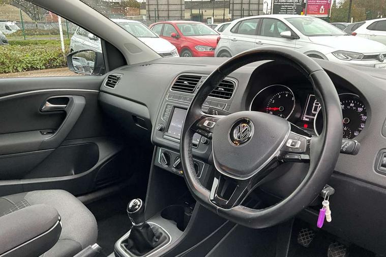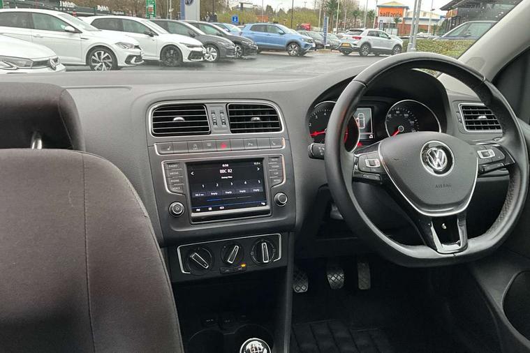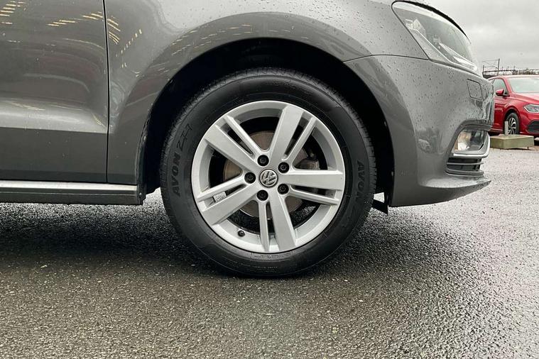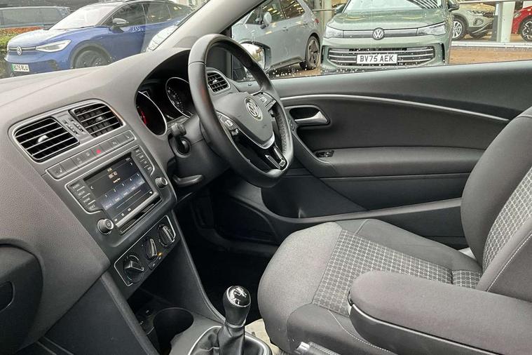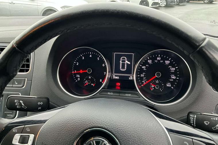 App-Connect, Bluetooth Telephone preparation, Driver alert system, Multi function display, Multifunction computer, PAS - speed related, Service interval indicator, Ultrasonic front and rear optical and audible parking sensors, Warning buzzer and light for front seatbelts unfastened, 6 speakers, Composition media system with radio, glovebox mounted CD, colour touch screen, SD card, aux-in, USB, multimedia interface, DAB Digital radio, Black grille with chrome surround, Body colour bumpers, Body colour door handles, Body colour door mirrors, Body coloured side sills, Chrome trimmed front air intake surrounds, Electric folding door mirrors, Electric front windows, Electric operated/heated door mirrors, Front fog lights with static cornering function, Front wash/wipe with interval delay, Heat insulated tinted glass 65% light absorbing from B pillar back, Heated rear window with auto timer, Rear windscreen washer and wiper with interval delay, 12V power socket in centre console, 2 bag hooks in luggage compartment, 2 cupholders, 3 rear head restraints, 3 spoke steering wheel, 4 grab handles, 60/40 split folding rear seat, Centre console storage, Chrome interior door handles, Driver and passenger sunvisors, Driver seat height adjust, Dust/pollen filter, Easy entry slide seats (access to rear seats), Front door pockets, Front passenger seat height adjust, Front seat backrest storage nets, Front/rear reading lights, Glovebox, Height/reach adjustable steering column, Illuminated vanity mirror, Interior light with delay, Isofix Preparation 2 Rear child seats, Luggage compartment cover, removable, Luggage compartment lighting, Matt chrome gear lever gaiter surround, Multifunction leather steering wheel with leather gear knob/handbrake grip, Storage compartment in front doors, Sunglasses holder, Variable boot floor, Light and sight pack - Polo, 3 point height adj front seatbelts + pretensioners, 3x3 point rear seatbelts, ABS, Automatic post collision braking, Driver/front passenger airbag, Driver/Passenger whiplash optimised head restraints, ESC - Electronic Stability Control + traction control, ESP with EDL + ASR, Hill hold control, Hydraulic Brake Assist (HBA), Tyre pressure monitoring system, Alarm with remote central locking and interior protection, Electronic engine immobiliser, Air vents in Matt chrome, Matt chrome interior trim, 15" steel spare wheel,