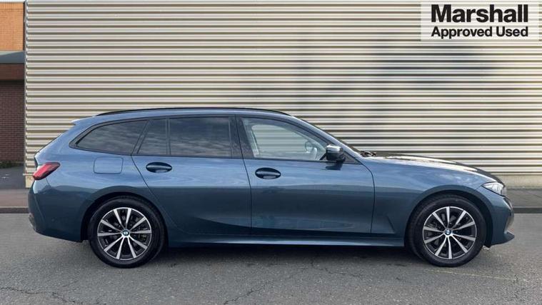 Active guard plus, Attentiveness assist, Automatic Start/stop button, Bluetooth Wi-Fi interface, BMW iDrive, BMW Teleservices, ConnectedDrive Services - last state call, Electric bootlid, Oil sensor for level and grade, PAS, Personal e-SIM, Shifting point display, Double joint spring strut front axle, Fuel tank breather system, Sport automatic transmission with steering-wheel mounted gearshift paddles and launch control, Standard suspension, DAB tuner, 3rd brake light, Auto dimming rear view mirror, Automatic headlight beam throw control with load dependent regulating reaction, dynamic compensation of braking dive and acceleration squat, Bi-LED Low and high beam headlights, BMW emblem, engine compartment lid and tailgate, BMW radiator grille with mesh grille and end face of the nuggets in quartz silver matt, Body colour roof fin, Door sill strips, Electric windows - front and rear, with open/close fingertip control, anti-trap facility and comfort closing, Fading support, Follow me home headlight function, Front and rear bumper system with replaceable deformation elements, Front apron plastic in body colour, Fuel filler flap - right rear in body colour, Heat protection glazing on front windows and windscreen, Heated washer jets, High gloss shadow line roof rails, LED daytime running lights, LED rear lights, LED turn indicator, Licence plate panel integrated into front bumper and tailgate, M high gloss shadow line exterior trim, Matt black B-pillar finsher, Matt black window recess cover, One piece front bumper cover including towing eye cover in body colour, Radiator grille frame in chrome matt, Rain sensor with automatic headlight activation, Rear side wing doors, Rear wiper, Reversing lights, Side frame decorative moulding black matt, Trailer stabilisation logic, Visible exhaust tailpipe finisher, Welcome lights in interior and door handle area, 12V power socket in front storage compartment, 2 front cupholder in centre console with clamping elements and matt black inlay, 3 seat bench in 2nd row, 3 zone automatic air conditioning, 40:20:40 split folding rear seat with loading system, Armrest integrated in front and rear door trim + front centre console armrest, BMW ID, Cruise control operation in steering wheel, Driving experience mode switch, Folding rear centre armrest with 2 cupholders, Front and rear headrests, Front and rear velour floor mats, Front footwell lighting, Front reading light, Heated front seats, Height adjustable mechanically and infinitely variable steering column, Illuminated armrest storage compartment, Illuminated glove compartment, Illuminated luggage compartment, Lashing eyelets in luggage compartment, Single front passenger seat, Sunvisors with illuminated vanity mirrors and ticket pocket, Three spoke multifunction sport leather steering wheel, Toolkit located in luggage compartment, Connected pack professional - 3 Series Saloon/Touring, Interior and exterior mirror pack - 3 Series Touring/Saloon, 3x3 point rear seatbelts, BMW emergency call, Child locks on rear doors, Crash sensor activating of airbags, Unlocking doors, hazard warning lights, interior light, safety battery terminal, Drive-off assistant, Driver and front passenger with seat occupancy detection for driver's and passenger side, Driver and passenger side airbags, body protection at side and airbags deploy from seat backrests, Dry braking, Dynamic brake control, Dynamic stability control + (DSC+) - Anti-lock Braking System (ABS) with brake assist and cornering brake control + Automatic Stability Control (ASC), Dynamic Traction Control - DTC, Electric parking brake including automatic hold function and automatic release of the parking brake when driving off, Electronic differential lock control (EDLC), Front airbag deactivation, Front airbags for driver and front passenger, Head airbags in 1st and 2nd row, head protection at side, curtain airbags open from headliner above 1st and 2nd row, Plastic fuel tank, Side impact protection, Tyre pressure sensors, Ventilated front and rear disc brakes, Warning triangle and first aid kit, Alarm system, Centre lock switch, Closing system with central locking, Electronic vehicle immobiliser, Locking wheel bolts,