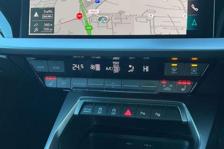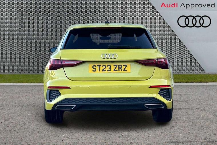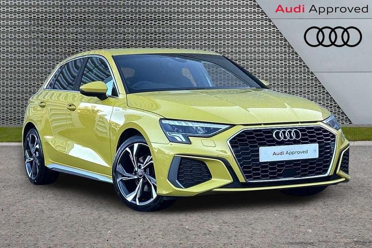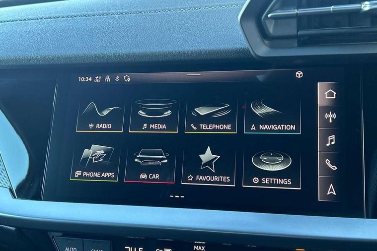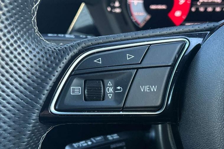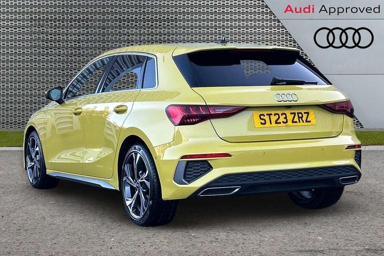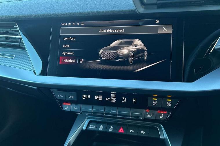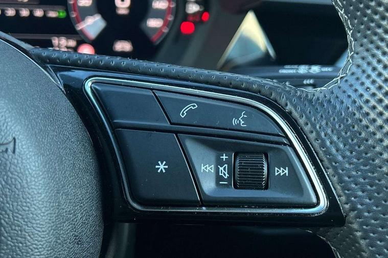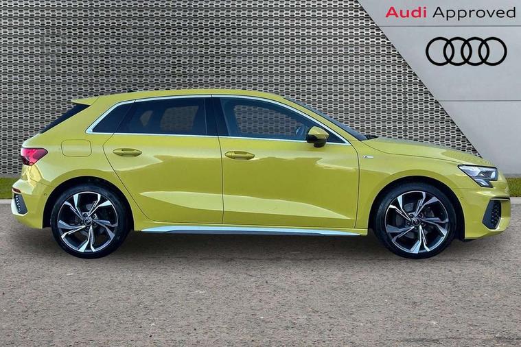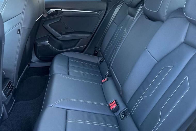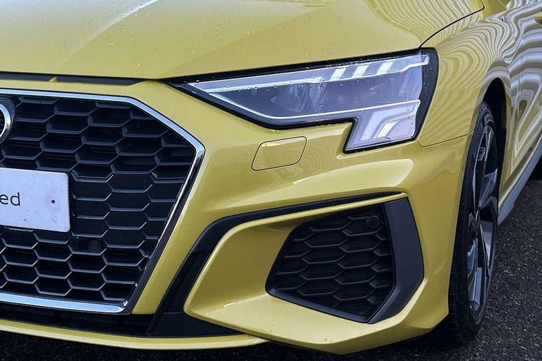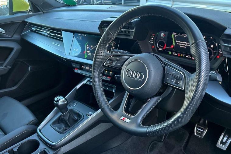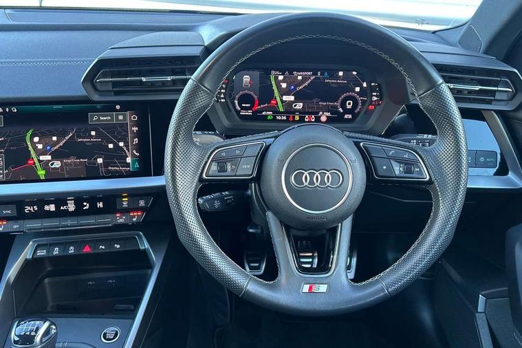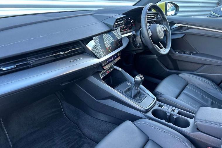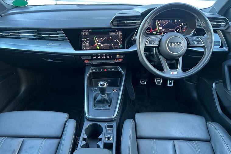 Audi drive select (Auto, Comfort, Dynamic and Individual), Audi smartphone interface, Audi Virtual Cockpit - 10.25" digital and colour instrument cluster, Automatic start/stop system with recuperation, Bluetooth interface, Camera based traffic sign recognition, Collision avoidance assistant, Cruise control, e-Call (emergency call), Electromechanical power speed sensitive steering, Lane departure warning system, MMI Navigation Plus with high resolution 10.1" colour touch screen display, Rear parking sensors, Service indicator, Trip computer, Voice control system with natural language interaction, Sports suspension, 2xUSB-C connection with data and charging functions, 6 passive loudspeakers, DAB Digital radio, 3rd brake light, Acoustic glass windscreen, Aluminium window trim, Auto dimming frameless rear view mirror, Body colour exterior mirrors, Electrically adjustable/heated/folding/auto dimming door mirrors with integrated LED indications + kerb view function for passenger side, Front electric windows, Illuminated door sills with aluminium inserts at the front with S logo, LED daytime running lights, LED headlights with LED rear lights and dynamic rear indicators, Light and rain sensors, Privacy glass - dark tinted rear window, rear door and side windows, Rear electric windows, Rear side air outlets in grained matt black, Rear side wing doors, Rear wiper, S line bumpers, S roof spoiler, 12V socket and storage compartment in front centre console, 3 seat bench in 2nd row, 3 spoke leather multifunction steering wheel, 4 way electrically adjustable lumbar support for driver and front passenger, 60/40 split folding rear seat bench, Black cloth headlining, Dual zone electronic climate control, Front and rear centre armrest in artificial leather, Front and rear headrests, Front/rear floor mats, Height and reach adjustable steering wheel, Interior lighting - glove compartment light and right hand side, Luggage compartment floor covering, Manual boot compartment lid, Manually adjustable front seats, Seat side bolsters, Single front passenger seat, Stainless steel pedals and front footrest in black, Twin leather upholstery with front sports seats S embossed logo, Aluminium interior elements pack - A3 Sportback, LED interior lighting pack - A3 Sportback, S line styling pack - A3 Sportback, 3x3 point rear seat belts, Driver and front passenger airbag with passenger airbag deactivation, Electronic Stabilisation Control (ESC) including ABS, ASR and EDL, First aid kit with warning triangle and 2 safety vests, Front side airbags with head airbags and interaction airbag, Pre-sense front with pedestrian and cyclist detection, Seatbelt monitoring, Tyre pressure loss indicator, Anti theft alarm, Anti-theft wheel bolts, Electronically operated child locks, Immobiliser, Remote control central locking, Dark spectrum aluminium inlays, accent surfaces in the dashboard and centre console in platinum grey silk effect paint finish,