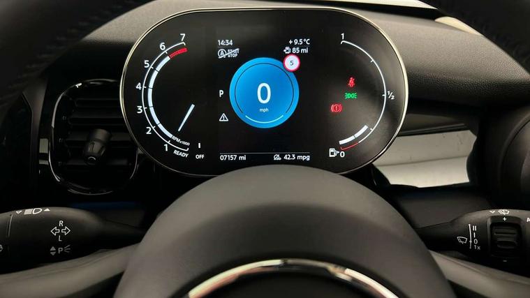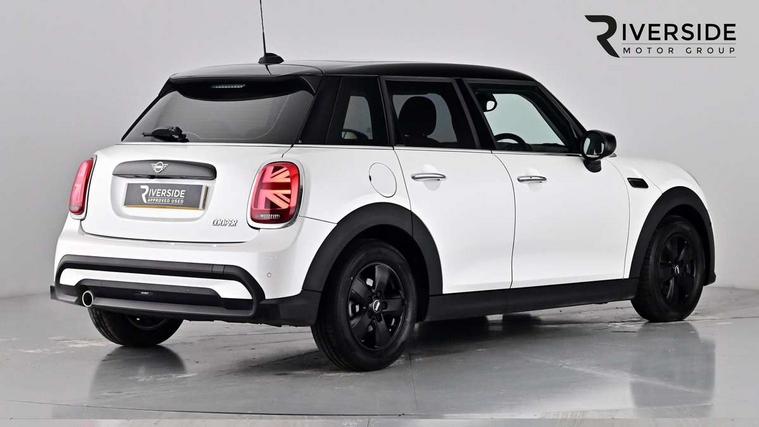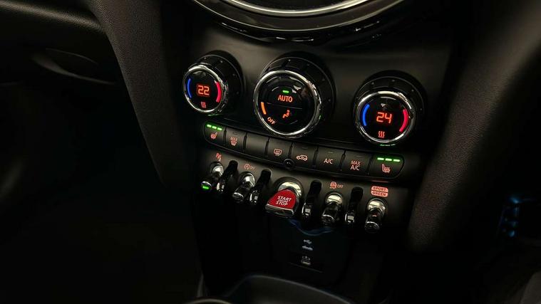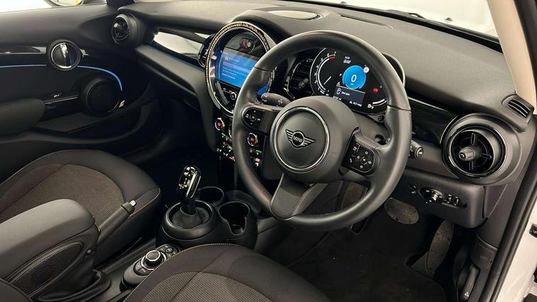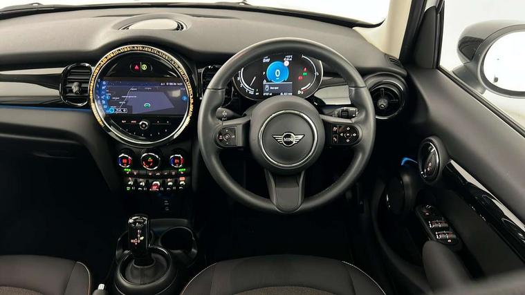 Apple CarPlay, Automatic start/stop function with brake energy recuperation, Compatible mobile phone bluetooth with audio streaming, Electro-mechanical speed dependant steering assistance, Flexible car sharing preparation, Mini E-call, MINI TeleServices, On board computer, Service interval indicator, Double Vanos system, Fully variable valve control, Gear change indicator display, High precision injection, Performance Control, Steptronic transmission with double clutch, 8.8" touchscreen with LED ring, FM tuner and DAB digital radio, 3rd brake light, Automatic headlight activation switch, Body colour fuel filler cap, Chrome border high gloss black slats radiator grille, Dynamic brake lights, Electric front+rear windows, Exhaust tailpipe on left with chrome finisher, Heated rear window, Heated windscreen washer jets, Metal door sill strips with MINI imprint, Model logo Cooper on right of tailgate, Rain sensor window wipers, Rear fog lights, Rear LED lights with union jack design, Rear side wing doors, Rear window wiper, Side scuttle panel with integrated indicator, Sun/heat protection glass, White indicator lenses, 12V Accessory socket in centre console, 3 seat bench in 2nd row, 4 lashing eyes in luggage compartment, 60/40 split folding rear seat, Ambient lighting, Carbon black colour line - Knee roll and door armrest, Chrome interior highlights, Cupholders, Front and rear head restraints, Front and rear isofix with front passenger airbag deactivation, Front and rear velour floor mats, Glove compartment, Height and length steering column adjustment, Interior lighting with 12 different colours across the dashboard, underneath door bezel with illuminated laser-engraved design on central display, Leatherette gearshift lever and handbrake gaiters, LED reading lights, vanity mirror lights, front foot well light and spotlight on front seats, Mechanical seat adjustment - forward/back & backrest for front seats and driver seat height adjust, Multifunction steering wheel, Satellite grey headlining including grab handles and clothes hooks, Single front passenger seat, Sport leather steering wheel with speed limiter and audio/communication controls, Storage compartments in doors, Sunvisors with vanity mirrors, 3 point seatbelts on all five seats, 6 Airbags - front, side, head and seat belt tensioners, Anti-lock braking system (ABS), Child locks on rear doors, DSC - Dynamic Stability Control, Front and rear disc brakes, Hill start assist, Single tone fanfare horn, Tyre pressure monitoring system, Alarm system with tilt sensor, monitoring doors, bonnet interior and tailgate, Electronic vehicle immobiliser, Start/stop toggle with keyless go, Piano black interior trim, Tool kit, Tyre repair kit,