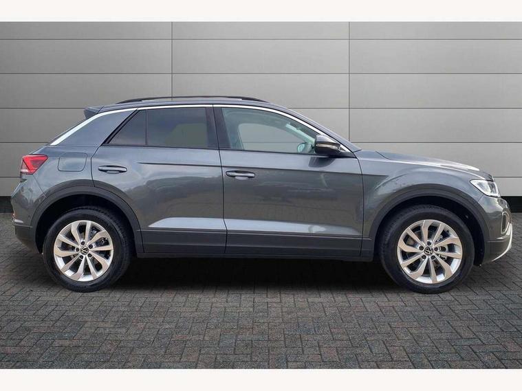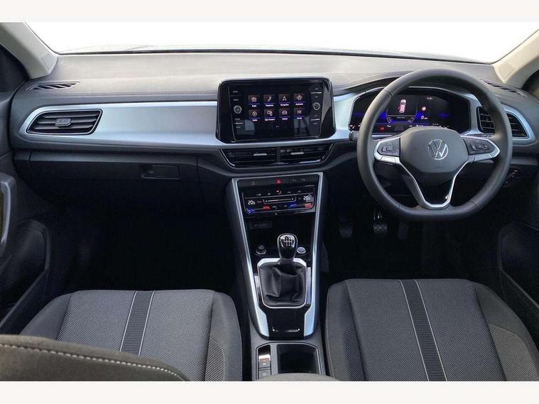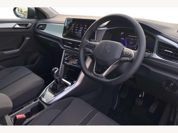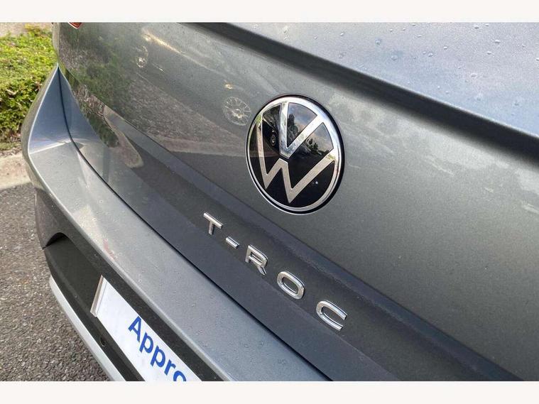 Advanced driver attention and drowsiness monitor, Dynamic road sign display, Emergency call service, Lane keeping system Lane Assist, Mobile phone interface, Modified key software - reduce switch off time for key status change to Long no motion, Online services, Park assist including front and rear parking sensors, Power assisted speed sensitive steering, Rear view camera, Service interval indicator, Tailgate/trunk lid release from outside, Think blue trainer driver tips and journey analysis, Warning sound and light for front seatbelts unfastened, Wireless app connect, Battery regeneration during braking, Front shock absorption, Rear shock absorption chassis with increased ride height, Start/stop function with battery regeneration, DAB Digital radio, Diversity antenna for FM reception, Music playback - MP3, WMA and AAC files, Premium USB cable in choice of either Apple or Android smartphone compatibility, SD card slot, Simultaneous pairing of 2 compatible mobile devices, Title and cover art display, We Connect and We Connect Plus functionality, Auto dimming interior rear view mirror, Automatic hazard lights activation under emergency braking, Automatic headlight control with LED separate daytime running lights with coming/leaving home function, Black roof rails, Body coloured bumpers and radiator grille with chrome trim and front fog lamps with chrome bezel, Body coloured exterior mirror housings and door handles, Electrically adjustable and heated door mirrors, Extended roof spoiler, Exterior mirrors aspherical on driver side, convex on front passenger side, External USB type C socket and charging sockets, Front windscreen wiper with intermittent wipe and 4 position delay, Heated rear window, LED 3rd brake light, LED rear combination lamps, LED rear number plate lights, Power windows with comfort operation and circuit breaker, Privacy glass for rear side windows and rear window, Rain sensor, Rear exhaust tailpipe, Rear fog light on one side and reversing lights on both sides, Rear side wing doors, Rear wash/wipe with intermittent wipe setting, Remote electrically foldable door mirrors, puddle lights and reverse activated passenger's door mirror, 12V power socket in centre console, 3 rear head restraints, 3 seat bench in 2nd row, 4 load lashing points in luggage compartment, Air care climatronic air conditoning system with active combination filter and 2-zone temperature control, Black stitching for floor mats, Ceramique roof liner, Cloth upholstery, Door and side trim panel in cloth, Drawer under drivers seat, Driver/front passenger seat height adjustment, Front centre armrest, Front comfort sports seats, Front cupholders x 2, Front reading light, Front seat back storage pockets, Glove compartment door with light, Instrument lighting, white adjustable panel illumination, Interior ambient lighting and surround lighting, Interior light delay, Isofix child seat preparation, Leather gearshift handle, Load-through provision with cup holder when folded down ('Unsplit rear seat bench, split folding backrest, with centre armrest), Luggage compartment lighting, Lumbar support for driver's and front passengers seat, Non-folding front passenger seat backrest, Single front passenger seat, Storage compartment in left and right luggage area, Storage compartment in rear doors, Storage compartments in driver and front passenger doors, Sunvisors with illuminated vanity mirrors, Variable boot floor, height adjustable and removable, Driver assistance pack without proactive passenger protection - T-Roc Life/Match, 3 point height adj front seatbelts + pretensioners, 3 point seatbelts in outer rear with ECE label, ABS, Child locks on rear doors, City emergency braking and pedestrian monitoring, Driver and front passenger airbag with front passenger airbag deactivation, Driver and front passenger safety-optimised head restraints, Drivers seatbelt reminder, Electronic parking brake, Electronic Stability Control (ESC) inc EDL (Electronic Differential Lock) and ASR (Traction Control), Front and rear passengers curtain airbag system including front side airbags, Front disc brakes, Hill start assist, Predictive pedestrian protection, Rear disc brakes, Two tone horn, Tyre pressure loss indicator, Volkswagen roadside assistance, Alarm with interior protection, Keyless locking and starting system keyless access with safelock, Pewter matt decorative inserts for intrument panel, centre console and door panels at the front, Trims for alloy wheels,