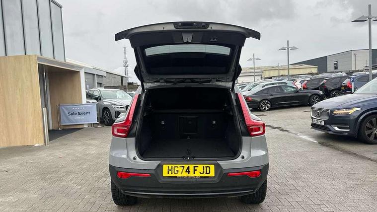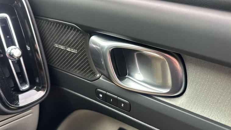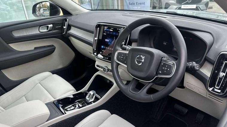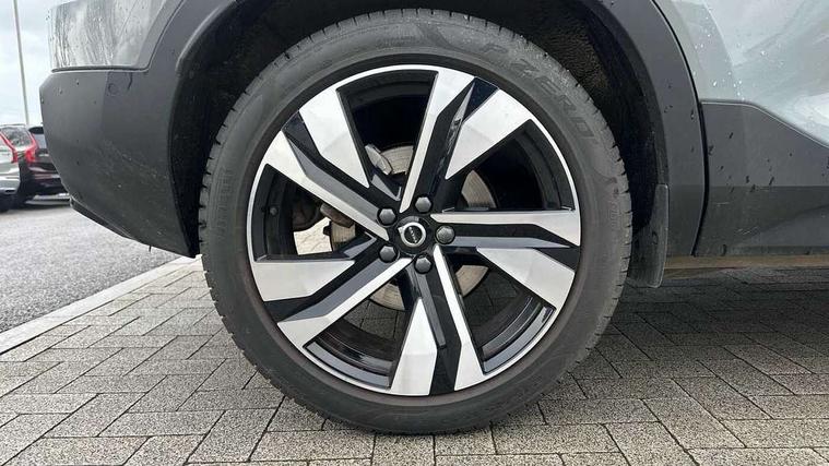 12.3" Progressive Driver Display, 360 degree surround view parking camera with side proximity sensors, 9" centre console portrait touch screen, Adjustable steering wheel force, Apple carplay (wired), Bluetooth handsfree system, Driver alert control, Driver assistance (pilot assist and adaptive cruise control), Driver awareness - Blind spot information system with steer assist, cross traffic alert with autobrake and rear collision warning and mitigation, E-call, Google automotive services - Enabled entertainment apps, navigation with google maps, voice recognition with google assistant, Hands free power tailgate, Intelligent speed assistance, Lane keeping aid, Oncoming Lane Mitigation, Speed sensitive steering, Volvo cars services with app - Driving journal, emergency and breakdown call, engine remote start, remote door locking/unlocking and vehicle dashboard, Wireless/Inductive Mobile Phone Charging, Automatic transmission with start/stop and manual change functions, Dynamic chassis, DAB Digital radio, Premium Sound by Harman Kardon, Dolby Pro Logic II Surround Sound, Dirac Unison, 12 speakers/600W and subwoofer, Steering wheel mounted remote controls, Active bending pixel LED headlights with adaptive shadow technology, Active high beam incorporating daytime running lights, Adaptive brake lights with high level LED brake lights, Auto dimming feature for exterior door mirrors, Auto dimming interior mirror, Automatic headlamp levelling, Dark tinted windows - rear side windows and rear screen, Front aluminium tread plates, Front and rear electric windows, Headlight cleaning system, High gloss black front and rear skid plate, High gloss black front bumper deco, High gloss black mesh front grille with high gloss black surround, High gloss black window trim, Home safe and approach lighting, Integrated roof rails in high gloss black, LED front fog lights with cornering function, Power glass tilt and slide panoramic sunroof with sun curtain, Puddle lights, Rain sensor with automatic windscreen wiper activation, Rear side wing doors, Rear wiper, Roof antenna, Roof spoiler, Visible VIN plate, 12V socket in front tunnel console and luggage compartment, 2-Zone electronic climate control with CleanZone air quality system and pollen filter, 3 seat bench in 2nd row, 3 Spoke tailored steering wheel with chrome trim, 60/40 versatile split folding rear seat, Centre console cupholders and storage, Flexible load floor and grocery bag holder, Floor mats, Front cabin courtesy lights, Front door pocket, front cupholder, ambient front door, rear reading, rear courtesy, instrument panel and tailgate lighting, Front footwell illumination, Front headrests, Front reading lights, Front seat cushion extensions, Front side step illumination (under door), Glovebox bag hook, Heated front seats, Height/reach adjustable steering column, High gloss centre tunnel deco, Illuminated glovebox, Illuminated luggage compartment, Illuminated vanity mirrors + ticket holder, Integrated waste bin, Isofix attachments on outer rear seats, Load cover, Load protection net, Multi directional lumbar support for driver and passenger seat, Power driver seat with memory + exterior mirrors memory, Power folding rear headrests, Power passenger seat, Rear armrest with cupholders, Single front passenger seat, Underfloor cargo storage, Climate pack without heated front seats - XC40, 3x3 point rear seatbelts, City safety with steering support with Pedestrian + cyclist + front collision warning with full auto brake and rear auto brake, Driver and passenger airbags, Drivers knee airbag, Electronic parking brake with auto hold, First aid kit, Front and outer rear seatbelt reminder and pretensioners, Front seats SIPS airbags, Hill descent control, Hill start assist, Inflatable curtain, Passenger airbag cut-off device, Power child locks on rear doors, Road sign information display, Run off Road Protection, SIPS (Side Impact Protection System), Slippery road and hazard light alert, Stability and Traction Control with Spin control, Engine Drag Control and Corner Traction Control, Tyre pressure monitoring system, Vehicle deceleration control with Anti-lock Brake System, Electronic Brake Distribution and Emergency Brake Assist, Warning triangle, WHIPS whiplash protection system - front, 2 x Key integrated remote control central locking including with deadlocking system and auto open/close windows and sunroof, Anti-theft alarm including immobiliser/volume sensor + level sensor, Keyless drive includes keyless entry and keyless start, Locking wheel nuts,