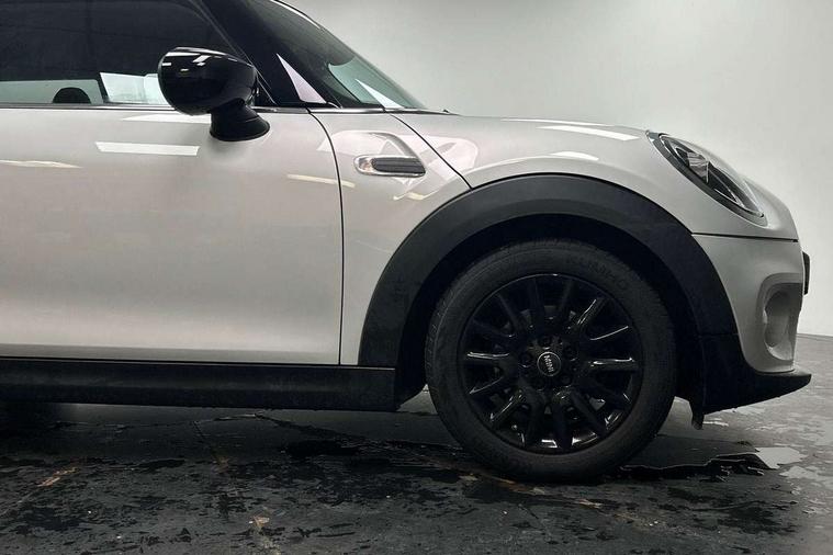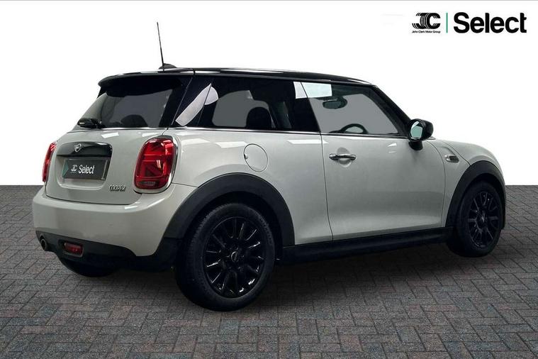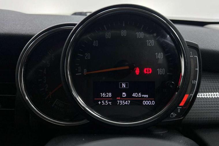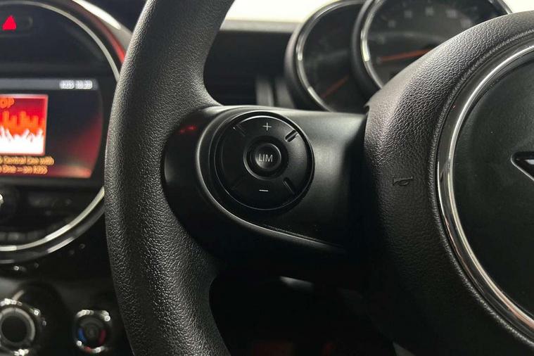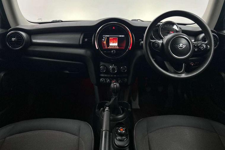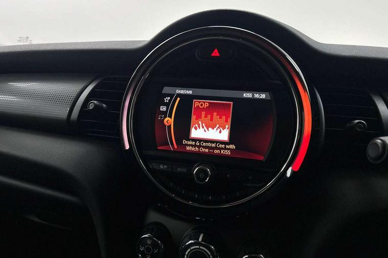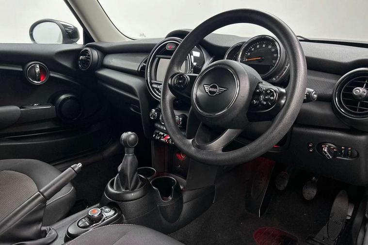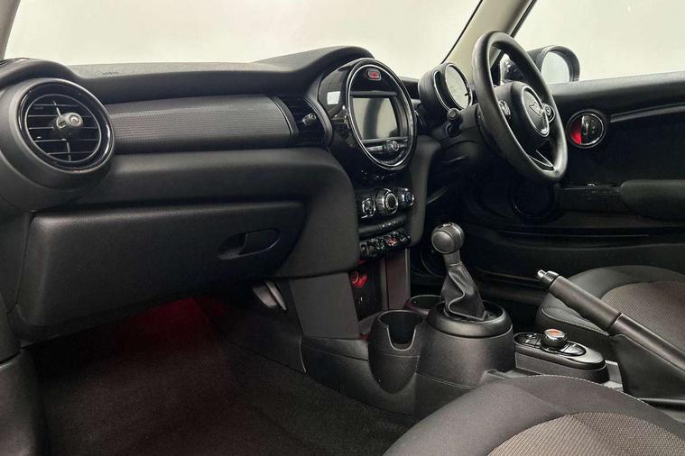 Automatic start/stop function with brake energy recuperation, Compatible mobile phone bluetooth with audio streaming, Electro-mechanical speed dependant steering assistance, Instrument cluster, Mini E-call, MINI TeleServices, On board computer, Service interval indicator, Double Vanos system, Fully variable valve control, High precision injection, 6.5" touchscreen with LED ring, FM tuner and DAB digital radio, Automatic headlight activation switch, Body colour fuel filler cap, Chrome border high gloss black slats radiator grille, Dynamic brake lights, Electric front+rear windows, Heated rear window, Heated windscreen washer jets, LED headlight with closed ring and daytime driving lights, Left exhaust tailpipe with chrome finisher, Metal door sill strips with MINI imprint, Model logo Cooper on right of tailgate, Rain sensor window wipers, Rear fog lights, Rear LED lights with union jack design, Rear window wiper, Side scuttle panel with integrated indicator, Sun/heat protection glass, White indicator lenses, 12V Accessory socket in centre console, 4 lashing eyes in luggage compartment, 60/40 split folding rear seat, Chrome interior highlights, Colour line - Carbon black, Cupholders, Front and rear head restraints, Front and rear isofix with front passenger airbag deactivation, Glove compartment, Height and length steering column adjustment, Interior lighting with 12 basic colours selectable via toggle switch in roof, Leather gearshift lever and handbrake gaiters, LED reading lights, vanity mirror lights, front foot well light and spotlight on front seats, Manual air conditioning, Mechanical seat adjustment, driver seat height adjust, forward/back and front seats backrest, Mini logo projection on floor from drivers exterior mirror, Multifunction steering wheel, Satellite grey headlining, Storage compartments in doors, Sunvisors with vanity mirrors, 3 point seatbelts on all four seats, 6 Airbags - front, side, head and seat belt tensioners, Anti-lock braking system (ABS), DSC - Dynamic Stability Control, Front and rear disc brakes, Hill start assist, Single tone fanfare horn, Tyre pressure monitoring system, Alarm system with tilt sensor, monitoring doors, bonnet interior and tailgate, Electronic vehicle immobiliser, Start/stop toggle with keyless go, Tool kit,