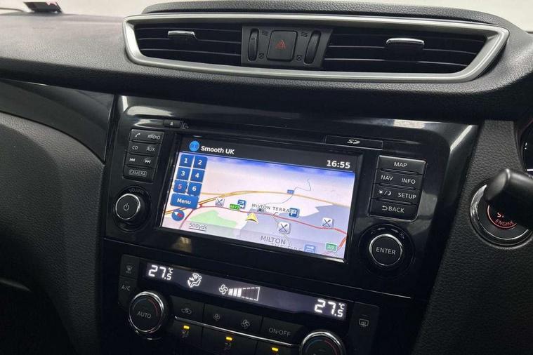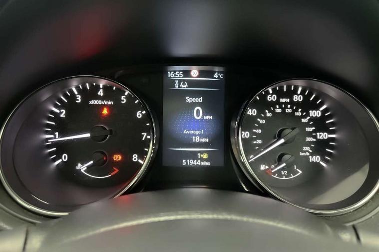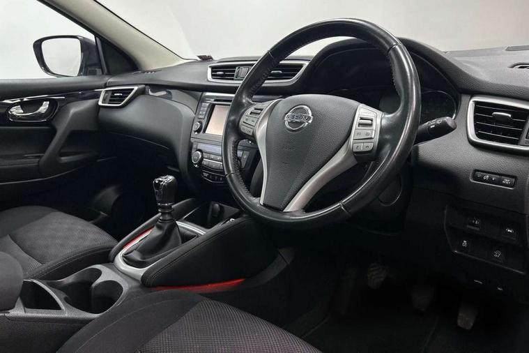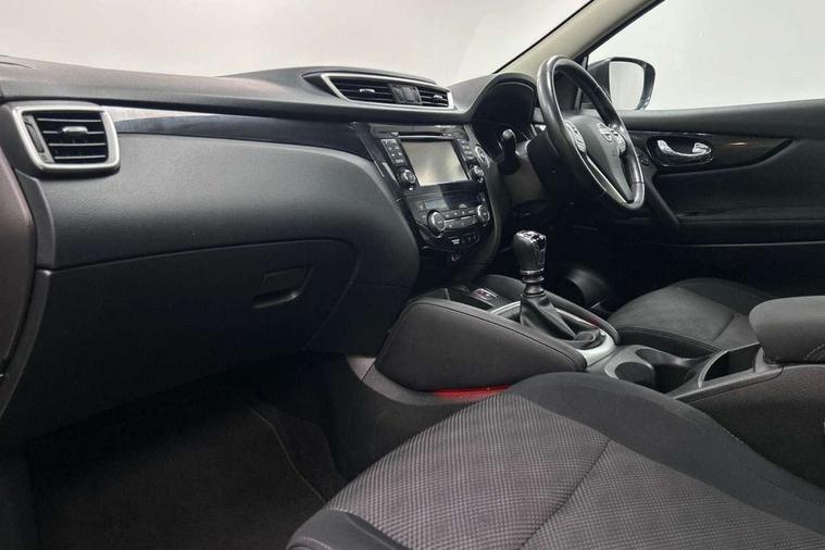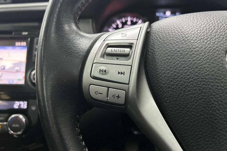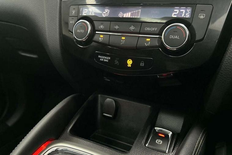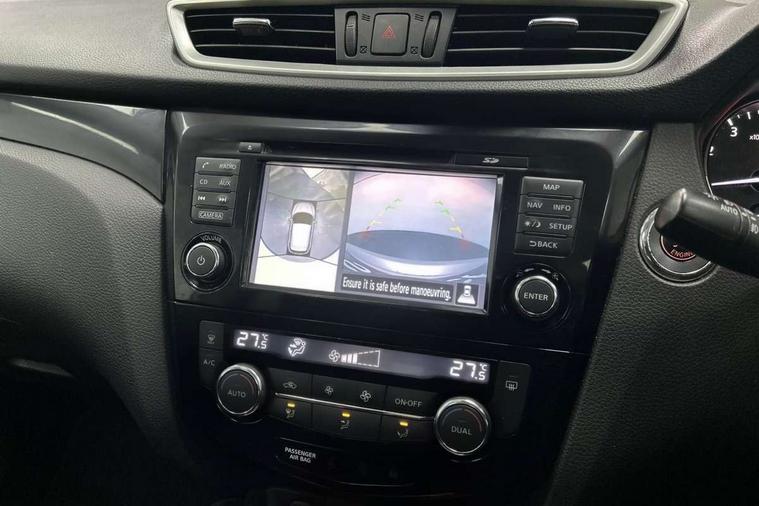 5" TFT driver information centre, 7" touch screen, Around View Monitor, Bluetooth phone integration system, Cruise control, Front and rear parking sensors, Lane departure warning system, Nissan connect sat nav system, Push button starter, Service interval indicator, Speed limiter, Speed sensitive power steering, Traffic sign recognition, Trip computer, 6 speakers, DAB radio/CD player, Steering wheel mounted audio controls, USB/aux input socket, 2 speed wipers+variable intermittent wipe, Automatic headlamp activation, Black honeycomb front grille, Body colour bumpers, Body colour door mirrors and handles, Chrome window surround, Electric folding and heated door mirrors, Electric front/rear windows, Front fog lights with chrome surrounds, High beam assist, Interior mirror with auto anti dazzle, LED daytime running lights, Rain sensor windscreen wipers, Rear privacy glass, Rear wiper, 12V socket, 60/40 split folding rear seat, Ambient interior lighting, Cloth upholstery, Driver's lumbar support, Driver/passenger front seatback pockets, Dual zone climate control, Footwell ambient lighting, Front armrest, Front cupholders x 2, Front headrests, Front seat belt pre-tensioners with load limiters, Height adjustable driver's seat, Height adjustable passenger seat with lumbar support, Illuminated glovebox, Isofix child seat preparation, Leather gearknob, Leather steering wheel, Luggage area divider, Map reading lamp, Pollen filter, Rake/reach adjustable steering wheel, Rear armrest with 2 cupholders, Rear headrests, ABS, brake assist and EBD, Active Trace Control, Child locks on rear doors, Curtain airbags, Driver/front passenger airbag, Electronic parking brake, ESP + traction control, Forward emergency braking, Height adjustable front seatbelts, Hill start assist, Side airbags, Three 3 point rear seatbelts, Tyre pressure monitoring system, Warning triangle and first aid kit, Alarm, Immobiliser, Intelligent Key, Remote central locking, 18" Diamond cut alloy wheels, Tyre puncture repair kit,