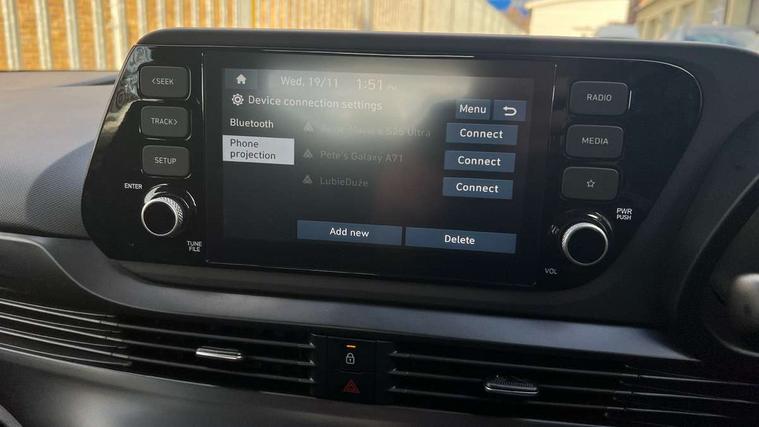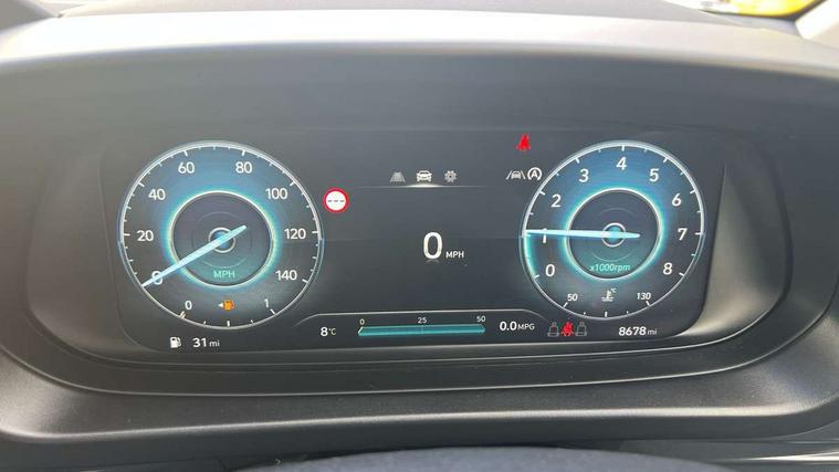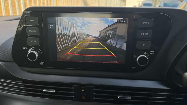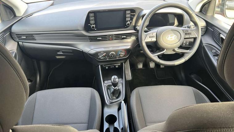 10.25" digital supervision cluster, 2nd Gen eCall, 8" Touchscreen with DAB, Apple car play/Android Auto, Cruise control + speed limiter, Forward collision assist with car, pedestrian and cycle detection, Intelligent speed limit warning, Lane follow assist, Lane keep assist, PAS, Rear parking sensor, Rear view camera with dynamic guidelines, USB C port front, 3rd brake light, Dusk sensor, Electric adjustable heated door mirrors, Front grille mesh pattern design, High beam assist, LED daytime running lights, LED Headlights, LED taillights, Rain sensor, Rear side wing doors, Rear wiper, Repositioned flat metal hyundai emblem, 3 seat bench in 2nd row, Adjustable head restraints, Air conditioning, Cloth upholstery, Floor mats, Leather steering wheel, Single front passenger seat, 3x3 point rear seatbelts, ABS with front and rear diagonally split, Autonomous emergency braking, Child locks on rear doors, Front ventilated disc brakes, Rear solid disc brakes, Tyre pressure monitoring system, 16" alloy wheels, Tyre repair kit,