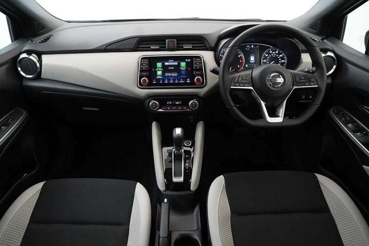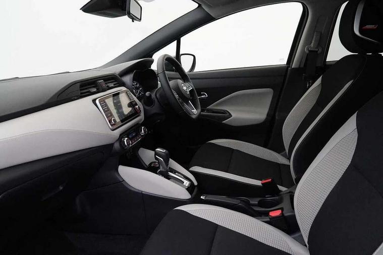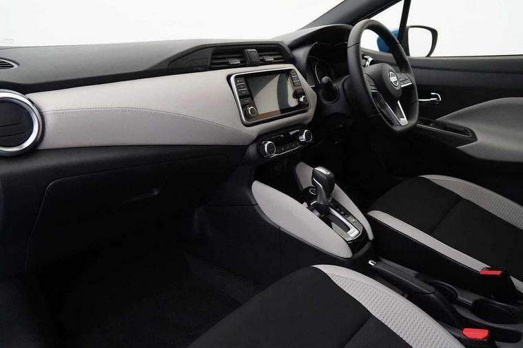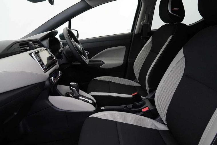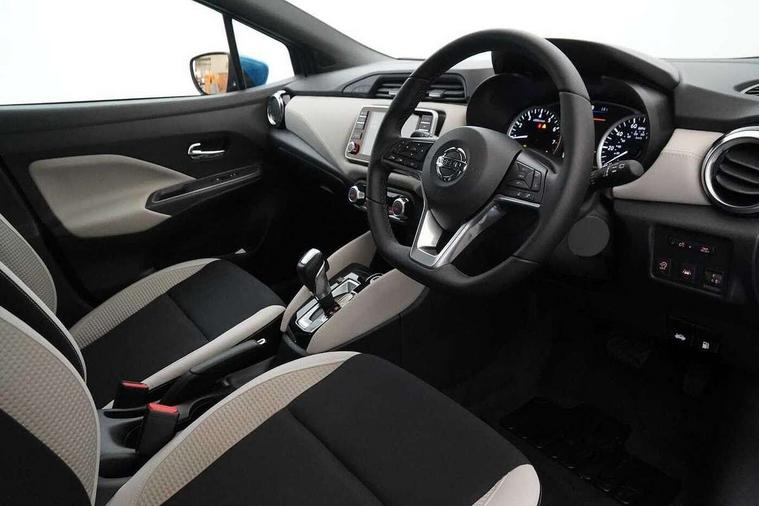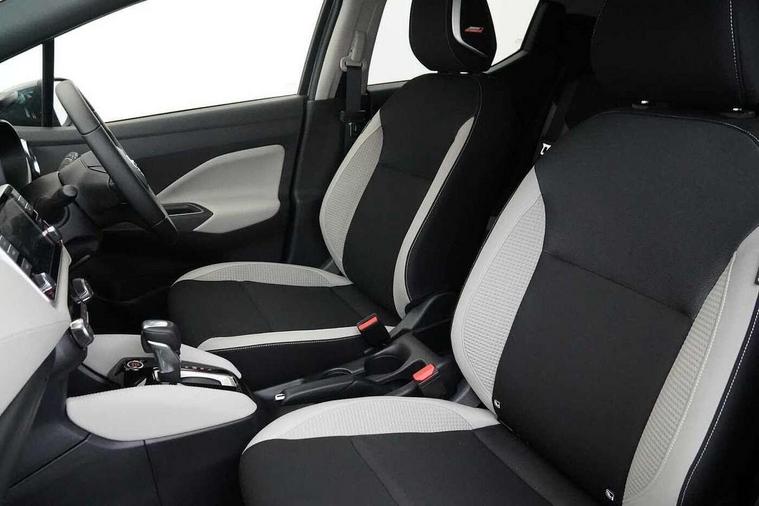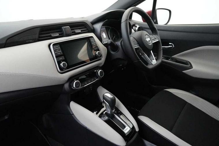 360 degree around view monitor, Adjustable speed limiter, Bluetooth system, Cruise control, Lane departure prevention, Lane departure warning system, Nissan Connect touchscreen navigation and Entertainment system, Outside temperature gauge, Power assist steering, Rear parking sensors, Rear view camera, Smartphone integration with Apple CarPlay and Android auto, Stop/start system, Traffic sign recognition, Trip computer, Audio system with MP3, BOSE sound system with 6 speakers, DAB Digital radio, USB/iPod connection, 4 pocket halogen headlights with signature finisher, Antenna, Auto dimming rear view mirror, Automatic activation of hazard warning lights, Automatic headlights, Body colour front door handles, Body coloured bumpers, Body coloured door mirrors, Concealed rear door handles, Electric folding door mirrors, Front and rear electric windows, Front fog lights, Heated door mirrors, High beam assist, High mounted stop lamp, Jacknife key type x1, LED daytime running lights, LED Headlights, Rain sensor windscreen wipers, Rear privacy glass, Rear roof spoiler, Rear wiper with reverse link, 12V power point front, 2 height adjustable rear headrests, 3 cupholders, 60/40 split folding rear seat, Automatic air conditioning, Boot compartment cover, Boot light, Chrome interior door handles, Driver's seat manual height adjust, Driver/passenger sunvisors and vanity mirrors, Front and rear door pockets with bottle holders, Front console storage box, Gear shift indicator, Height adjustable front headrests with satin sliver decoration, Illuminated electric window switch, Isofix front passenger and rear seat preparation, Leather wrapped gear shift knob, Leather wrapped parking break, Leather wrapped steering wheel, LED ambient lighting, Map reading lamp, Parcel shelf, Passenger seat back pocket, Reclining front seats, Synthetic leather front door pads, Synthetic leather instrumental panel inserts, ABS+EBD+Brake assist, Crash sensor, Driver/Front Passenger airbags, Front and rear curtain airbags, Front side airbags, Height adjustable front seatbelts with pre-tensioners and load limiters, Hill start assist, Intelligent emergency braking with pedestrian recognition, Passenger airbag deactivation system, Rear seatbelts with pre-tensioners and load limiters, Seatbelt warning, Three 3 point rear seatbelts, Tyre pressure monitoring system, Warning triangle and first aid kit, Anti-theft immobiliser, Intelligent key with push button ignition, Remote central locking, 17" Diamond cut alloy wheels, Tyre repair kit,