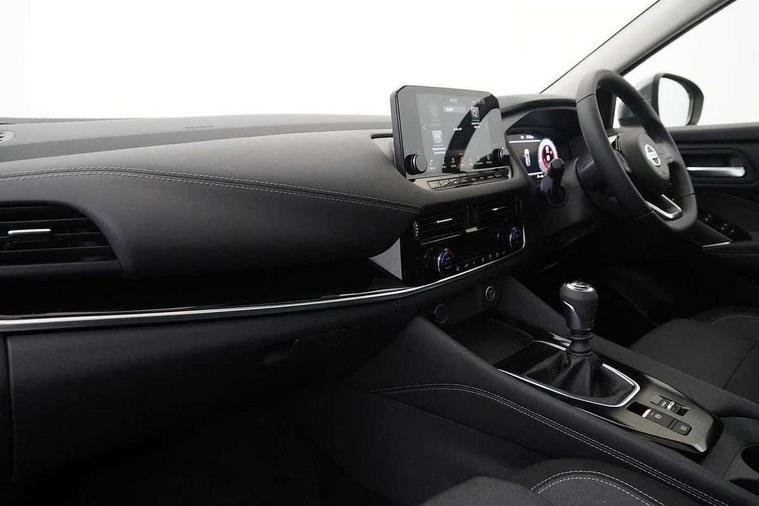 Blind spot warning, Drive modes (sport, normal, eco), Electric speed sensitive power steering, Emergency and breakdown call, Front and rear parking sensors, Full Digital 12.3" TFT Digital Combimeter, Google maps services - search, weather, 3D maps and Google street view, Idle stop/start system, Intelligent around view monitor, Intelligent Cruise control (ICC), Intelligent driver alert system, Intelligent forward collision warning, Intelligent lane intervention, Lane departure prevention, Lane departure warning system, Maximum speed limiter, Moving object detection, Nissan connect 12.3 inch touchscreen infotainment system, Nissan connect navigation, Push button starter, Rear cross traffic alert, Remote control services - door locks, lights, horn and car locator, Telematics - notifications and connectivity services, TomTom live traffic services, Traffic sign recognition with legal speed adjustment, Trip computer, Virtual personal assistant and firmware over the air capability, Wireless Apple CarPlay and wired Android Auto, 6 speakers, AM/FM audio system with DAB, Bluetooth audio streaming, Front USB connections (Type-A and Type-C), Rear USB charging only ports (Type-A and Type-C), Auto dimming rear view mirror, Auto rear wiper when reversing, Automatic hazard signal with emergency stop signal, Body colour mirror caps, Body coloured door handles, Bodyside mouldings, Chrome side window finisher, Door handle with button, Dusk sensor, Electric auto folding door mirrors, Electrically adjustable and heated door mirrors with LED turn indicator, Follow me home headlights, High beam assist, Intelligent auto headlights, LED daytime running lights, LED Headlights, LED rear lights, One touch front and rear electric windows with remote opening and closing, Partially body coloured bumpers, Privacy glass, Rain sensor, Rear bumper with graphite insert, Rear reversing light (bulb lighting), Rear roof spoiler, Rear side wing doors, Rear styling plate, Shark fin antenna, Splash free rain sensing wipers, Super UV and infrared cut glass, Three blink turn signal, 12v power socket in dashboard and luggage, 2 way electrical driver lumbar adjustment, 2x Rear coat hooks, 3 bench rear seats in 2nd row, 3 rear headrests, 4 folding assist grip, 6 Luggage hooks - 4 on floor, 2 on side, 6-way manually adjustable driver's seat, 60/40 split folding rear seat bench, Ambient lighting around centre console, Centre console storage tray, Chrome interior door handles, Cloth monoform upholstery, Driver and front passenger sunvisors with illuminated vanity mirrors, Driver seat back pocket, Dual zone automatic climate control with pollen filter, Front and rear door storage, Front cupholders x 2, Front door with bottle holders, Glovebox with light, Hard trunk cover, Height adjustable front headrests, Leather shift knob, Leather steering wheel, Luggage board system, Luggage space lighting, Manually adjustable passenger (slide recline + lifter), Multifunction steering wheel, Passenger seat back pocket, PVC front centre console and armrest, Rear armrest with 2 cupholders, Rear door bottle holders, Single front passenger seat, Soft PVC kneepad, Steering wheel switches, Sunglasses holder, Tilt/telescopic adjustable steering wheel, Two rear isofix child seat anchorage points with top tether, Welcome light and console tray ambient lighting, 3x3 point rear seatbelt pretensioners + load limiters, ABS, ESP, EBD and brake assist, Active brake limited slip, Auto hold function, Child locks on rear doors, Curtain and front side, far side airbags, Driver and passenger airbags, Driver, passenger and 2nd row rear seat belt reminder, Electronic parking brake, Front seatbelt pretensioners + load limiters, Height adjustable front seatbelts, Hill start assist, Intelligent blind spot intervention, Intelligent front emergency braking with pedestrian, cyclist recognition and junction assist, Intelligent rear automatic braking, Tyre pressure monitoring system, Vehicle dynamic control, Capless fuel filler, Engine immobiliser, Nissan i-key, Remote central door locking with deadlocking, Thatcham Cat.1 alarm, Interior instrumental panel B finisher, 18" Diamond cut alloy wheels, Tyre puncture repair kit,