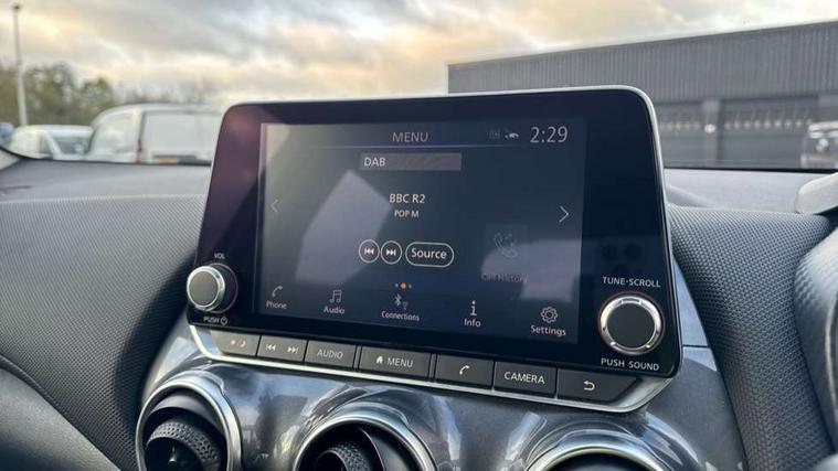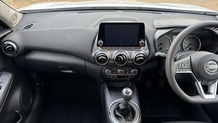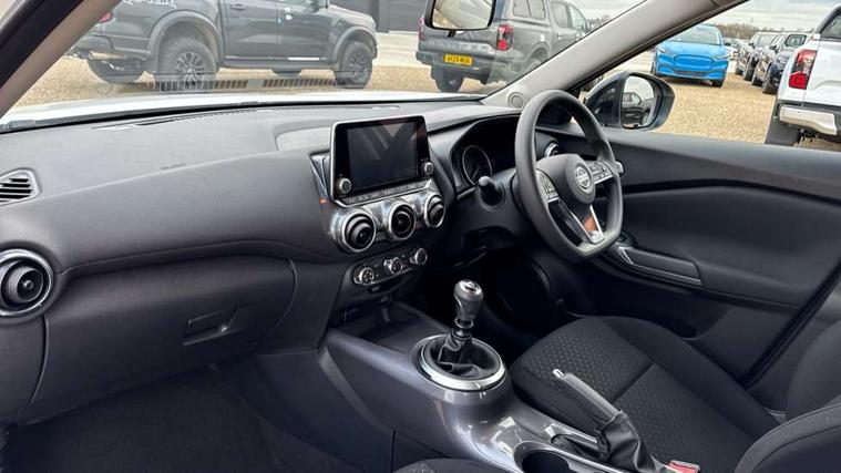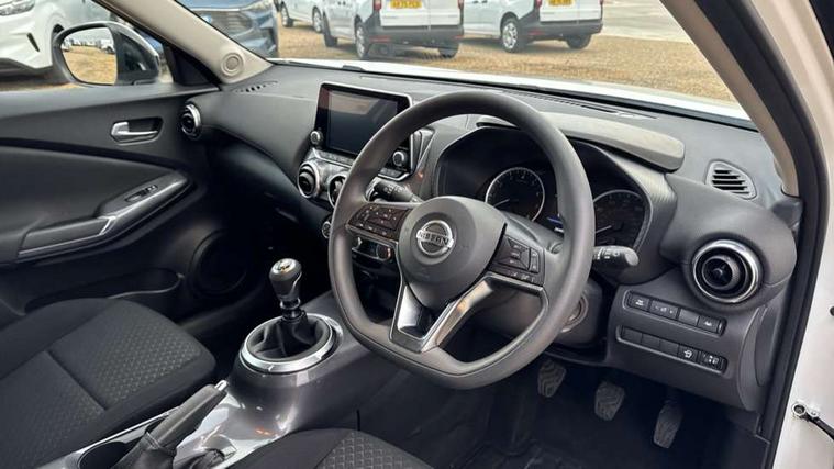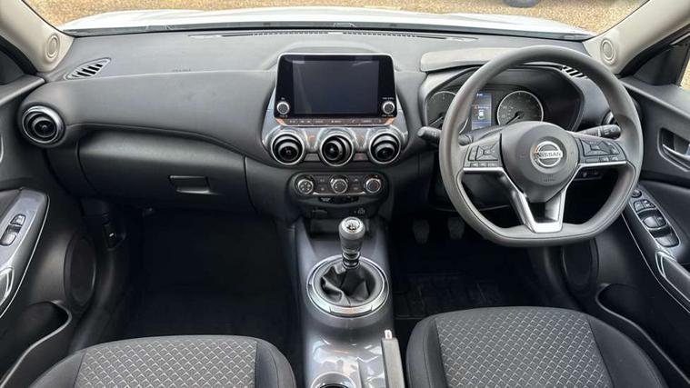 4.2" full colour TFT screen combimeter, Apple CarPlay and Google Android auto, Cruise control + speed limiter, eCall emergency call system, Emergency and breakdown call, Idle start/stop system, Intelligent lane intervention, Lane departure warning system, Nissan connect 8" touch screen entertainment system, Nissan connect services and Wifi connection, Outside temperature sensor, Power Steering, Rear view camera, Traffic sign recognition, Trip computer, Voice recognition, Gasoline particulate filter, 4 speakers, Bluetooth system, USB, Aux-in and 12V socket, DAB Digital radio, Automatic hazard signal with emergency stop signal, Body colour bumpers, Body colour door handles, Electrically adjustable door mirrors with integrated indicators, Follow me home headlights, Front and rear electric window with one touch driver window, High beam assist, LED daytime running lights, LED headlamps, LED rear fog lamp, LED rear lamps, Manual dimming interior rear view mirror, Pearl black door mirrors, Rear side wing doors, Rear wiper, Three blink turn signal, 3 height adjustable rear headrests, 3 seat bench in 2nd row, 60/40 split folding rear seat, Cloth upholstery, Driver and passenger sliding and reclining seats, Driver/passenger sunvisors and vanity mirrors, Front and rear cabin lights, Front door pockets with bottle holders, Front head restraints, Height adjustable driver's seat, Internal chrome door handles, Luggage space lighting, Monoform sporty seats, Multifunction steering wheel, Rear door bottle holders, Single front passenger seat, Telescopic steering wheel adjustment, Two cupholders in front centre console, Two rear isofix child seat anchorage points with top tether, Welcome light and console tray ambient lighting, ABS with EBD and brake assist, Active ride control, Active Trace Control, Driver and passenger airbags, Driver and passenger side airbags, Electronic Stability Programme (ESP), Front and rear curtain airbags, Height adjustable seatbelts, Hill start assist, Intelligent emergency braking with pedestrian and cyclist recognition, Rear door child safety locks, Rear drum brakes, Seatbelt reminder for driver/front passenger and rear seats, Single tone horn, Three 3 point rear seatbelts, Traction control, Tyre pressure monitoring system, VDC Dynamic Vehicle Control, Alarm, Immobiliser, Remote central locking, 17" Sakura Flex wheels,