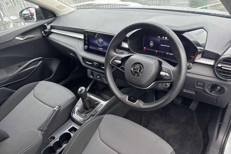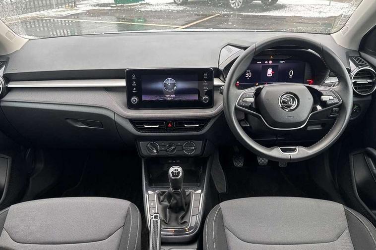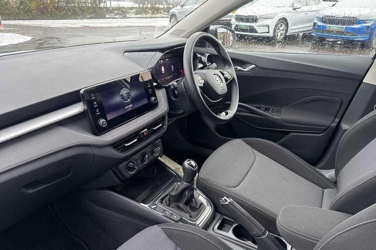 Advanced driver attention and drowsiness monitor, Bluetooth connection, Electromechanical power steering, Exterior temperature gauge, Service interval indicator, Traffic sign recognition, Virtual cockpit with 10.25" colour display, Wireless SmartLink for Apple CarPlay and Android Auto, 6 Speakers (4 in front and 2 in rear), Auxiliary socket for external MP3 player, DAB digital radio reception, Body coloured bumpers, Dimming rear view mirror with black frame, Door mirror integrated indicators, Front and rear electric windows, Front window wiper intermittent control, Headlight range control - Automatic, Ice scraper in fuel cap, LED daytime running lights with coming and leaving home feature, LED rear lights, Privacy glass, Rear LED fog light, Rear side wing doors, Rear window wiper with washing nozzles, Roof mounted spoiler, SKODA tailgate lettering in chrome, Third brake light, 2 reading lights in front and 2 reading lights in rear, 3 rear headrests, Backrest split and folding, Central console with removable cup holder and storage box, Chrome handbrake release button, Fabric upholstery, Front centre armrest, Gearshift knob/handle in leather, Grain satin black interior door handles, Hand brake lever handle in leather, Height adjustable front headrests, Height adjustable front seats, Height adjustable steering wheel, ISOFIX and TopTether anchorage points to the outer rear seats, ISOFIX and TopTether on the front passenger seat, Luggage compartment lighting, Manually adjustable lumbar support in front seats, Pollen filter, Rear seat bench unsplit, Single front passenger seat, Storm grey headlining, Sun visors with mirror and airbag label on passenger side, Textile floor mats, Ticket holder, Umbrella in drivers door, 3-point height adjustable front seats belts with pretensioner and force limiter, Automatic warning lights in case of crash, Driver and passengers airbag with switch off function, e-Call+, ESC including ABS, MSR, ASR, EDS, HBA and XDS, Front and rear seat belt warning, FRONT ASSIST (AEB City and AEB Inter Urban), Front side airbags, Head airbags, One tone horn, Pedestrian protection, Three rear 3-points safety seat belts with pretensioner and force limiter including stop function for outer rear seat belts, Tyre pressure monitoring system, Anti-theft alarm system including immobiliser, interior monitoring, backup horn, and towing protection, Central locking with radio remote control, interior controls, SAFE function and 2 foldable keys, Colour Edition air vents, Grain satin black central console cover, Metallic grey upper decorative trim, Satin black door and side trim panel in front, Textile Kota grey lower decorative inserts, Anti-theft wheel bolts protection, Super-low rolling resistance tyres,