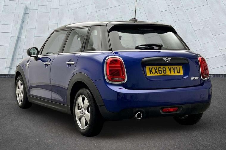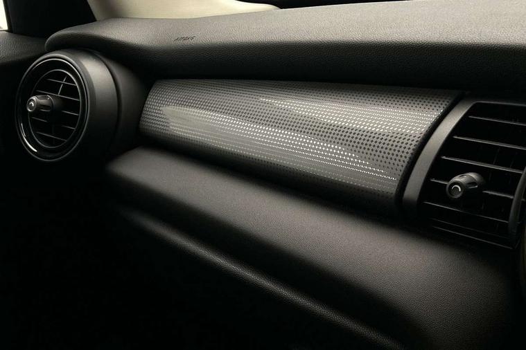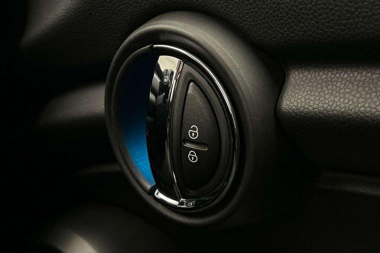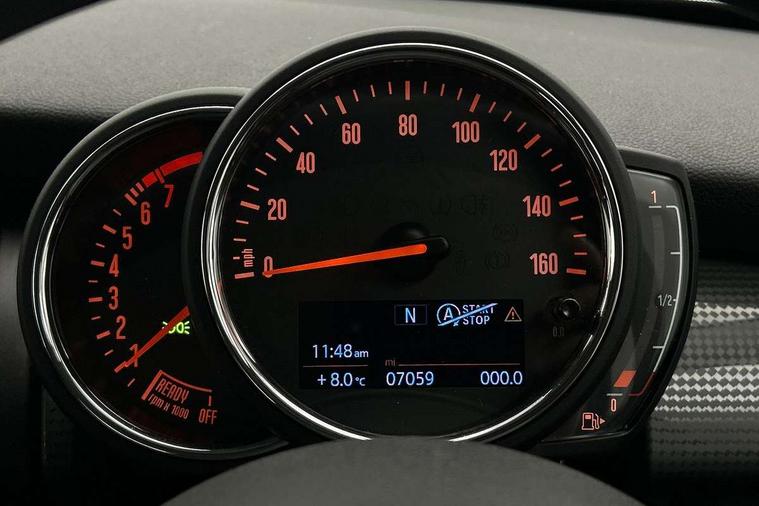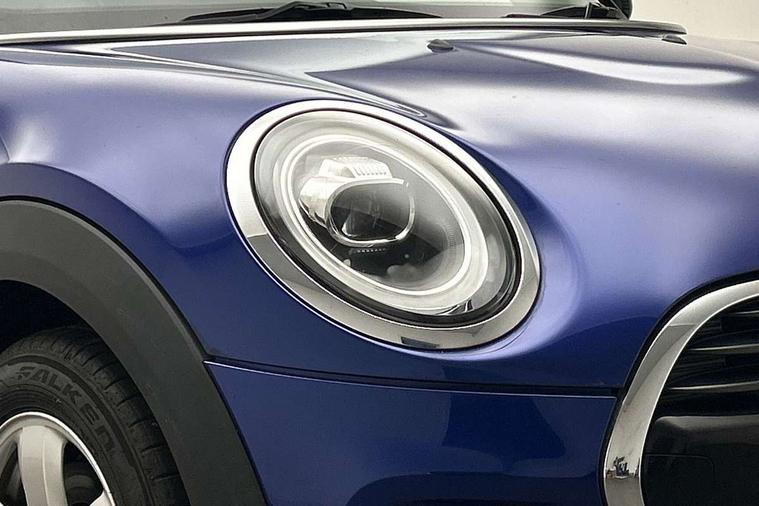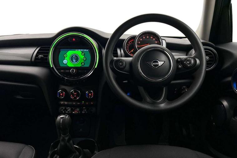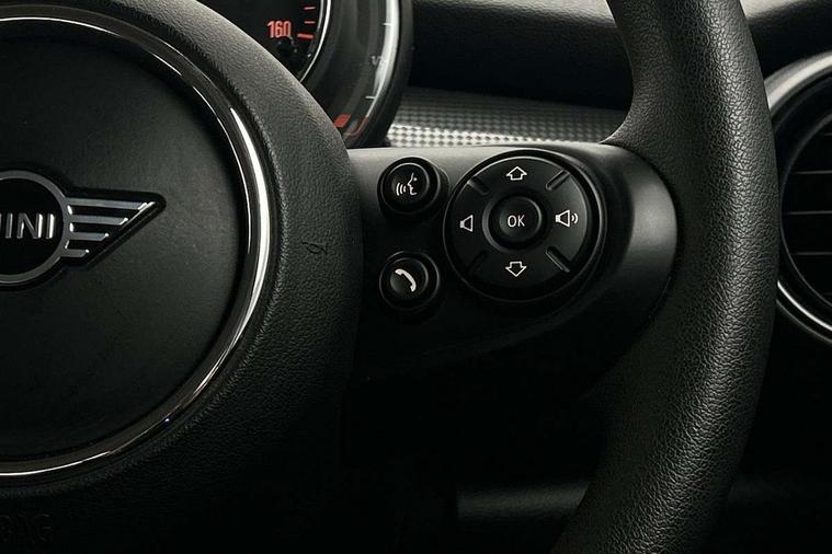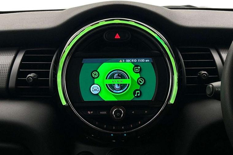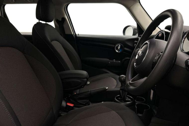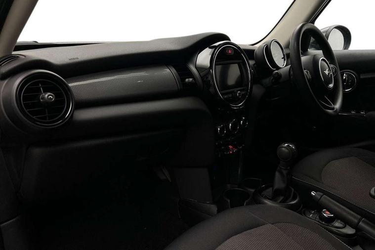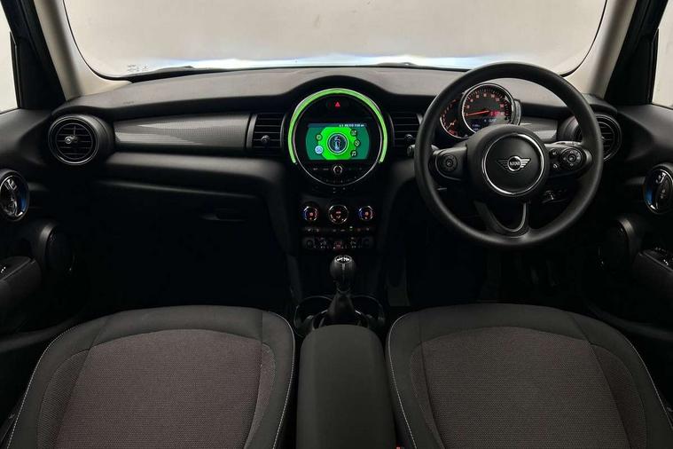 Compatible mobile phone bluetooth with audio streaming, Instrument cluster, Mini E-call, MINI TeleServices, On board computer, Service interval indicator, 6.5" touchscreen with LED ring, FM tuner and DAB digital radio, Automatic headlight activation switch, Body colour fuel filler cap, Chrome border high gloss black slats radiator grille, Dynamic brake lights, Electric front+rear windows, Heated rear window, Heated windscreen washer jets, LED headlight with closed ring and daytime driving lights, Left exhaust tailpipe with chrome finisher, Metal door sill strips with MINI imprint, Model logo Cooper on right of tailgate, Rain sensor window wipers, Rear fog lights, Rear LED lights with union jack design, Rear window wiper, Side scuttle panel with integrated indicator, Sun/heat protection glass, White indicator lenses, 12V Accessory socket in centre console, 4 lashing eyes in luggage compartment, 60/40 split folding rear seat, Chrome interior highlights, Colour line - Carbon black, Cupholders, Front and rear isofix with front passenger airbag deactivation, Glove compartment, Height and length steering column adjustment, Interior lighting with 12 basic colours selectable via toggle switch in roof, Leather gearshift lever and handbrake gaiters, Manual air conditioning, Mechanical seat adjustment, driver seat height adjust, forward/back and front seats backrest, Mini logo projection on floor from drivers exterior mirror, Multifunction steering wheel, Satellite grey headlining, Storage compartments in doors, Sunvisors with vanity mirrors, 3 point seatbelts on all five seats, 6 Airbags - front, side, head and seat belt tensioners, Anti-lock braking system (ABS), DSC - Dynamic Stability Control, Front and rear disc brakes, Hill start assist, Single tone fanfare horn, Tyre pressure monitoring system, Alarm system with tilt sensor, monitoring doors, bonnet interior and tailgate, Electronic vehicle immobiliser, Start/stop toggle with keyless go, Tool kit,
