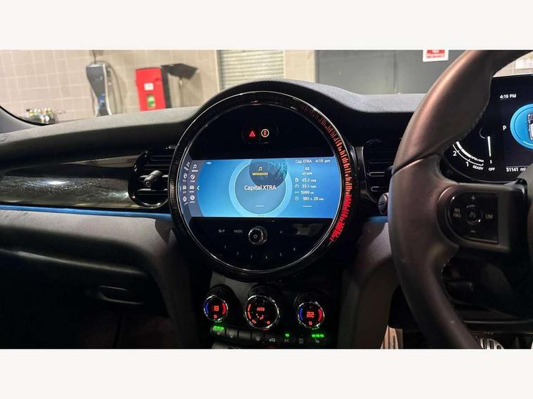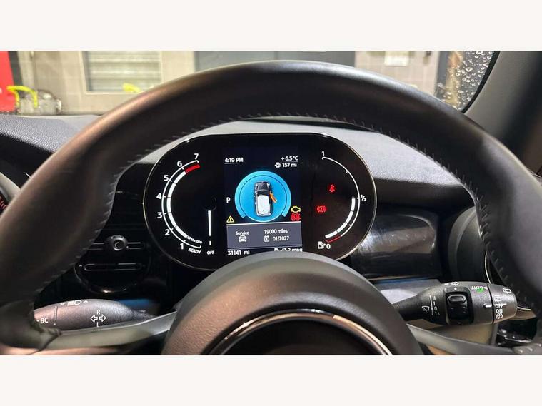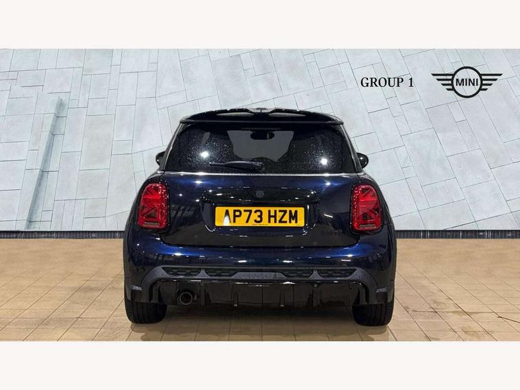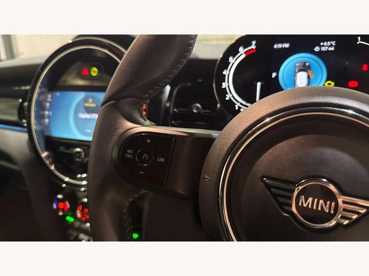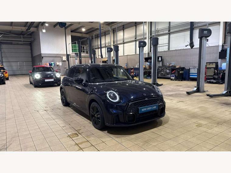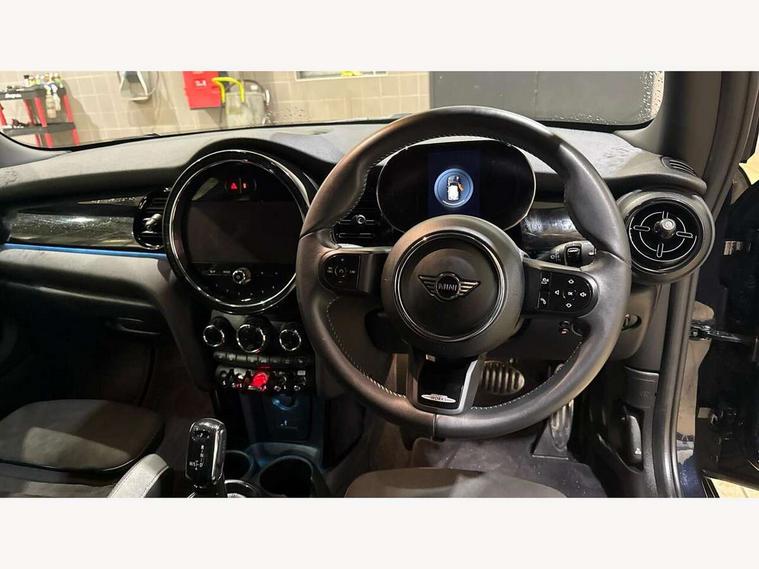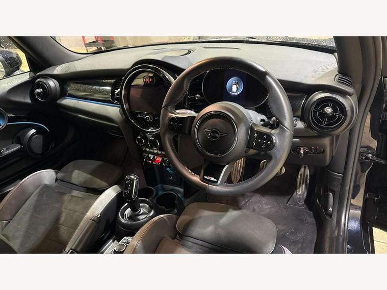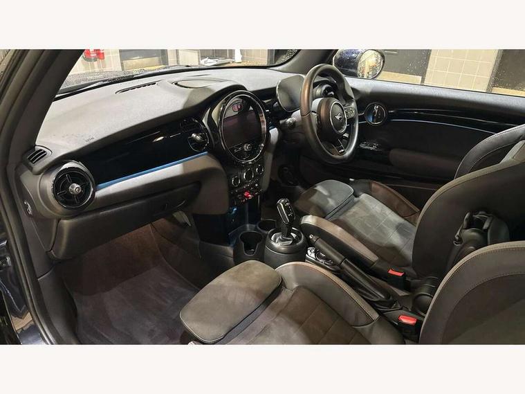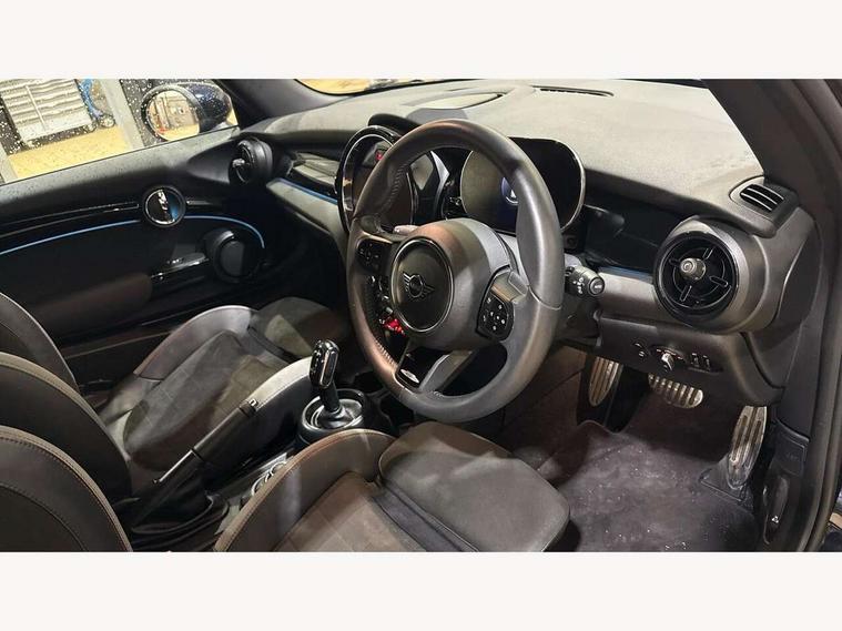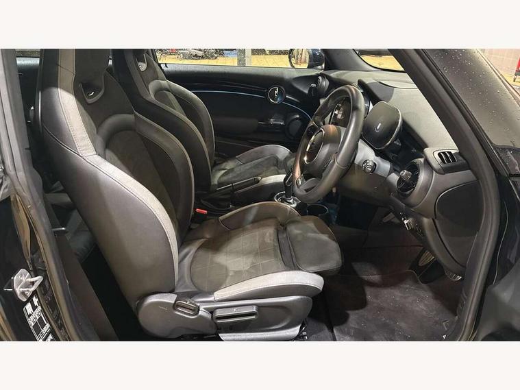 Apple CarPlay, Automatic start/stop function with brake energy recuperation, Compatible mobile phone bluetooth with audio streaming, Digital dashboard display, Electro-mechanical speed dependant steering assistance, Flexible car sharing preparation, Instrument cluster, Mini E-call, MINI TeleServices, On board computer, Service interval indicator, Double Vanos system, Fully variable valve control, High precision injection, Intelligent adaptive suspension, Performance Control, Steptronic transmission with double clutch, 4 speakers in front door trims and underneath front seats, 8.8" touchscreen with LED ring, FM tuner and DAB digital radio, 3rd brake light, Automatic headlight activation switch, Dynamic brake lights, Electric front windows, Heated rear window, Heated windscreen washer jets, JCW Aerodynamic kit - Front and rear bumpers with sporty JCW styling and part-painted side sills with MINI John Cooper Works door sill finishers, John Cooper Works rear spoiler, LED headlight with closed ring and daytime driving lights, Metal door sill strips with MINI imprint, Model logo Cooper on right of tailgate, Rain sensor window wipers, Rear fog lights, Rear LED lights with union jack design, Rear window wiper, Side scuttle panel with integrated indicator, Sun/heat protection glass, White indicator lenses, 12V Accessory socket in centre console, 2 seat bench in 2nd row, 4 lashing eyes in luggage compartment, 60/40 split folding rear seat, Anthracite headliner including grab handles and clothes hooks, Carbon black colour line - Knee roll and door armrest, Chrome interior highlights, Cupholders, Front and rear isofix with front passenger airbag deactivation, Front floor mats in velour, Glove compartment, Height and length steering column adjustment, Integrated headrests, adjustable thigh support for seats, Interior lighting with 12 different colours across the dashboard, underneath door bezel with illuminated laser-engraved design on central display, Leatherette gearshift lever and handbrake gaiters, LED reading lights, vanity mirror lights, front foot well light and spotlight on front seats, Mechanical seat adjustment - forward/back & backrest for front seats and driver seat height adjust, Multifunction steering wheel, Passenger seat height adjuster, Single front passenger seat, Storage compartments in doors, Sunvisors with vanity mirrors, Walknappa leather steering wheel with grey seam and John Cooper Works badge on Piano Black lower steering wheel spoke, Driving assistant pack - Mini Hatchback, Piano black exterior pack - Mini Hatchback Cooper, Premium pack - Hatchback, 3 point seatbelts on all four seats, 6 Airbags - front, side, head and seat belt tensioners, Anti-lock braking system (ABS), DSC - Dynamic Stability Control, Front and rear disc brakes, Single tone fanfare horn, Tyre pressure monitoring system, Alarm system with tilt sensor, monitoring doors, bonnet interior and tailgate, Electronic vehicle immobiliser, Start/stop toggle with keyless go, Piano black interior trim, Tool kit,