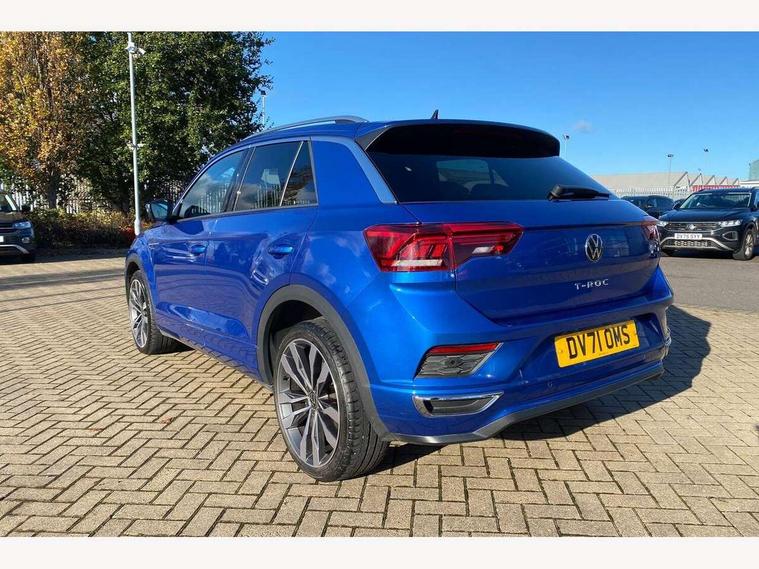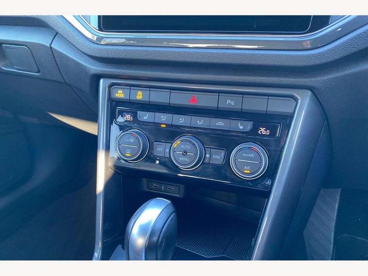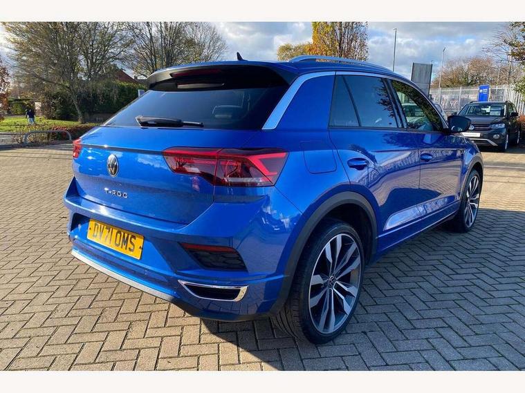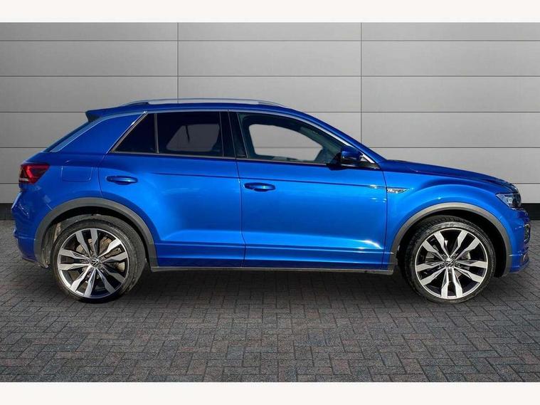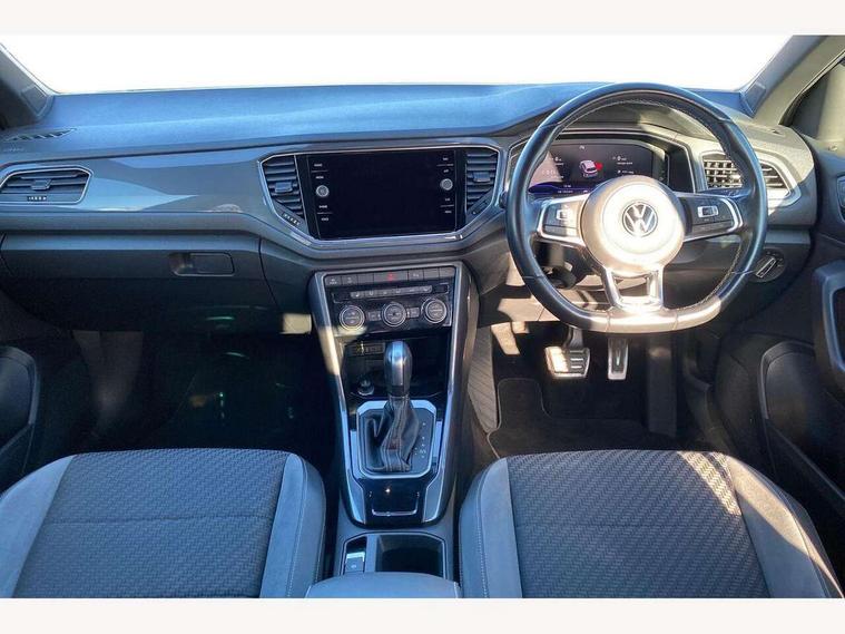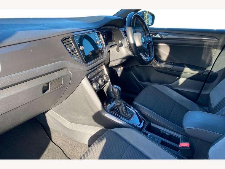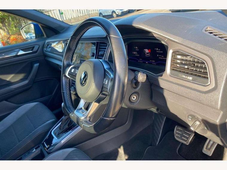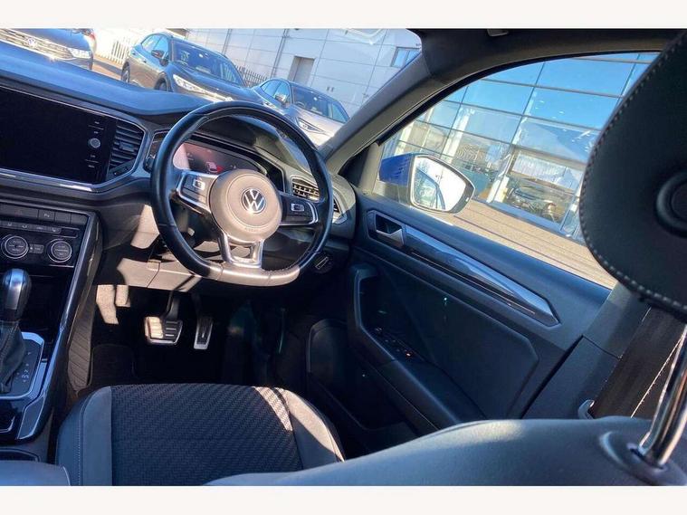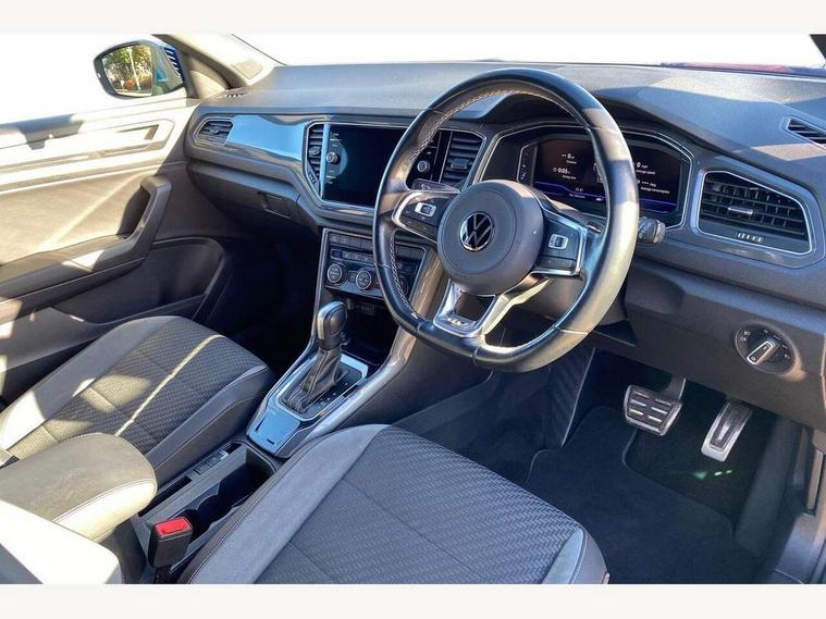 'Lights On' Reminder warning buzzer, Adaptive cruise control, Bluetooth telephone and audio connection for compatible devices, Car information display, Digital Cockpit Pro - Active info display, Driver alert system with audible and visual fatigue detection system, Driver tips and journey analysis, Dusk sensor, Emergency call service, Lane assist with warning text instrument cluster, Modified key software - reduce switch off time for key status change to Long no motion, Multifunction camera, Multifunction computer with visual gear change recommendation for fuel consumption, Navigation system discover media including streaming and internet, Service interval indicator, Think blue trainer driver tips and journey analysis, Traffic sign recognition, Voice activation, Warning sound and light for front seatbelts unfastened, Wireless app connect for apple carPlay, Battery regeneration during braking, Misfuel prevention device for diesel engine, Rear shock absorption for sports version, Start/stop function with battery regeneration, DAB Digital radio, Disk brakes in front, Diversity antenna for FM reception, Music playback - MP3, WMA and AAC files, Premium USB cable in choice of either Apple or Android smartphone compatibility, SD card slot, Simultaneous pairing of 2 compatible mobile devices, SMS functionality - read, compose and send SMS messages using touch-screen display, Storage compartment with longitudinal and height adjustable in armrest and two rear air vents, Three route options - Fast, Short, Eco, Title and cover art display, USB-C Interface and USB charging socket, Auto dimming interior rear view mirror, Automatic coming/leaving home lighting function and daytime running lights, Automatic hazard lights activation under emergency braking, Black grained lower door protectors, Body colored door lower parts, Body colour door handles, Body colour rear roof spoiler, Chrome effect left and right trapezoid exhaust tailpipe fascia surround, Chrome plated moldings, Chrome plated radiator grille inserts, air vent surrounds and light switch surrounds, Chrome trim on upper and lower radiator grille, Dynamic headlight range control with self adjusting whilst driving, Electrically foldable, adjustable and heated door mirrors with puddle lights and reverse activated kerb-view adjustment on passenger's door mirror, External USB type C socket and charging sockets, Front and rear electric windows, Front fog lights with static cornering function, Front windscreen wiper with intermittent wipe and 4 position delay, Fully galvanised body, Heated rear window, Heated windscreen washer jets, High level 3rd brake light, LED darkened rear light clusters, LED headlamps with automatic range adjustment and unique signature LED separate daytime running lights, LED rear number plate lights, LED tail lamp rear comination lamps, Privacy glass, R-Line design body coloured bumpers, Rain sensor, Rear tinted glass from B-pillar backwards approx 65% tinted, Rear wash/wipe with intermittent wipe setting, Silver anodised roof rails, Volkswagen roundel, 12V socket in centre console storage area, 3 rear head restraints, 4 load lashing points in luggage compartment, Aluminium pedals, Black roof lining and sun visors, Branded points of interest, Carbon flag cloth upholstery, Climate control - 2 zone electronic air conditioning with automatic air recirculation and allergy filter, Door and side trim panel, Door and side trim panel in foam film, insert in leatherette, Drawer under drivers seat, Front + rear carpet mats, Front centre armrest, Front cupholders x 2, Front seat back storage pockets, Front sports seats with R-Line logo on seat backrest, Glovebox, Heated front seats, Height adjustable front seats, Height/reach adjust steering wheel, Instrument lighting, white adjustable panel illumination, Interior light delay, Interior light in footwell, Isofix easy fit child seat preparation for 2 outer rear seats, Leather gearshift knob, Leather multi function sport steering wheel with gear change selection via paddle shift on steering wheel, LED interior light with switch off delay/dimmer and 2 front/rear LED reading lights, Load through provision with single cup holder when folded down, Luggage compartment cover, removable, Luggage compartment lighting, R Line badge, Scuff plates in door apertures, Split folding rear seat backrests with centre armrest, Stainless steel pedals, Storage compartment in left and right luggage area, Storage compartment in rear doors, Storage compartments in driver and front passenger doors, Sunvisors with illuminated vanity mirrors, Unique R Line door sill protectors, White ambient lighting, R line styling pack - T-Roc, Winter pack - T-Roc, 3 rear three point seatbelts, ABS, Curtain airbags, Driver and front passenger safety-optimised head restraints, Drivers and front passengers airbags with passengers deactivation switch, Drivers seatbelt reminder, Electronic parking brake with auto hold, Electronic stability control (ESC) includes ASR, EDL, EDTC and trailer stabilisation function, Front assist with city emergency braking and pedestrian monitoring, Front seat side impact airbags, Hill start assist, Predictive pedestrian protection, Rigid safety cell with front and rear crumple zones, Single tone horn, Three point height adjust front seatbelts + pretensioners, Tyre pressure loss indicator, Ventilated front and rear disc brakes, Volkswagen roadside assistance, Alarm with remote central locking and interior protection, Electronic engine immobiliser, Remote central locking with SAFELOCK, radio remote control with 2 remote control folding keys, Shadow grey decorative inserts in dash, centre console and door panel, 19" Suzuka alloy wheels with low rolling resistance tyres and anti wheel bolts,