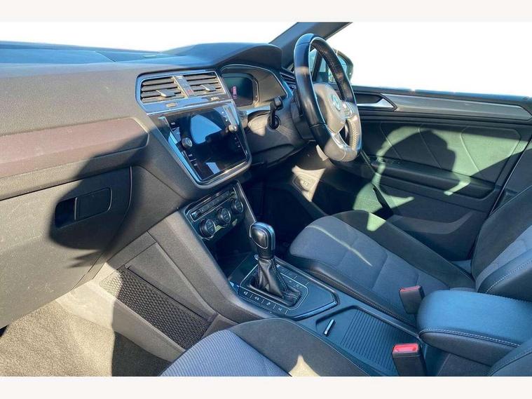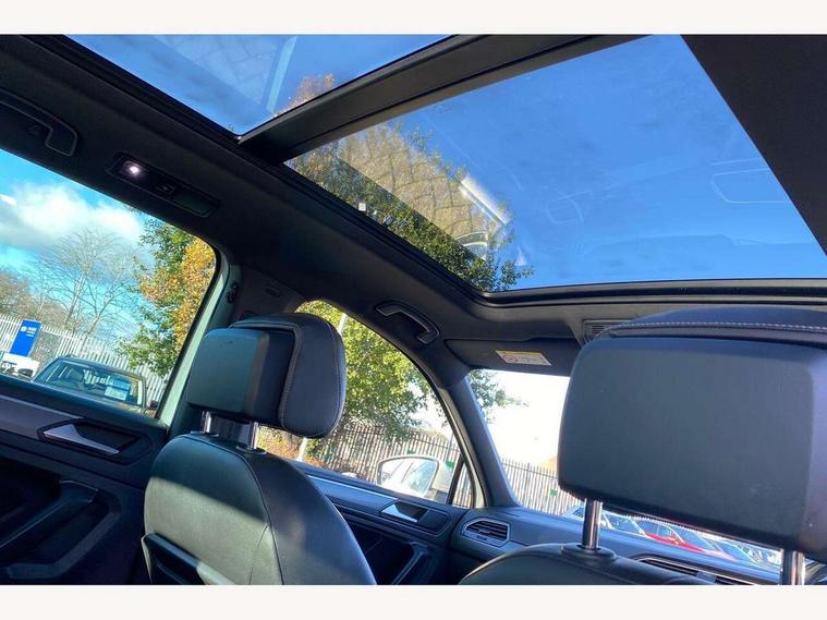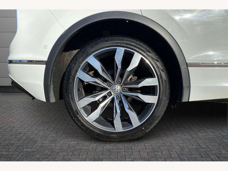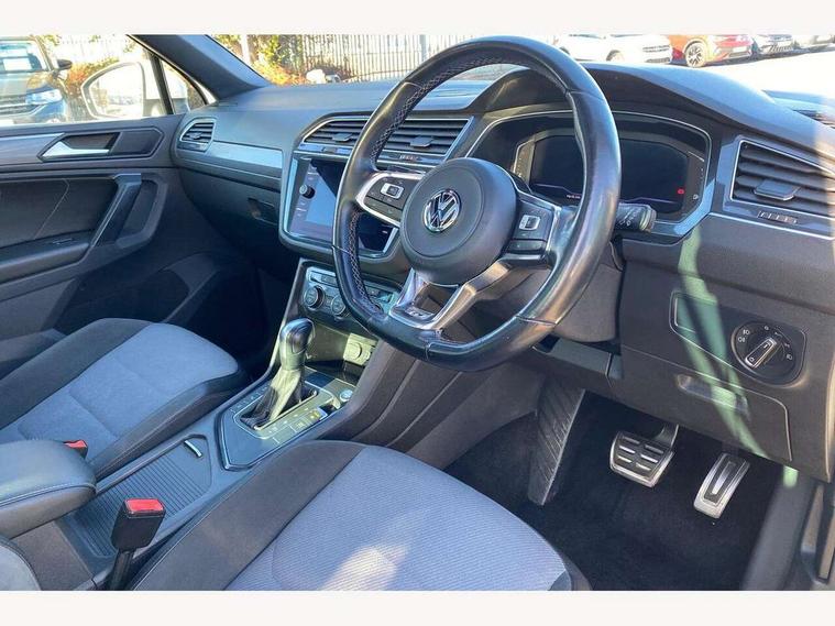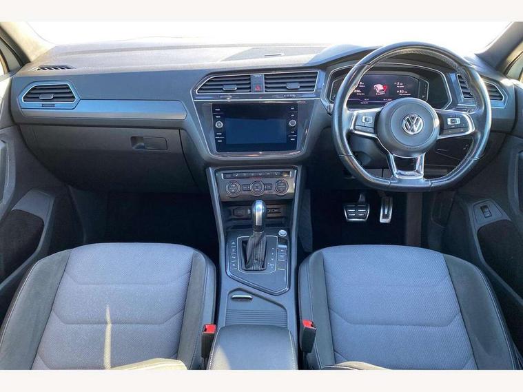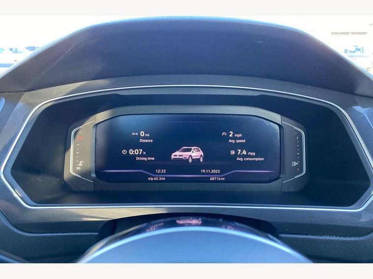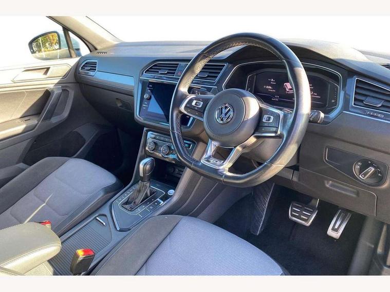 2D/3D map view, Active information display, Adaptive cruise control, App-Connect, Area view with park assist steering and front and rear parking sensors, Bluetooth phone integration system, Car information display, Distance control assist, Driver alert system with fatigue detection, Driver profile selection, Front assist, radar sensor controlled distance monitor, city emergency braking + predictive pedestrian protection, Fully electric tailgate + keyless entry and start, Instrument cluster, Lane assist, Lights on warning, Multifunction computer with visual gear change recommendation for fuel consumption, Outside temperature display, Progressive power assisted steering, Service interval indicator, Speed limiter, Start/Stop function, Warning sound and light for doors and tailgate open, Battery regeneration during braking, Diesel particulate filter, Misfuel prevention device for diesel engine, XDS electronic differential lock for improved traction and handling, 2 x USB connection + USB charging socket, 4 X 20 watt output, DAB Digital radio, SD card slot, Simultaneous pairing of 2 compatible mobile devices, SMS functionality - read, compose and send SMS messages using touch-screen display, Title and cover art display, 3D effect cherry red LED rear tail lights, Aluminium decorative inserts in dash and door panels, Auto dimming interior mirror, Automatic activation of hazard warning lights, Body colour door handles, Body colour door mirrors, Body colour rear spoiler, Body colour side skirt, Body coloured bumpers, Chrome side window surrounds, Chrome trimmed radiator grille, Coming/leaving home lighting function, Dusk sensor + auto driving lights, Electric panoramic sunroof with sunblind, Electrically heated and foldable door mirrors, door mirror puddle lights and reverse activated kerb view adjustment on passenger's door mirror, Front and rear electric windows, Heated rear window, High level 3rd brake light, LED headlights with dynamic light assist daytime running lights and cornering front fog lights, LED rear number plate lights, Piano black front air intake and rear diffuser, R Line body kit, R Line side sills, Rain sensor windscreen wipers, Rear tinted glass from B-pillar backwards approx 65% tinted, Rear windscreen washer and wiper with interval delay, Side skirts and rear bumper with chrome insert, Silver front underbody protection and rear diffuser, Silver roof rails, Trailer Stability Programme, Unique R Line badging, Windscreen wipers/ intermittent wipe + 4 position delay, 12V socket in centre console storage area, 2 cup holders in front, 3 rear headrests, 3 zone climate control, 4 load lashing points, 40:20:40 split folding rear seats, Bag hook in luggage compartment, Black headlining, Foldable front passenger seat backrest, Front + rear carpet mats, Front centre armrest with 12v socket, Front centre armrest with storage + rear 2 air vents, Front seat back storage pockets, Front seat R Line logo with rear seat backrest, Front seatback folding tables, Height/reach adjust steering wheel, Illuminated driver/passenger vanity mirrors, Illuminated scuff plates, Instrument lighting white adjustable panel illumination, Interior light with delay, Isofix Preparation 2 Rear child seats, Leather gear knob, Load through provision with 2 cupholders when folded, Lockable cooled glovebox, Luggage compartment lighting, Map pockets on front seats, Passenger seat height adjuster, Removable luggage cover, Sliding/reclining rear seats, Stainless steel pedals, Storage compartment in driver's door, Storage compartment in passenger's door, Storage compartment in rear doors, Storage compartments in luggage area left and right, Storage tray on dashboard, Sunglasses storage, Three spoke leather trimmed multifunction steering wheel with aluminium inserts and R Line Logo including paddle shift, Unique R Line door sill protectors, Variable boot floor, height adjustable and removable, Ambient lighting pack - Tiguan, R Line styling pack - Tiguan, 3 rear 3 point seatbelts, ABS+EBD+Brake assist, Active bonnet, Active pedestrian safety system, Curtain airbags, Driver/Front Passenger airbags, Driver/Passenger whiplash optimised head restraints, Drivers knee airbag, DTC - Drag torque control, Electronic parking brake with auto hold, ESC with EDL, ASR, EDTC and trailer stabilisation function, First aid kit, Front seat side impact airbags, Front side airbags, Front ventilated disc brakes and rear disc brakes, Head airbag system, Height adjustable front 3 point seatbelts + pretensioners, Hill hold control, Passenger airbag deactivate switch, Passenger knee airbag, Pre crash preventive occupant protection, Rear side airbags, Rigid safety cell with front and rear crumple zones, Two tone horn, Warning sound and light for front seat belts if unfastened, Warning triangle, Alarm with interior protection, Electronic engine immobiliser, Remote central locking with 2 remote folding keys, Chrome door trim inserts, Dark grey decorative inserts in dash and door panel, Piano black decorative inserts in centre console, 20" Suzuka alloy wheels with mobility self sealing tyres + anti theft wheel bolts, Steel space saver spare wheel,