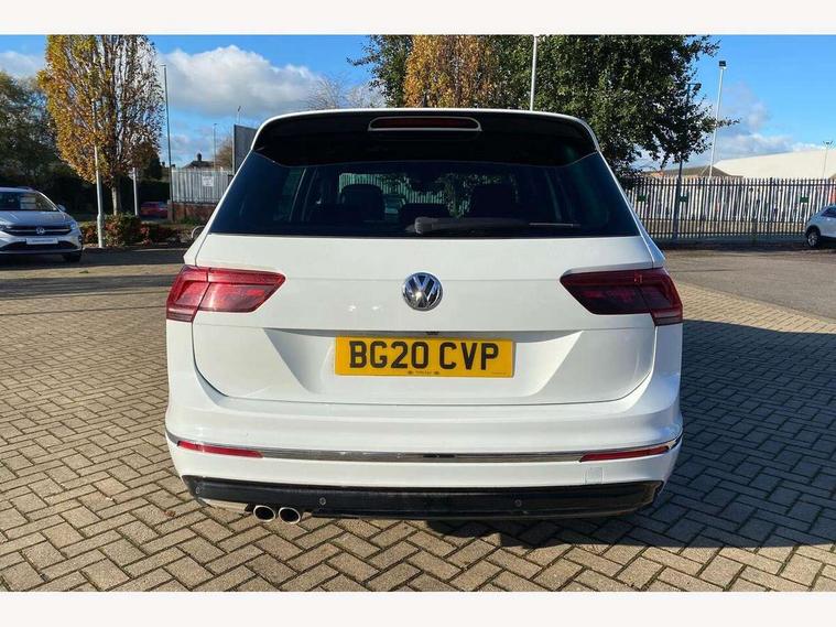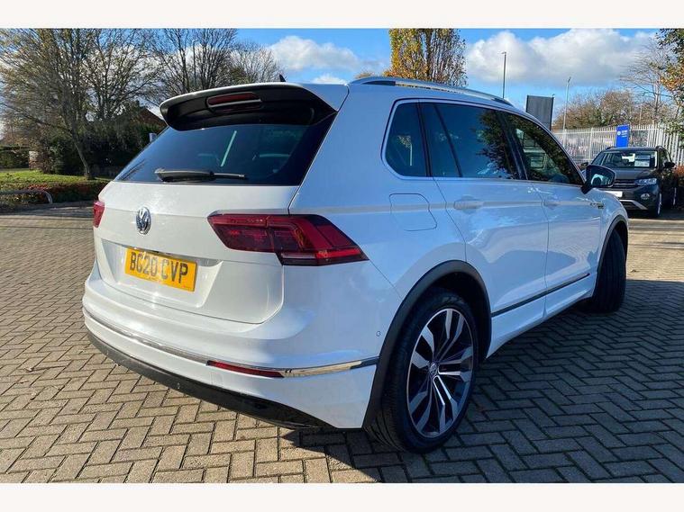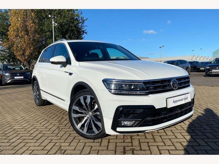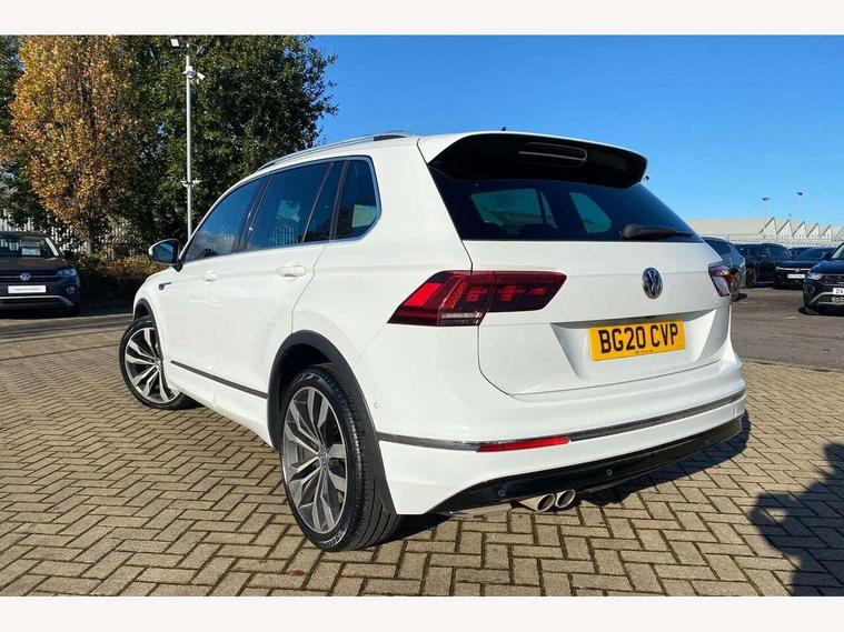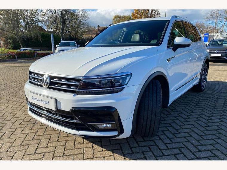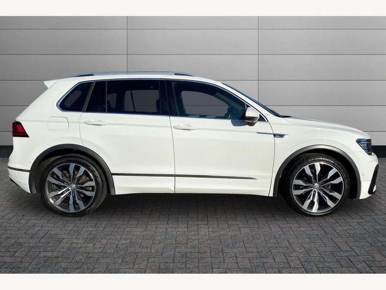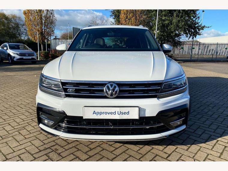 2D/3D map view, Active information display, Adaptive cruise control, App-Connect, Area view with park assist steering and front and rear parking sensors, Bluetooth phone integration system, Car information display, Distance control assist, Driver alert system with fatigue detection, Driver profile selection, Front assist, radar sensor controlled distance monitor, city emergency braking + predictive pedestrian protection, Fully electric tailgate + keyless entry and start, Instrument cluster, Lane assist, Lights on warning, Multifunction computer with visual gear change recommendation for fuel consumption, Outside temperature display, Progressive power assisted steering, Service interval indicator, Speed limiter, Start/Stop function, Warning sound and light for doors and tailgate open, Battery regeneration during braking, Diesel particulate filter, Misfuel prevention device for diesel engine, XDS electronic differential lock for improved traction and handling, 2 x USB connection + USB charging socket, 4 X 20 watt output, DAB Digital radio, SD card slot, Simultaneous pairing of 2 compatible mobile devices, SMS functionality - read, compose and send SMS messages using touch-screen display, Title and cover art display, 3D effect cherry red LED rear tail lights, Aluminium decorative inserts in dash and door panels, Auto dimming interior mirror, Automatic activation of hazard warning lights, Body colour door handles, Body colour door mirrors, Body colour rear spoiler, Body colour side skirt, Body coloured bumpers, Chrome side window surrounds, Chrome trimmed radiator grille, Coming/leaving home lighting function, Dusk sensor + auto driving lights, Electric panoramic sunroof with sunblind, Electrically heated and foldable door mirrors, door mirror puddle lights and reverse activated kerb view adjustment on passenger's door mirror, Front and rear electric windows, Heated rear window, High level 3rd brake light, LED headlights with dynamic light assist daytime running lights and cornering front fog lights, LED rear number plate lights, Piano black front air intake and rear diffuser, R Line body kit, R Line side sills, Rain sensor windscreen wipers, Rear tinted glass from B-pillar backwards approx 65% tinted, Rear windscreen washer and wiper with interval delay, Side skirts and rear bumper with chrome insert, Silver front underbody protection and rear diffuser, Silver roof rails, Trailer Stability Programme, Unique R Line badging, Windscreen wipers/ intermittent wipe + 4 position delay, 12V socket in centre console storage area, 2 cup holders in front, 3 rear headrests, 3 zone climate control, 4 load lashing points, 40:20:40 split folding rear seats, Bag hook in luggage compartment, Black headlining, Foldable front passenger seat backrest, Front + rear carpet mats, Front centre armrest with 12v socket, Front centre armrest with storage + rear 2 air vents, Front seat back storage pockets, Front seat R Line logo with rear seat backrest, Front seatback folding tables, Height/reach adjust steering wheel, Illuminated driver/passenger vanity mirrors, Illuminated scuff plates, Instrument lighting white adjustable panel illumination, Interior light with delay, Isofix Preparation 2 Rear child seats, Leather gear knob, Load through provision with 2 cupholders when folded, Lockable cooled glovebox, Luggage compartment lighting, Map pockets on front seats, Passenger seat height adjuster, Removable luggage cover, Sliding/reclining rear seats, Stainless steel pedals, Storage compartment in driver's door, Storage compartment in passenger's door, Storage compartment in rear doors, Storage compartments in luggage area left and right, Storage tray on dashboard, Sunglasses storage, Three spoke leather trimmed multifunction steering wheel with aluminium inserts and R Line Logo including paddle shift, Unique R Line door sill protectors, Variable boot floor, height adjustable and removable, Ambient lighting pack - Tiguan, R Line styling pack - Tiguan, 3 rear 3 point seatbelts, ABS+EBD+Brake assist, Active bonnet, Active pedestrian safety system, Curtain airbags, Driver/Front Passenger airbags, Driver/Passenger whiplash optimised head restraints, Drivers knee airbag, DTC - Drag torque control, Electronic parking brake with auto hold, ESC with EDL, ASR, EDTC and trailer stabilisation function, First aid kit, Front seat side impact airbags, Front side airbags, Front ventilated disc brakes and rear disc brakes, Head airbag system, Height adjustable front 3 point seatbelts + pretensioners, Hill hold control, Passenger airbag deactivate switch, Passenger knee airbag, Pre crash preventive occupant protection, Rear side airbags, Rigid safety cell with front and rear crumple zones, Two tone horn, Warning sound and light for front seat belts if unfastened, Warning triangle, Alarm with interior protection, Electronic engine immobiliser, Remote central locking with 2 remote folding keys, Chrome door trim inserts, Dark grey decorative inserts in dash and door panel, Piano black decorative inserts in centre console, 20" Suzuka alloy wheels with mobility self sealing tyres + anti theft wheel bolts, Steel space saver spare wheel,