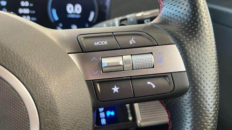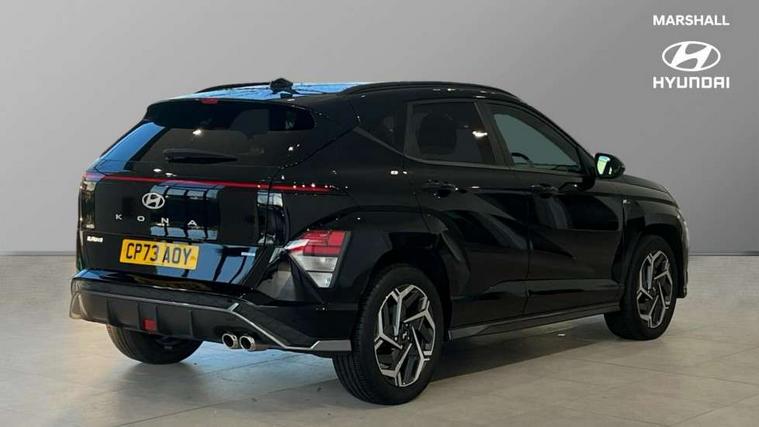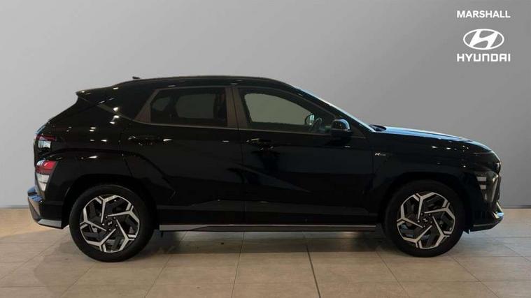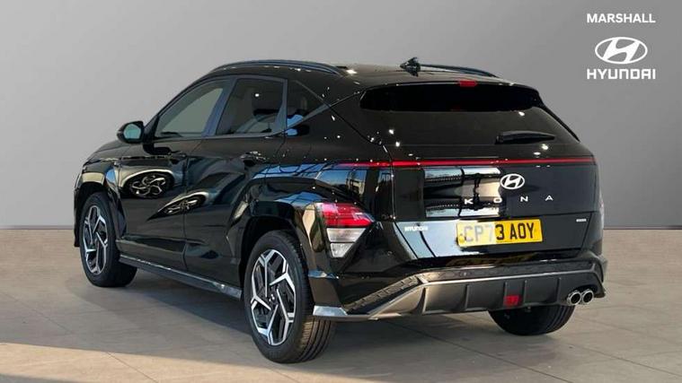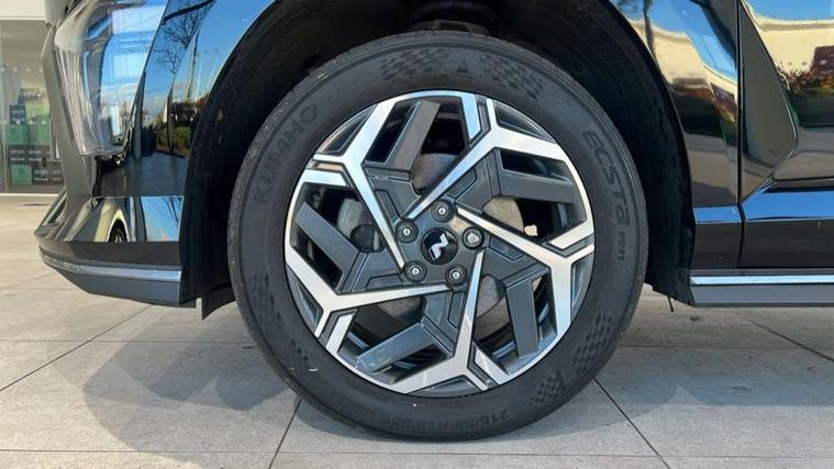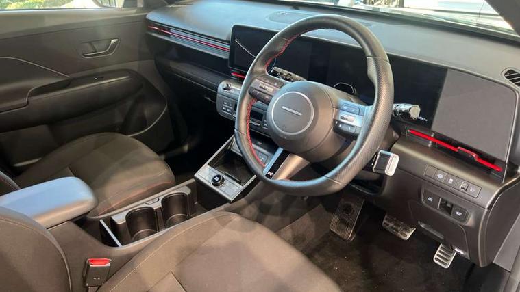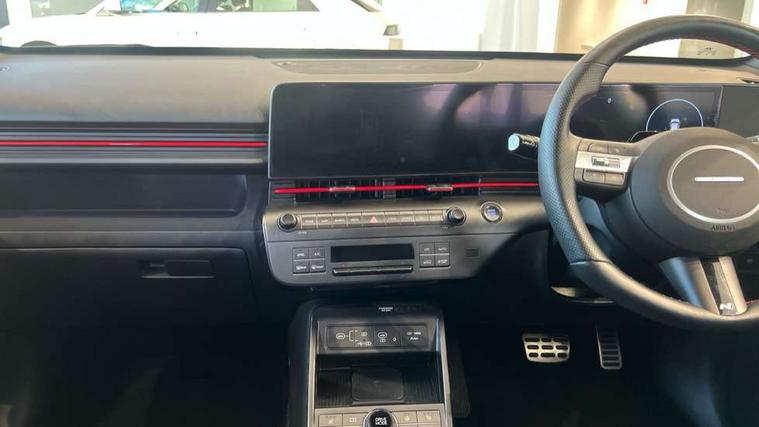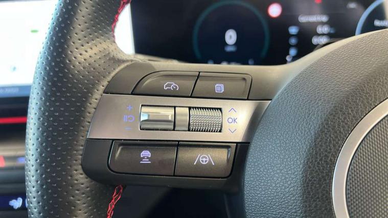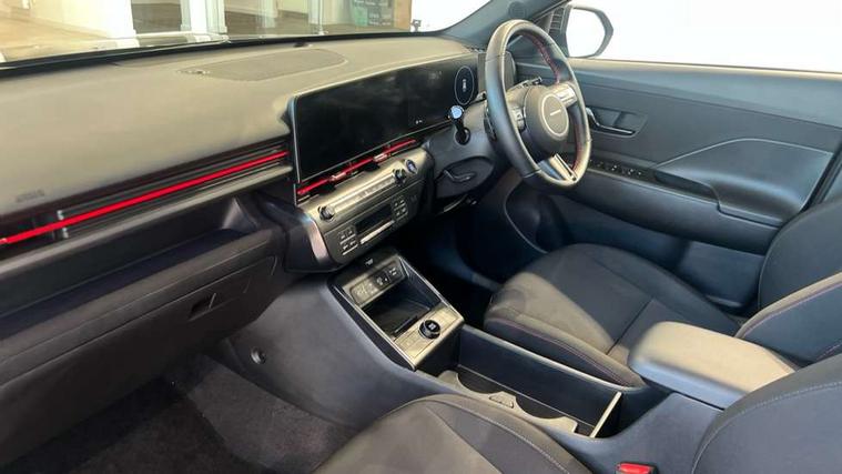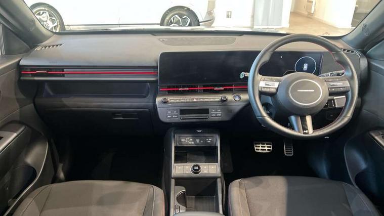 12.3" touchscreen centre console display satellite navigation with bluelink, live services and mapcare, Bluetooth connectivity with voice recognition, Digital clock, Driver status monitor (DSM), Driver supervision instrument cluster with 12.3" LCD display, eCall emergency call system, Feature on demand - Enabled, Forward collision avoidance assist (FCA 1.5) - Car, pededstrian, cycle and junction turning, Front parking sensor, HDA - Highway Drive Assist Level 1.5, Height adjustable power tailgate, Intelligent speed limit assist, Lane follow assist, Lane keep assist, Leading vehicle departure alert (LVDA), Parking system with rear camera and guidance system, PAS, Rear parking sensor, Roadside assistance, Smart cruise control with stop and go functionality, Smartphone integration compatible with Apple CarPlay and Android Auto, Windscreen washer fluid sensor and warning indicator, Wireless phone charging pad, 2 front USB C and 2 rear USB C charging points, DAB Digital radio, Speakers - Front, rear and tweeters, Steering wheel audio, phone and cruise controls, Auto dimming rear view mirror, Automatic headlights with dusk sensor, Automatic windscreen wipers with rain sensor, Body colour bumpers, Body colour exterior door handles, Body coloured wheel arch inserts, Door mirror LED indicator lights, Electric front windows with anti-trap mechanism and one touch control, Electric rear windows, Electrically adjustable and heated door mirrors, Full LED MFR headlights, Gloss black door mirrors, LED daytime running lights, LED upper and lower rear lights, Power folding door mirrors, Privacy glass - Rear windows and tailgate, Rear roof spoiler with integrated LED brake light, Rear side wing doors, Rear wiper, Roof rails, Solar glass with front door glass and windscreen, Tinted glass in front and rear doors, Windscreen auto defog function, 12V power outlet in front console, 2 zone climate control, 3 seat bench in 2nd row, 40/20/40 split folding rear seat, Adjustable head restraints, Aluminium pedals, Ambient lighting, Driver and passenger front seat pockets, Driver's seat lumbar support, Driver/passenger manual seat height adjustment, Driver/passenger sunvisors and illuminated vanity mirrors, Floor mats, Heated front seats, Heated rear seats, Heated steering wheel, Height/reach adjustable steering column, Isofix rear child seat fastenings, Leather wrapped steering wheel, LED centre interior light, LED front interior light, Luggage compartment LED lighting, Luggage shelf, Metal paint effect interior door handles, N Line cloth upholstery, Parcel shelf, Rear centre armrest, Rear centre console with air vents, Shift by wire SBW, Single front passenger seat, Vertical adjustment rear head restraints, N Line exterior design pack - Kona, Trailer wiring package - Kona, Airbag - front, front side, curtain and centre front airbag, Anti-lock brake system (ABS), Childproof rear door locks, Downhill brake control, EBD + Brake Assist, Electric parking brake, Electronic stability control, Fasten seatbelt reminder, Fixed 3 point for second row centre passenger seatbelt, Front seatbelt pretensioners, Height adjustable front seatbelts, Hill start assist control (HAC), Passenger airbag deactivate switch, Rear seat alert, Traction control, Tyre pressure monitoring system, Alarm/immobiliser, Deadlocks, Folding key, Locking wheel nuts, Remote central locking, Smart key with keyless entry and engine start/stop button, Five year annual vehicle health checks, Temporary mobility kit (TMK),