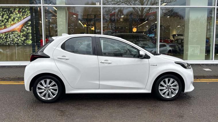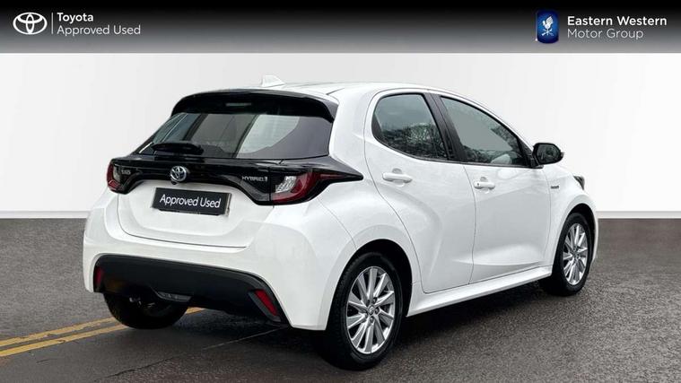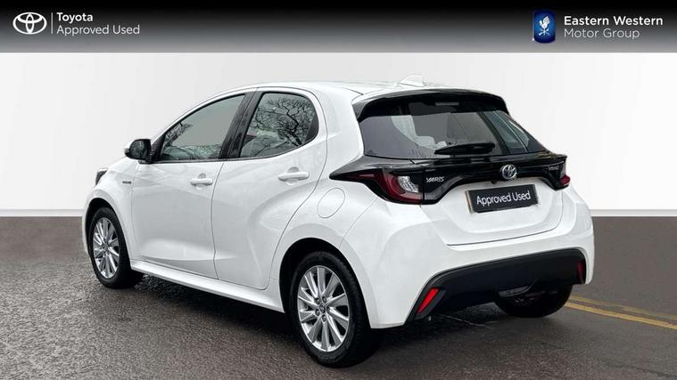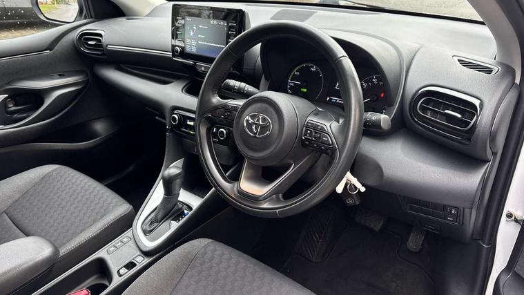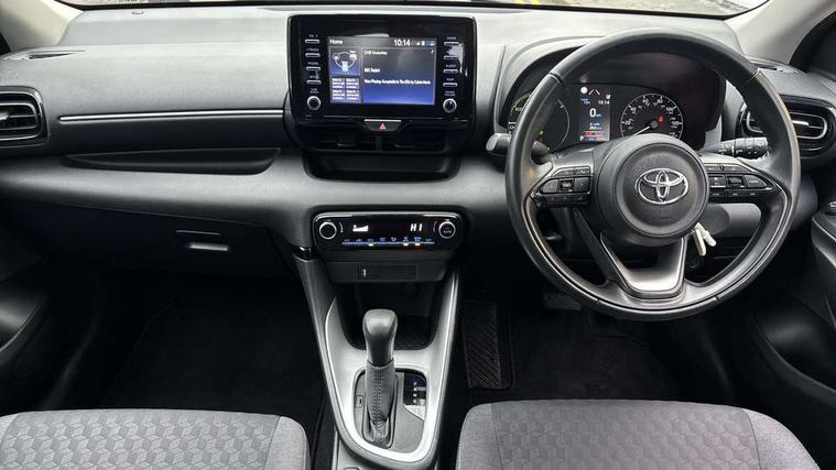 4.2" coloured LED TFT multi information display with analogue speedometer, Adaptive cruise control, Adjustable speed limit with speed warning, Bluetooth connectivity, E-call, Electric power steering, Hybrid energy display, Multi information display switches on steering wheel, Reversing camera, Smartphone integration with Apple CarPlay and Android auto, Vehicle Stability Control (VSC), 4 speakers, 7" Multimedia display touch screen, Toyota Touch 2 with DAB, USB connection, Acoustic windscreen glass, Auto windscreen wipers, Automatic headlights, Body coloured door mirrors, Electric adjustable heated door mirrors, Follow me home headlights, Front auto power windows with anti jam protection, Halogen projector headlights, LED daytime running lights, LED High mounted stop lamp, Rear spoiler, Shark fin antenna, Turning signal integrated indicators in door mirrors, 3 adjustable rear headrests, 3 spoke leather steering wheel, 60/40 split folding rear seat, Active headrests, Adjustable boot height, Auto air conditioning, Coat hooks in rear grab handles, Cup holders (2 front & door), Data Communication Module (DCM) connected services, Fabric upholstery, Front armrest, Glovebox, Height adjustable driver's seat, Isofix seat fixing, Leather gearshift, Pollen filter, Shopping bag hooks, Tilt/telescopic steering column, 3 point seatbelts on all rear seats, ABS+EBD+Brake assist, Electronic parking brake, Emergency brake light system (EBS), Front passenger airbag on/off switch, Front seatbelt reminder, Hill start assist control (HAC), Rear child proof door locks, Rear seat belt reminder, Supplemental Restraint System (SRS) 8 airbags: Driver & passenger's airbags, dual side curtain airbags, side impact airbags, front centre airbag, Toyota Safety Sense 2, Precollison + Night time Pedestrian & Cyclist Detection, Lane Trace Assist, Auto High Beam, Intelligent ACC & Road Sign Assist, Tyre pressure warning system, Alarm/immobiliser, Remote powered central double locking doors, Soft touch instrument panel, 16" Silver alloy wheels, Space saver spare wheel,