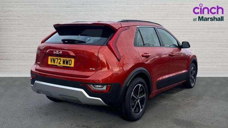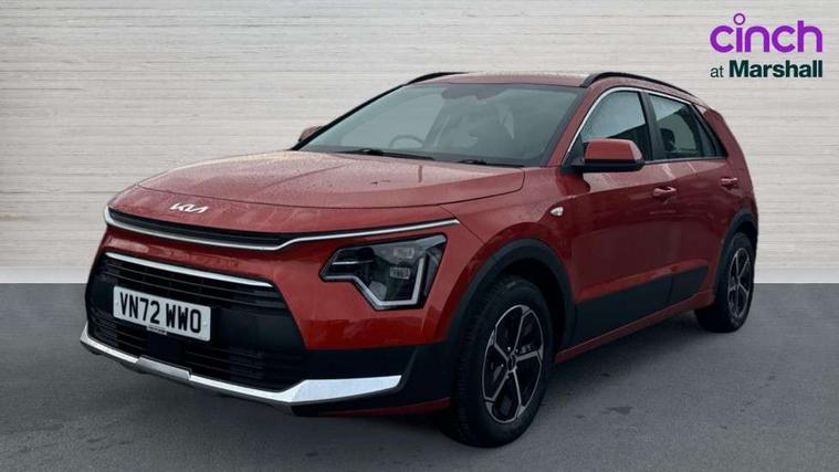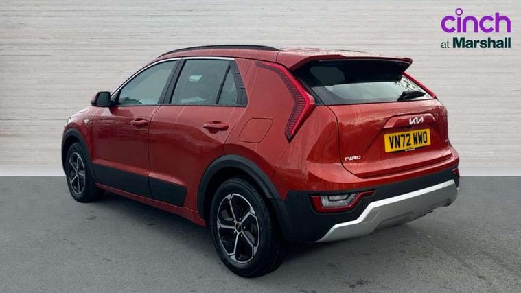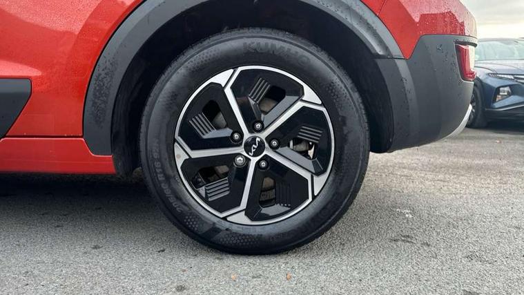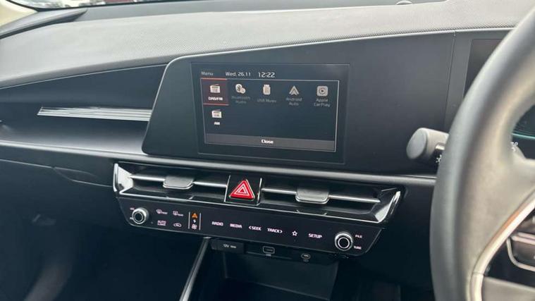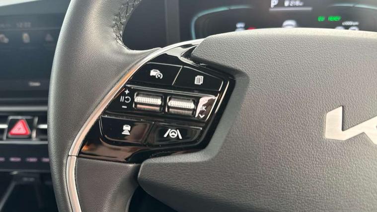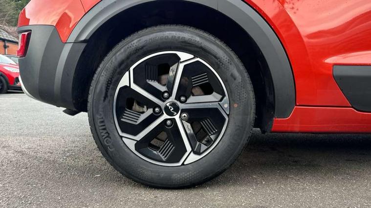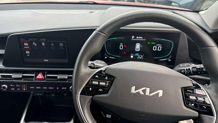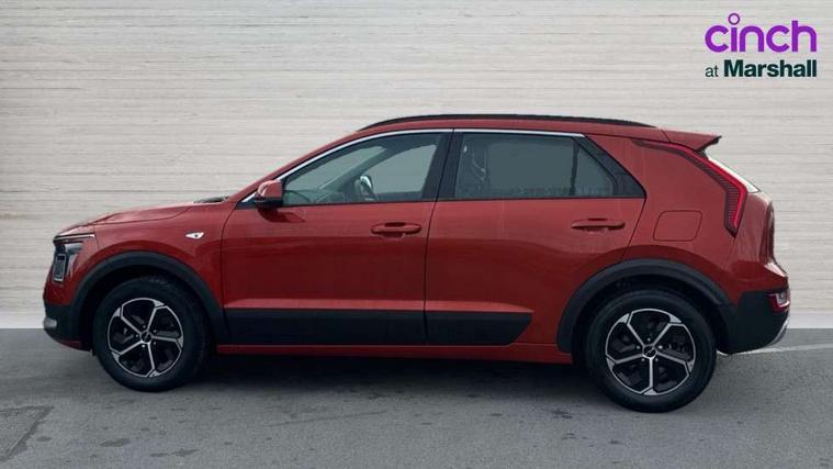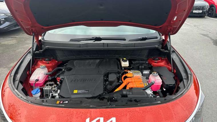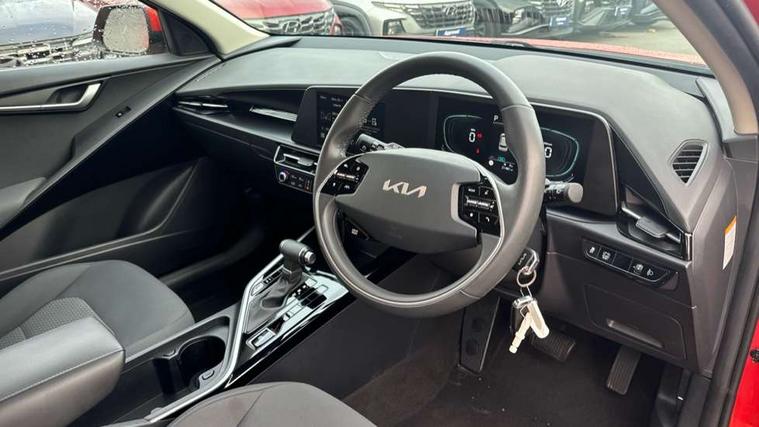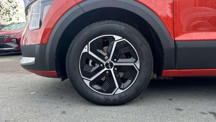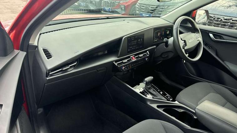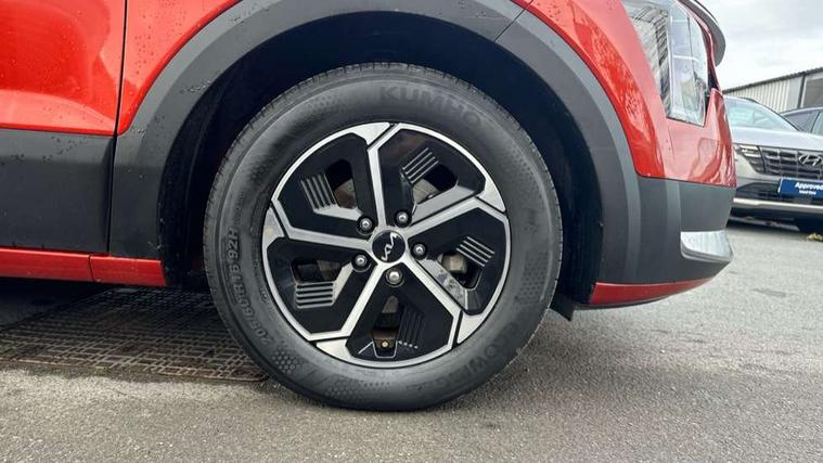4.2" supervision colour cluster display, 8" touch screen, Adaptive smart cruise control function (SCC) with stop and go, Apple car play/Android Auto with voice control, Drive mode select (Eco, sport), E-call, Emergency stop signalling system, Forward Collision-Avoidance Assist (FCA) 1.5 - City/Pedestrian/Cyclist/Junction turning, Lane Following Assist (LFA), Lane keep assist, Motor driven power steering, Rear parking sensors, Reversing camera with dynamic guide lines, Speed limit assist, Tailgate, Trip computer with distance/fuel consumption/average speed, Sports H-Matic Automatic, 'Shark fin' mobile antenna, 2 type C USB ports on front seats, 2 USB ports in centre console including 1 type C, 6 speakers, Bluetooth with music streaming, DAB Digital radio, Steering wheel mounted controls, Acoustic windshield, All round electric windows with drivers auto up/down function, Auto dimming rear view mirror, Automatic defog system, Automatic headlight control system, Black beltline mouldings, Black embossed cladding, Body colour bumpers, Body colour door mirrors, Body colour exterior door handles, Dual LED headlights (low and high projection), Electric heated door mirrors, Front and rear silver skid plates, Heated rear window with timer, LED daytime running lights, LED rear combination lights, LED third brake light, Manual folding door mirrors, Rain sensor, Rear fog lights, Rear side wing doors, Rear spoiler, Rear wiper, Roof rails, Solar glass rear windows and tailgate, Solar glass windscreen, Welcome and follow-me home light functionality, Windscreen Washer Level Warning, 12V socket in front, 12V socket in luggage compartment, 3 seat bench in 2nd row, 60/40 split/folding 2nd row of seats, All-round height adjustable headrests, Artificial leather centre console storage box, Artificial leather steering wheel, Bulb overhead console, 2nd row and luggage lamp, Centre console cupholder, Cloth upholstery, Driver seat manual adjustment, Driver/passenger sunvisors with illuminated vanity mirrors, Dual zone automatic air conditioning, Front and rear door storage, H-Matic gear selection, Illuminated glovebox, Interior door lock/unlock function, ISOFIX Child seat top tethers and anchor fixings, Luggage area load cover, Luggage board, Metal paint interior door handles, Passenger seat height adjuster, Rear armrest, Single front passenger seat, Tilt/telescopic adjustable steering wheel, Towing pack - Niro, 3 point seatbelts on all seats, ABS, Automatic unlocking of doors in case of impact, Centre side front airbags, Curtain and side airbags, Drivers knee airbag, Dual shell horn, Electric parking brake with auto hold function, Electronic stability control, Front passenger airbag deactivation, Height adjustable front seatbelts, Hill start assist control (HAC), Manual rear child locks, Rear seat alert system, Traction control, Tyre pressure monitoring system, Alarm system and engine immobiliser, Deadlocks, Locking wheel nuts, Remote central door locking with fold away key, Visible vehicle identification number, Warranty - 7 Years/ 100, 000 miles, Graphite paint centre fascia, 16" alloy wheels, Tyre mobility kit,
