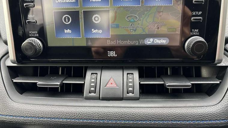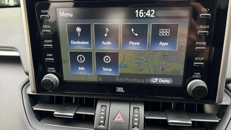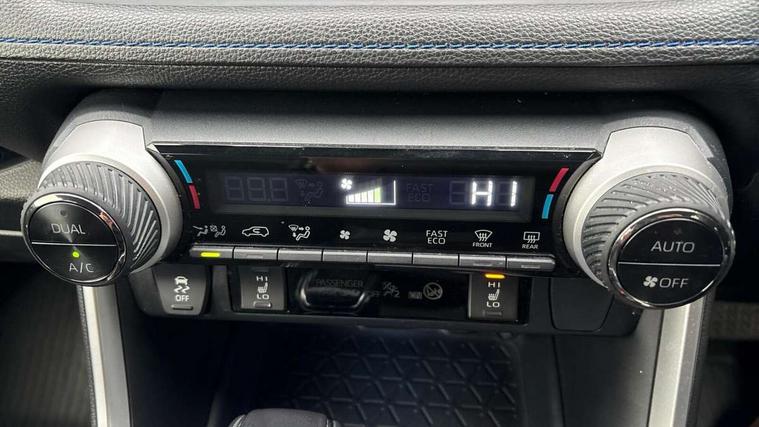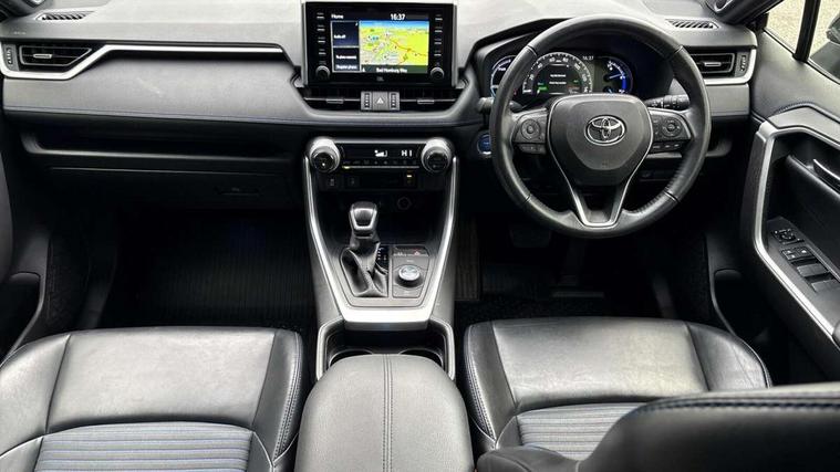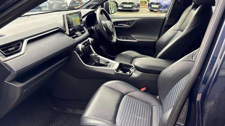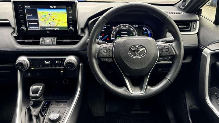 7" colour TFT display, Adaptive cruise control with lane trace assist, Adjustable speed limiter, Apple car play and Android auto, Blind spot monitoring with rear cross traffic alert, Bluetooth system, Cyclist Detection, Drive mode selector, eCall emergency call system, ECO-driving indicator, Electric power steering, EV audible alert, Hybrid system indicator, Lane departure warning system, Lights on warning, Night Time Pedestrian Detection, Pedestrial detection, Power boot opening and closing, Rear parking camera, Rear parking sensors, Remote boot door release in cabin, Tachometer, Touch 2 Go navigation system including 3D maps and voice control, Traffic sign recognition, Trip computer, Voice control system, Vehicle Stability Control (VSC), 6 speakers, 8" Multimedia display touch screen, Auxiliary socket for external MP3 player, DAB audio, Steering wheel mounted audio controls, Toyota touch media system, USB connection, Auto dimming interior mirror, Auto high beam, Automatic headlamp levelling, Automatic headlights, Automatically retractable door mirrors, Bi-tone black roof, Black door mirrors, Black rear spoiler, Black roof rails, Black Shark-fin antenna, Body colour door handles, Body coloured bumpers, Door mirror puddle lights, Electric adjustable door mirrors, Emergency brake-light signal (EBS), Follow me home headlights, Front fog lights, Gloss black front bumper insert, Gloss black rear bumper insert, Headlight cleaners, Heated door mirrors, LED daytime running lights, LED High mounted stop lamp, LED rear lights, Meshed upper front grille, Power front windows, Power rear windows, Privacy glass, Projector LED headlights, Rear screen wiper - intermittent, Rear windscreen defogger, Silver front under-run, Silver rear under-run, Trailer sway control, Turning signal integrated indicators in door mirrors, 3 rear headrests, 60/40 split fold rear seat back, Black roof lining, Boot light, Clean air filter, Driver and front passenger personal light, Driver and front passenger Whiplash Injury Lessening seats, Driver and passenger sunvisors with illuminated vanity mirrors, Dual sided deck board in boot, Dual zone automatic air conditioning, Floor mats, Folding rear centre armrest, Front and rear bottle holders, Front centre armrest, Front footwell lights, Front headrests, Front seat and rear pockets, Front sport seats, Front/rear roof mounted assist grips, Heated driver and front passenger seats, Isofix child seat preparation, Leather gear shift with chrome surround, Light blue ambient lighting on front cupholders and open tray, Manual telescopic and tilt 3-spoke leather steering wheel with Chrome insert, Manually reclining and sliding front passenger seat, Pollen filter, Power height-adjustable sliding reclining and lumbar support for driver seat, Rear coat hooks, Rear door armrests, Rear passenger air vents, Reclining rear seats, Satin chrome interior door handles, Sunglasses holder, Synthetic leather upholstery, 3x3 point rear seatbelts, ABS/EBD, Adjustable front driver and passenger seat belt extender, Brake assist function, Child proof door locks, Collision mitigation braking system, Driver/Front Passenger airbags, Driver/front passenger side airbags, Drivers knee airbag, Electronic parking brake, Electronic Stability Programme (ESP), Emergency brake light system (EBS), Front and rear curtain airbags, Front and rear seatbelt reminder, Hill start assist, Passenger airbag cut-off device, Seatbelt pretensioners with load limiters, Traction control, Tyre pressure warning, Alarm/immobiliser, Glass-breaking alarm sensors, Light - on and Key in reminder, Remote central locking, Smart entry + Smart start, Speed sensitive auto door locking, Tilt detection sensors, Piano black centre console with silver insert, Soft-touch black lower dashboard, Soft-touch black upper dashboard with silver insert, Full size spare wheel,