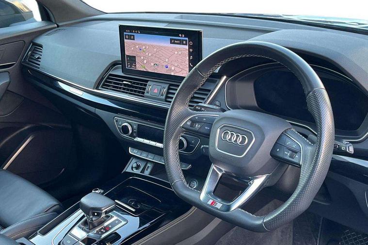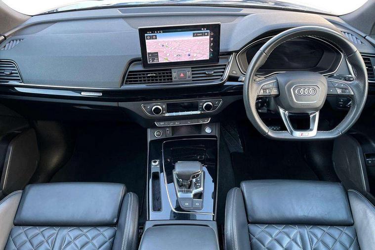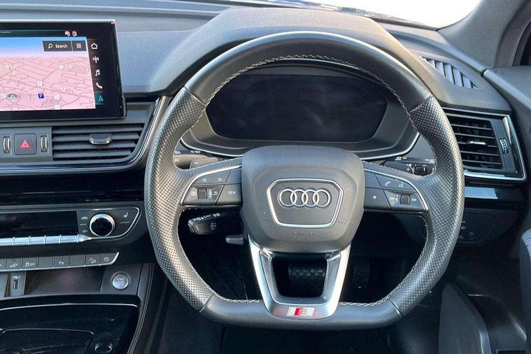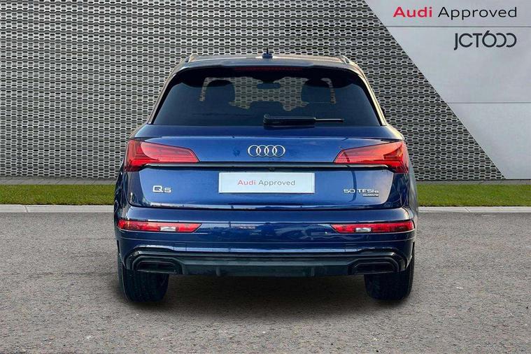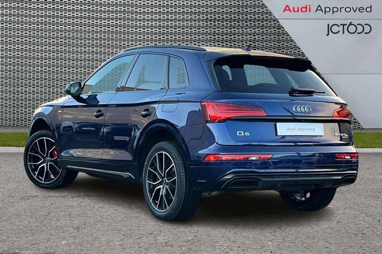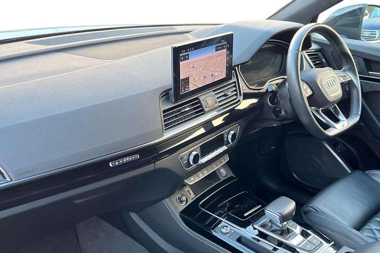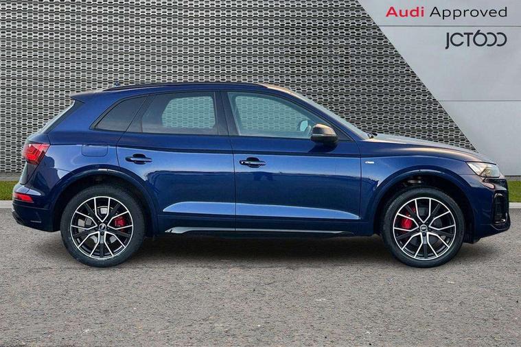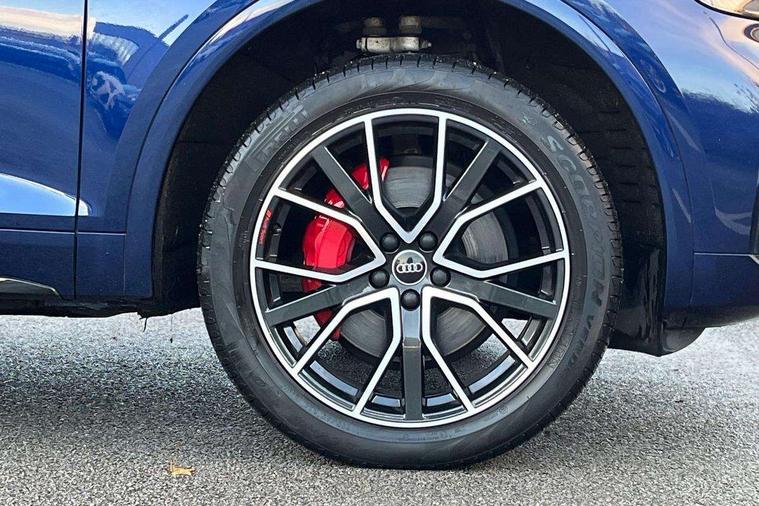 Audi connect safety and service (e-call), Audi connect with Amazon Alexa Integration, Audi drive select, Audi virtual cockpit plus with 12.3" screen and three different layout designs, Audi wireless smartphone interface, Automatic start-stop system with coasting functionality and efficiency programme, Bluetooth interface, Electro - mechanical power assisted steering, MMI navigation plus with 10.1" touch screen, Power tailgate, Reversing camera, Service interval indicator, Voice control system with Audi hotword activation "Hey Audi", 3 pin 10 amp domestic charging cable, Dynamic suspension, Quattro on demand, Type 2 mode 3 22kW 32 amp charging cable, Type 2 socket for AC charging, 2 x USB charging port with aux input socket, DAB Digital radio, Acoustic windscreen, Audi beam with Audi rings logo, Audi matrix LED headlights with dynamic front and rear indicators, Audi rings at front and rear in black, Audi rings decal on rear doors, Auto dimming door mirrors, Auto dimming rear view mirror, Automatic headlights and windscreen wipers, Black door mirrors, Black roof rails, Body colour bumpers, Body colour underbody protection, Chrome plated exhaust trims, Daytime running lights, Door sills in Selenite silver, Electric adjustable/heated/folding door mirrors, Front air inlet surrounds in titanium black, Front and rear electric windows, Headlight washers, High gloss black B pillar trims and triangular rear door trim, High level LED brake light, Rear chrome trim strip below lights, Rear privacy glass and rear side windows, Rear side wing doors, Rear spoiler, Rear wiper, Roof bars, Without model and engine badging at rear, 3 rear headrests, 4 way electric lumbar support for driver and front passenger, 40:20:40 split folding 3 rear bench seat in 2nd row with rear centre armrest, Black cloth headlining, Comfort front centre armrest, Contrast stitching on seats, steering wheel and gear lever gaiter, Deluxe 3 zone electronic climate control, Electrically adjustable front seats, Fine Nappa leather upholstery with diamond pattern contrast stitching + front sport seats with S embossed logo, Front/rear floor mats, Gear lever in black leather, Heated front seats, Height adjustable front head restraints, Height/reach adjustable steering column, Illuminated door sill trims with S logo, ISOFIX child seat mounting and top tether, Rear seat bench plus, Single front passenger seat, Sunvisors with vanity mirrors, Trunk roller cover, Black styling package - Q5 Edition 1, Extended interior upholstery pack - Q5, Extended LED Interior multi coloured Lighting Pack - Q5, 3 point seatbelts on all seats, 6 airbags - Driver, front passenger, curtain and side airbags, Electrically operated child locks on rear doors, Electromechanical parking brake, Electronic stabilisation control including ABS, ASR and EDL, Front and rear brake calipers painted in red, Front passenger airbag deactivation, Hill descent control, Hill hold assist, Multi collision brake assist, Pop-up bonnet for pedestrian protection, Pre sense city, Seat belt force limiter, Seatbelt monitoring, Tyre pressure warning, Warning triangle and first aid kit, Anti theft alarm, Anti-theft wheel bolts, Keyless Go access/ignition system, Remote central locking, Piano black finish inlay, 20" 5 V spoke star design Audi sport alloy wheels in gloss anthracite black with diamond cut finish, Tool kit, Tyre repair kit,