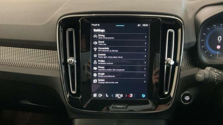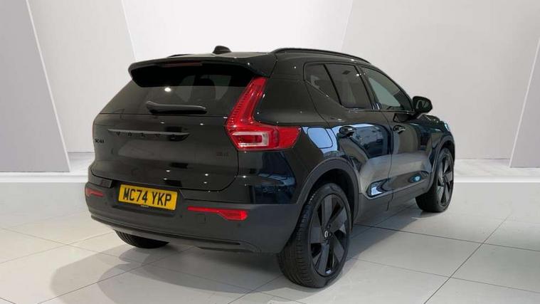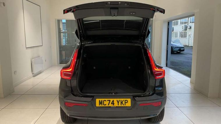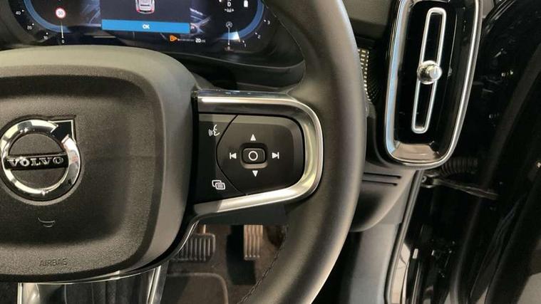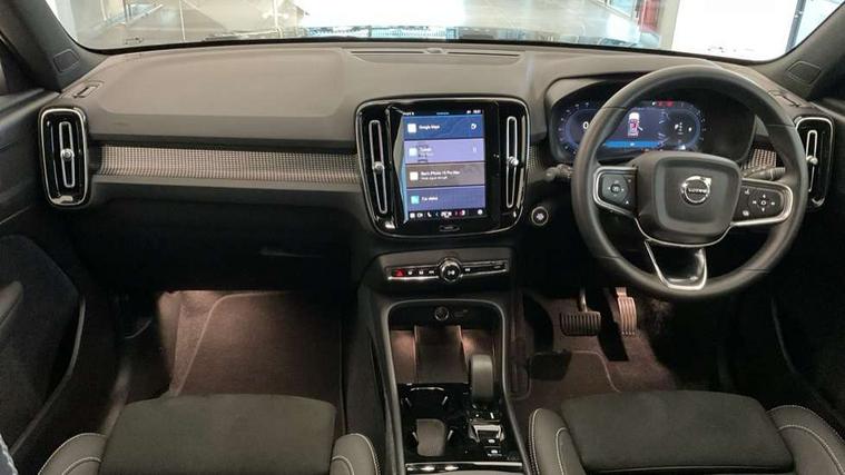 12.3" Progressive Driver Display, 9" centre console portrait touch screen, Adjustable steering wheel force, Android auto (Wired), Apple carplay (wired), Bluetooth handsfree system, Cruise control, Driver alert control, E-call, Front park assist, Google automotive services - Enabled entertainment apps, navigation with google maps, voice recognition with google assistant, Hands free power tailgate, Intelligent speed assistance, Lane keeping aid, Oncoming Lane Mitigation, Rear park assist, Speed sensitive steering, Volvo cars services with app - Driving journal, emergency and breakdown call, engine remote start, remote door locking/unlocking and vehicle dashboard, Wireless/Inductive Mobile Phone Charging, Automatic transmission with start/stop and manual change functions, Dynamic chassis, DAB Digital radio, Steering wheel mounted remote controls, Adaptive brake lights with high level LED brake lights, Auto dimming interior mirror, Automatic headlamp levelling, Automatic LED Headlights + Active high beam incorporating daytime running lights, Colour coordinated auto folding and heated power door mirrors, Dark tinted windows - rear side windows and rear screen, Front aluminium tread plates, Front and rear electric windows, High gloss black front and rear skid plate, High gloss black front bumper deco, High gloss black front grille strikethrough and ironmark, High gloss black rear model, engine and volvo logo badges, High gloss black window trim, Home safe and approach lighting, Integrated roof rails in high gloss black, LED front fog lights, Puddle lights, Rain sensor with automatic windscreen wiper activation, Rear side wing doors, Rear wiper, Roof antenna, Roof spoiler, Special metallic paint, Visible VIN plate, 12V socket in front tunnel console and luggage compartment, 2-Zone electronic climate control with CleanZone air quality system and pollen filter, 3 seat bench in 2nd row, 3 Spoke tailored steering wheel with chrome trim, 60/40 versatile split folding rear seat, Centre console cupholders and storage, Charcoal headlining, Connect textile/microtech upholstery, Flexible load floor and grocery bag holder, Floor mats, Front cabin courtesy lights, Front door pocket, front cupholder, ambient front door, rear reading, rear courtesy, instrument panel and tailgate lighting, Front footwell illumination, Front headrests, Front reading lights, Front seat cushion extensions, Front side step illumination (under door), Glovebox bag hook, Heated front seats, Height adjustable passenger seat, Height/reach adjustable steering column, High gloss centre tunnel deco, Illuminated glovebox, Illuminated luggage compartment, Illuminated vanity mirrors + ticket holder, Integrated waste bin, Isofix attachments on outer rear seats, Load cover, Load protection net, Multi directional lumbar support for driver and passenger seat, Power driver seat with memory + exterior mirrors memory, Rear armrest with cupholders, Rear headrests, Single front passenger seat, Underfloor cargo storage, Climate pack without heated front seats - XC40, 3x3 point rear seatbelts, City safety with steering support with Pedestrian + cyclist + front collision warning with full auto brake and rear auto brake, Driver and passenger airbags, Drivers knee airbag, Electronic parking brake with auto hold, First aid kit, Front and outer rear seatbelt reminder and pretensioners, Front seats SIPS airbags, Hill descent control, Hill start assist, Inflatable curtain, Passenger airbag cut-off device, Power child locks on rear doors, Road sign information display, Run off Road Protection, SIPS (Side Impact Protection System), Slippery road and hazard light alert, Stability and Traction Control with Spin control, Engine Drag Control and Corner Traction Control, Tyre pressure monitoring system, Vehicle deceleration control with Anti-lock Brake System, Electronic Brake Distribution and Emergency Brake Assist, Warning triangle, WHIPS whiplash protection system - front, 2 x Key integrated remote control central locking including with deadlocking system and auto open/close windows, Anti-theft alarm including immobiliser/volume sensor + level sensor, Keyless drive includes keyless entry and keyless start, Locking wheel nuts, 20" 5 spoke high gloss black alloy wheels,