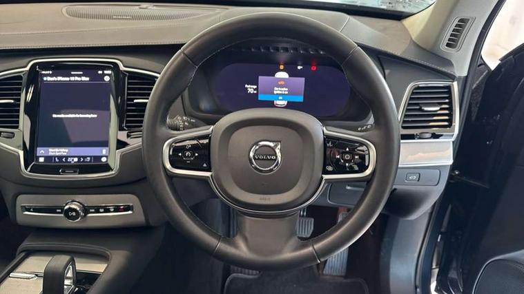 12.3" Progressive Driver Display, 360 degree surround view parking camera with side proximity sensors, 9" centre console portrait touch screen, Adjustable steering wheel force, Bluetooth hands free telephone connection, Driver alert control with lane keeping aid, Driver assistance (pilot assist and adaptive cruise control), Driver awareness - Blind spot information system with steer assist, cross traffic alert with autobrake and rear collision warning and mitigation, Emergency call service, Front and rear park assist, Google Automotive Services - Navigation with Voice recoginition and google assistant, Handsfree power tailgate opening and closing, Oncoming Lane Mitigation, Power operated tailgate, Service interval indicator, Speed limiter, Speed sensitive steering, Trip computer, Volvo on call, Wireless Mobile Phone Charger, 8 speed automatic transmission with start/stop + manual change functions, Touring chassis, DAB Radio (Digital Audio Broadcasting), Premium Sound by Harman Kardon, dirac unison, dolby pro logic II surround sound, 13 speakers/600W output and fresh air subwoofer, Steering wheel remote infotainment controls, Active bending headlights with adaptive shadow technology, Adaptive brake lights with high level LED brake lights, Auto dimming interior + exterior mirrors, Auto folding and heated power door mirrors, Automatic headlight levelling system, Automatic LED Headlights + Active high beam incorporating daytime running lights, Body colour bumpers, Front and rear power windows, Headlight cleaning system, Heated front windscreen, High gloss black door mirrors and window surround, High gloss black front and rear bumper deco, High gloss black mesh front grille with surround, Home safe and approach lighting, Integrated roof rails in high gloss black, LED front fog lights with cornering light function, Power glass tilt and slide panoramic sunroof with sun curtain, Puddle lights, Rain sensor with automatic windscreen wiper activation, Rear side wing doors, Rear wash/wipe with intermittent wipe setting, Roof antenna, Roof spoiler, Visible VIN plate, 12V socket front tunnel console, rear passenger compartment and cargo area, 2 seat bench in 3rd row, 2nd Row centre armrest with and cupholders, 3 seat bench in 2nd row, 4 zone electronic climate control with Clean zone air quality system + pollen filter, A-pillar parking ticket holder, Advanced interior air cleaner PM2.5, Air conditioning for 3rd row of seats, Ambient door and instrument panel lighting, B Pillar ventilation, Bright metal luggage threshold, Centre console cupholders and storage, Floor mats, Front and rear door pocket and front cupholder illumination, Front and rear reading lights, Theatre lighting and centre armrest storage illumination, Front footwell and side step illumination, Front headrests, Front seat cushion extensions, Heated front seats, Heated rear seats, Heated steering wheel, Height/reach adjustable steering column, Illuminated front and rear tread plates, Illuminated luggage compartment, Illuminated tailgate, Illuminated vanity mirrors + ticket holder, Illumination lockable glovebox compartment, Integrated sun curtains in rear doors, Isofix outer rear child seat preparation in 2nd row, Load protection net, Luggage compartment divider with grocery bag holder, Outboard armrest with cupholder and storage for third row passengers, Power driver seat with multi directional lumbar support and memory for seat and exterior mirrors, Power folding 2nd row headrests, Power passenger seat with multi directional lumbar support and memory, Rear footwell and side step illumination, Rear headrests, Semi automatic load cover, Single front passenger seat, Underfloor luggage compartment storage, 7 three point seatbelts, City safety with steering support includes pedestrian, cyclist and large animal detection and front collision warning with full auto brake, Drivers knee airbag, Dual stage driver/passenger airbags, First aid kit, Front seats SIPS airbags, Hill descent control - off drive mode, Hill start assist, IC (Inflatable Curtains) - Full Length, Passenger airbag cut-off switch, Power child locks on rear doors, Power parking brake with auto hold function, Road sign information display, Run off Road Mitigation, Run off Road Protection, Seatbelt reminder and pretensioners for all seats, SIPS (Side Impact Protection System), Slippery road and hazard light alert, Stability and Traction Control with Spin control, Engine Drag Control and Corner Traction Control, Tyre pressure monitoring system, Vehicle deceleration control with Anti-lock Brake System, Electronic Brake Distribution and Emergency Brake Assist, Warning triangle, WHIPS whiplash protection system - front, Anti-theft alarm including immobiliser/volume sensor + level sensor, Care key with user defined top speed, Key integrated remote control central locking + fuel flap with deadlocking system and auto open/close power windows, Keyless drive includes keyless entry and keyless start, Locking wheel nuts, Private locking for glovebox and tailgate, Tailored Instrument Panel and Door Tops with Contrast Stitching, Tempa spare wheel and jack,