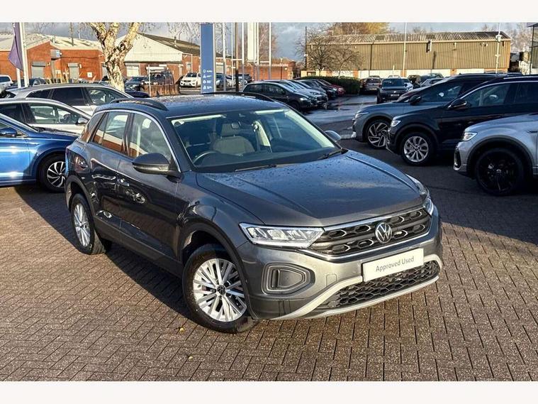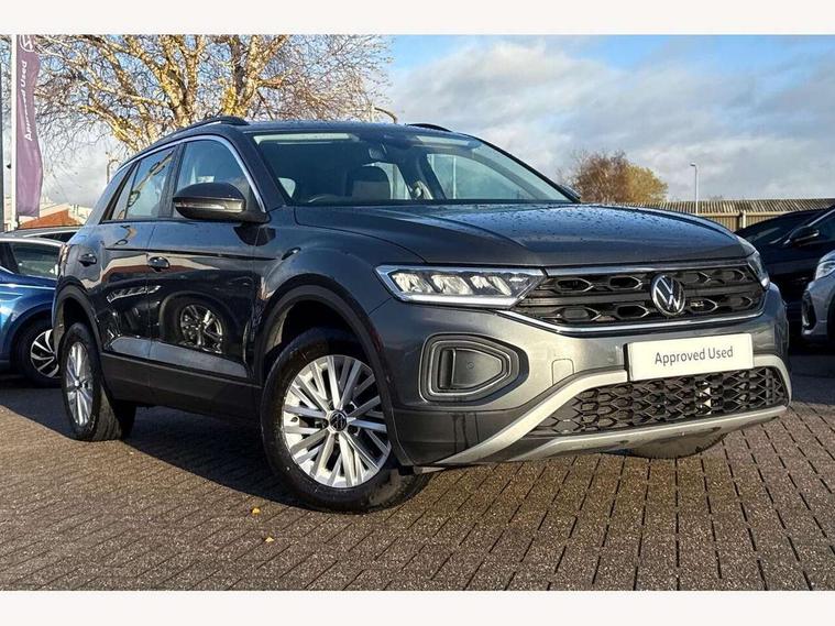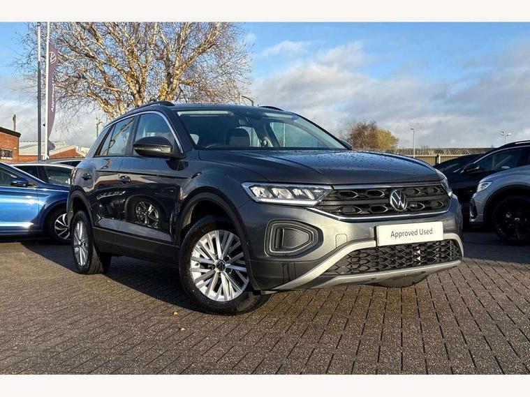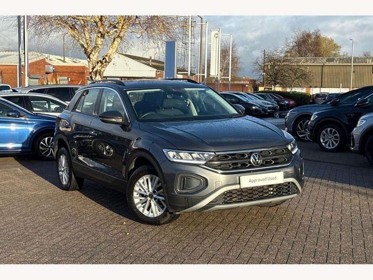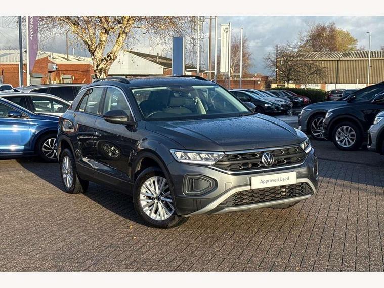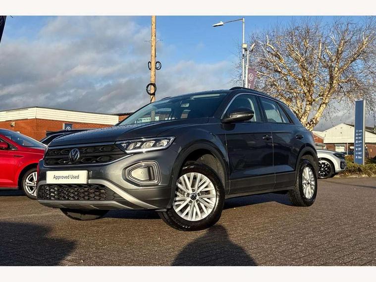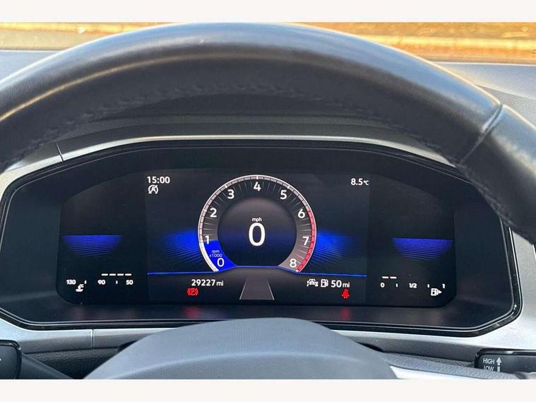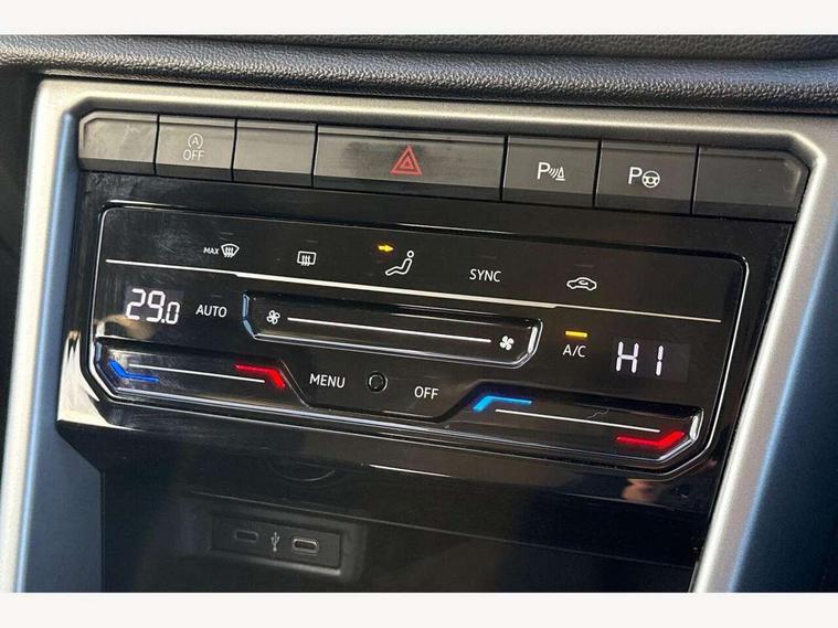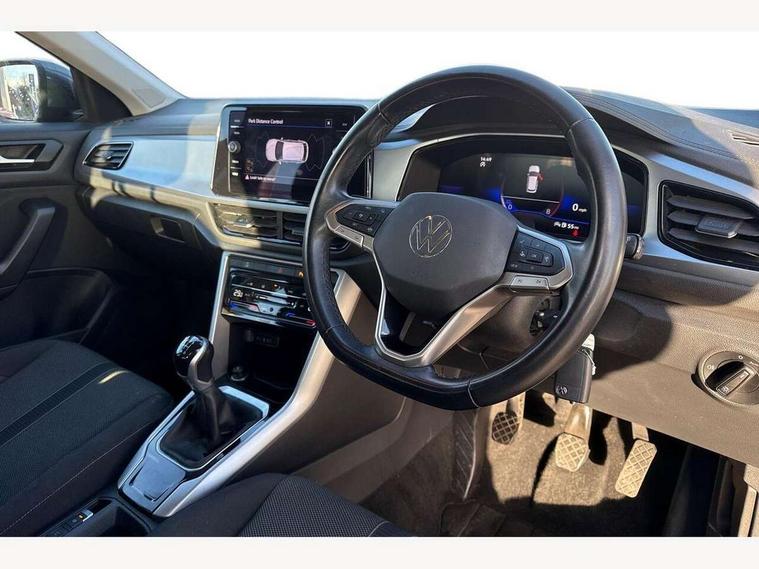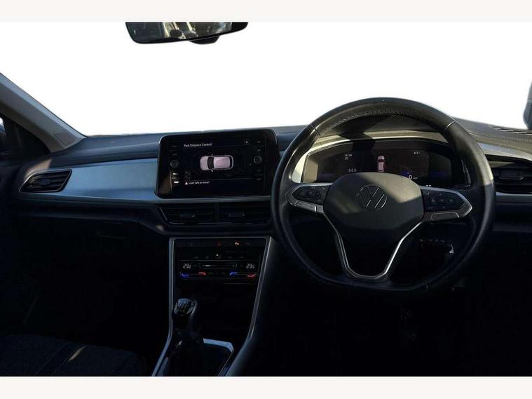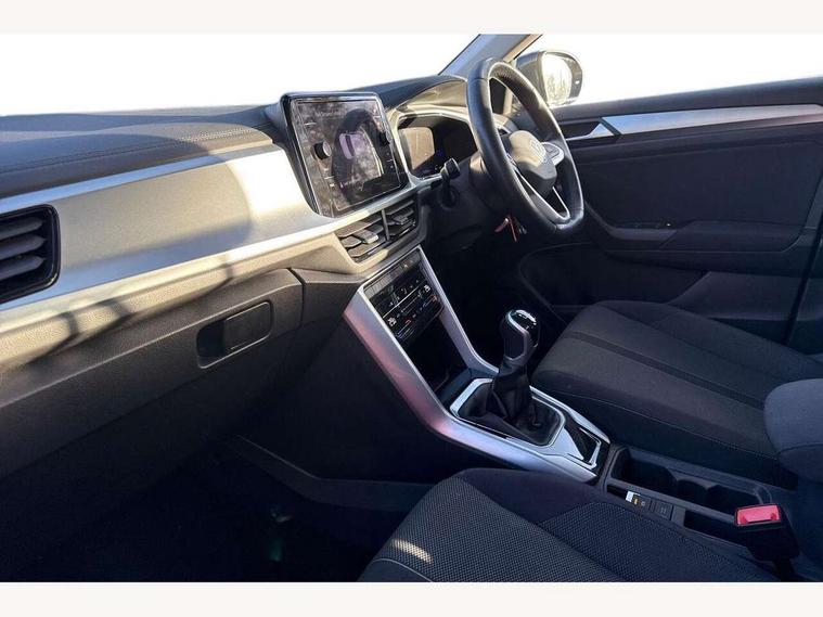 Bluetooth mobile phone interface, Driver alert system with fatigue detection, Driver tips and journey analysis, Emergency call service, Lane keeping system Lane Assist, Modified key software - reduce switch off time for key status change to Long no motion, Online services, Park assist including front and rear parking sensors, Power assisted speed sensitive steering, Service interval indicator, Tailgate/trunk lid release from outside, Think blue trainer driver tips and journey analysis, Warning sound and light for front seatbelts unfastened, Wireless app connect, Battery regeneration during braking, Front shock absorption, Rear shock absorption chassis with increased ride height, Start/stop function with battery regeneration, DAB Digital radio, Diversity antenna for FM reception, Front and rear 6 speakers, Music playback - MP3, WMA and AAC files, Premium USB cable in choice of either Apple or Android smartphone compatibility, SD card slot, Simultaneous pairing of 2 compatible mobile devices, Title and cover art display, We Connect and We Connect Plus functionality, 3rd brake light, Auto dimming interior rear view mirror, Automatic hazard lights activation under emergency braking, Automatic headlight control with LED separate daytime running lights with coming/leaving home function, Black roof rails, Body coloured bumpers and radiator grille with chrome trim and front fog lamps with chrome bezel, Body coloured exterior mirror housings and door handles, Extended roof spoiler, Exterior mirrors aspherical on driver side, convex on front passenger side, External USB type C socket and charging sockets, Front windscreen wiper with intermittent wipe and 4 position delay, Heated rear window, LED Headlights, LED rear combination lamps, LED rear number plate lights, LED tail lamp rear comination lamps, Power windows with comfort operation and circuit breaker, Rain sensor, Rear exhaust tailpipe, Rear fog light on one side and reversing lights on both sides, Rear side wing doors, Rear wash/wipe with intermittent wipe setting, Remote electrically foldable door mirrors, puddle lights and reverse activated passenger's door mirror, 12V power socket in centre console, 3 rear head restraints, 3 seat bench in 2nd row, 4 load lashing points in luggage compartment, Air care climatronic air conditoning system with active combination filter and 2-zone temperature control, Ambient lighting with mirror logo projection, Cloth upholstery, Door and side trim panel in cloth, Drawer under drivers seat, Driver/front passenger seat height adjustment, Front centre armrest, Front comfort sports seats, Front cupholders x 2, Front reading light, Instrument lighting, white adjustable panel illumination, Interior light delay, Isofix child seat preparation, Leather gearshift handle, Load-through provision with cup holder when folded down ('Unsplit rear seat bench, split folding backrest, with centre armrest), Luggage compartment lighting, Lumbar support for driver's and front passengers seat, Non-folding front passenger seat backrest, Single front passenger seat, Storage compartment in left and right luggage area, Storage compartment in rear doors, Storage compartments in driver and front passenger doors, Sunvisors with illuminated vanity mirrors, Variable boot floor, height adjustable and removable, Driver assistance pack without proactive passenger protection - T-Roc, 3 point height adj front seatbelts + pretensioners, 3 point seatbelts in outer rear with ECE label, ABS, Child locks on rear doors, Driver and front passenger airbag with front passenger airbag deactivation, Driver and front passenger safety-optimised head restraints, Drivers seatbelt reminder, Electronic parking brake, Electronic Stability Control (ESC) inc EDL (Electronic Differential Lock) and ASR (Traction Control), Front and rear passengers curtain airbag system including front side airbags, Front assist with city emergency braking and pedestrian monitoring, Front disc brakes, Front seat side impact airbags, Hill start assist, Predictive pedestrian protection, Rear disc brakes, Single tone horn, Tyre pressure loss indicator, Volkswagen roadside assistance, Alarm with interior protection, Anti-theft alarm system with interior monitoring, backup horn, and towing protection, Remote central locking with SAFELOCK, radio remote control with 2 remote control folding keys, Pewter matt decorative inserts for intrument panel, centre console and door panels at the front, Trims for alloy wheels,