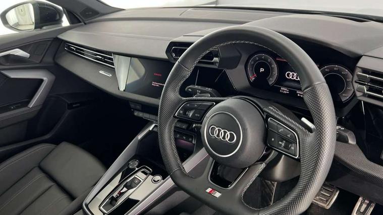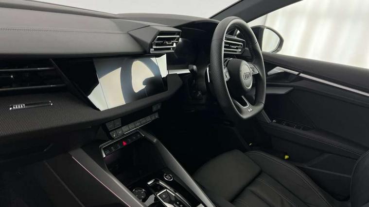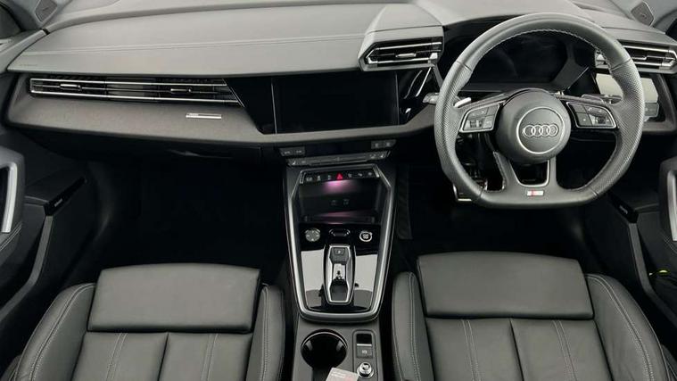 Adjustable speed limiter, Audi drive select, Audi smartphone interface with app store includes wireless Apple carplay, Android auto and Amazon alexa integration, Audi virtual cockpit plus - 12.3" full HD resolution dynamic digital instrument cluster, Automatic start/stop system with recuperation, Bluetooth interface, Camera based traffic sign recognition, Collision avoidance assistant, Cruise control, Distraction and Fatigue warning, e-Call (emergency call), Electromechanical power speed sensitive steering, Lane departure warning system, MMI Navigation Plus with high resolution 10.1" colour touch screen display, Park Assist with parking system Plus, Service indicator, Trip computer, Voice control system with natural language interaction, Sports suspension, Audi Phonebox light with wireless charging, Audi sound system - 10 loudspeakers including centre loudspeaker and subwoofer, DAB Digital radio, USB ports with charging function in the rear, Acoustic glass windscreen, Anthracite grey Audi rings (front and rear), Audi beam uses LEDs to project the Audi logo onto the ground as you exit your A3, Auto dimming frameless rear view mirror, Black accents front and rear bumpers, Black accents in the area of the Audi single frame grille, Black accents window trims strips, Electrically adjustable/heated/folding/auto dimming door mirrors with integrated LED indications + kerb view function for passenger side, Exterior model badging, Front electric windows, Heat insulating glass windscreen, Illuminated door sills with aluminium inserts at the front with S logo, LED 3rd brake light, LED daytime running lights, LED headlights with LED rear lights and dynamic rear indicators, Light and rain sensors, Privacy glass - dark tinted rear window, rear door and side windows, Rear boot, Rear electric windows, Rear side wing doors, 12V socket and storage compartment in front centre console, 3 seat bench in 2nd row, 3 spoke flat bottomed leather multifunction sport steering wheel with gear shift paddles, 3-zone deluxe automatic air conditioning, 4 way electrically adjustable lumbar support for driver and front passenger, 40/20/40 split folding rear seat bench, Black cloth headlining, Front and rear centre armrest in artificial leather, Front and rear centre armrest in artificial leather with contrasting stitching on armrests and instrument panel, Front and rear headrests, Front/rear floor mats, Heated front seats, Height and reach adjustable steering wheel, Manual boot compartment lid, Manually adjustable front seats, Rear cup holders, S badging on the steering wheel, Seat side bolsters, Single front passenger seat, Stainless steel pedals and front footrest in black, Twin leather upholstery with front sports seats S embossed logo, Aluminium interior elements pack - A3, Multi-coloured LED interior lighting package - A3 Black Edition, 3x3 point rear seat belts, Driver and front passenger airbag with passenger airbag deactivation, Electronic Stabilisation Control (ESC) including ABS, ASR and EDL, First aid kit with warning triangle and 2 safety vests, Front side airbags with head airbags and interaction airbag, Hill hold assist, Pre-sense front with pedestrian and cyclist detection, Seatbelt monitoring, Tyre pressure loss indicator, Anti theft alarm, Anti-theft wheel bolts, Electronically operated child locks, Immobiliser, Remote central locking with safelock, Inlays in black Impressum woven textile,