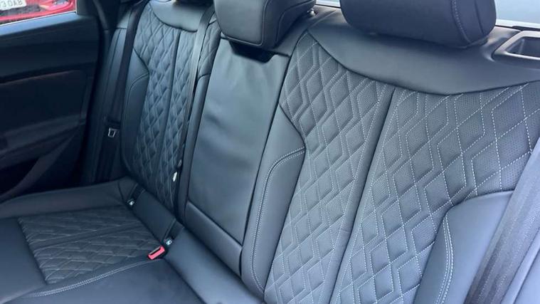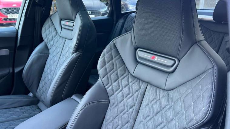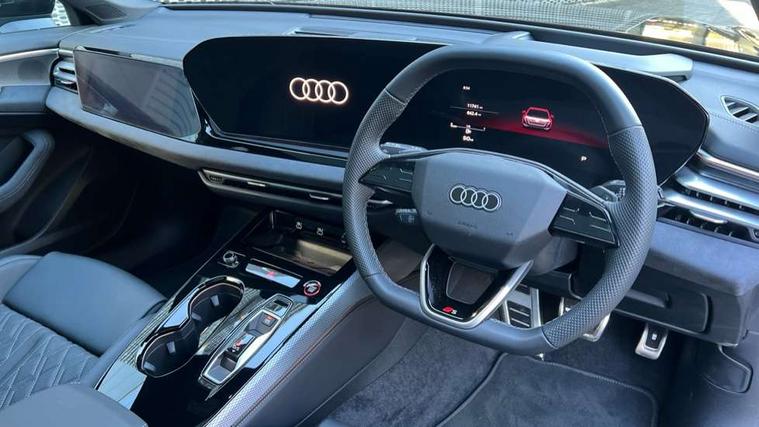 Adaptive cruise assist plus with steering intervention, Advanced driver attention and fatigue montior, Audi application store, Audi assistant, Audi connect emergency call and service, Audi drive select, Audi smartphone interface, Audi virtual cockpit plus with 11.9" OLED colour display, Automatic start/stop system with coasting functionality, Camera based traffic sign recognition, Garage door opener, Intersection assist, Lane change assistant with exit warning system, rear cross traffic alert and rear turn assist, Lane departure warning with emergency assist, MMI 10.9" front passenger touch display, MMI navigation plus with high resolution 14.5" OLED touchscreen colour display, Park assist plus, Parking system plus with 360 display, Progressive steering with servotronic, Swerve assist and turn assist, Top view camera, Traffic sign based speed limiter, Quattro with sport differential, S sports suspension with damper control lowered by 20mm, 2 USB-C ports in both the front and rear, DAB digital radio reception, Smartphone compartment with wireless charging, Aluminium window trims, Auto dimming rear view mirror, Black door handles, Black roof rails, Dark chrome-plated tailpipe trims, Digital OLED tail lights including communication light, Door mirrors - electrically adjustable, heated, folding and auto dimming on both sides, Front and rear electric windows, Front door sill trims with aluminium inlays, illuminated with 'S' logo, Headlight cleaning system, High beam assist, LED daytime running lights, LED third brake light, Matrix LED headlights with eight light signatures selectable via the MMI or the myAudi app, Panoramic glass roof with switchable transparency, Privacy glass, Rear and side windows with heat insulating glass, Rear side wing doors, Rear wash/wipe, Red S rhombus badging with S lettering on rear, S bumpers, radiator grille and diffuser in titanium matt black and diffuser insert in matt silver, White rhombus logo projection light in exterior mirrors, Windscreen with acoustic glazing, 3 rear headrests, 3 seat rear bench, 3 spoke leather steering wheel with multi-function buttons with touch control, flattened on top and bottom, with S badging and contrast stitching, 3-zone automatic climate control, 40:20:40 split folding rear seat bench with centre armrest and cup holders, Comfort front centre armrest, Electric steering wheel adjustment, Electrically adjustable front seats, Front and rear floor mats, Front sport seats plus with integrated headrest and S embossed logo, Headlining in black cloth, Heated front and outer rear seats, Heated steering wheel, i-Size child seat mounting on the front passenger side and outer rear seats, i-Size and top tether on the outer rear seats, Luggage compartment lid, electrically opening and closing, Memory function for driver seat, Pearl Nappa leather upholstery, Pneumatically adjustable lumbar support, Single front passenger seat, Stainless steel pedals and footrest, Steering wheel grips in perforated leather and shift paddles, Ventilation seat and massage function for the driver and front passenger, Black styling package plus - A5, Sound and vision pack - A5, 3x3 point rear seat belts, Acoustic vehicle alerting system, Convenience key with safelock, Driver airbag, Electric child safety locks, First aid kit with warning triangle and vests, Front emergency brake assist, Front passenger airbag, Front passenger airbag deactivation, Hill hold assist, Occupant detection in rear seat area, Proactive passenger protection system for front, sides and rear, Red brake calipers, Seat belt monitoring with rear seat occupant reminder, Side airbags in front and rear with head airbag system and front interaction airbag, Tyre pressure loss indicator, Anti theft alarm, Anti-theft wheel bolts, Keyless Go, Accent surfaces and control buttons in gloss black, Black dashboard with contrast stitching, Softwrap in Dinamica with contrast stitching, Upper and lower interior elements in dinamica microfiber, 20" 5 twin spoke design Audi Sport alloy wheels in metallic black and gloss turned finish, Tyre repair kit,