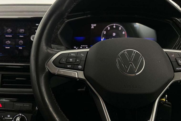 'Lights On' Reminder warning buzzer, Adaptive cruise control including front assist, forward collision warning, autonomous emergency braking, speed limiter, Blind spot monitoring, Bluetooth telephone and audio connection for compatible devices, Car information display, Digital cockpit, Driver alert system, eCall emergency call system, Lane assist, Low washer fluid warning light, Multifunction computer with visual gear change recommendation for fuel consumption, Operating permit alteration, Power assisted speed sensitive steering, Speedo, rev counter, electronic odometer, trip, service interval display, exterior temperature and fuel gauge, Stop/start system, Warning sound and light for doors and tailgate open, Warning sound and light for front seatbelts unfastened, We Connect Go Dongle, Wireless Car net app connect with Apple CarPlay, combined functionality of Apple CarPlay/Android Auto and MirrorLink, Battery regeneration during braking, Misfuel prevention device, 2x USB connection with USB charging sockets and in rear centre console, DAB Digital radio receiver, Diversity antenna for FM reception, Multi device interface (MDI) with USB connection, Music playback - MP3, WMA and AAC files, Premium USB cable for Apple or Android smartphone compatibility, Simultaneous pairing of 2 compatible mobile devices, Title and cover art display, Automatic hazard lights activation under emergency braking, Black door mirrors, Black roof rails, Body colour door handles, Body coloured bumpers, Dusk sensor + automatic driving lights, Electrically foldable, adjustable and heated door mirrors with reverse activated kerb view adjustment on passenger's side, Front and rear electric windows, Front fog lights with static cornering function, Galvanised body, Heated rear window, LED third brake light, Lower door sills and door pillars in black, Radiator grille with high gloss surface and chrome strip, Rear fog light on one side, reversing light on both sides, Rear lights incorporating LED technology, Rear side wing doors, Rear tinted glass 65% approx light absorbing from B pillar backwards, Rear window aerial, Rear windscreen washer and wiper with interval delay, Reflectors in all doors, Tailgate with integrated roof spoiler, Windscreen wipers/ intermittent wipe + 4 position delay, 12V Accessory socket in centre console, 3 rear head restraints and 3 rear three point seat belts with ECE label, 3 seat bench in 2nd row, 60/40 split folding rear seat backrest, Comfort front sport seats, Diag cloth upholstery, Drawer under drivers seat, Driver and front passenger sunvisor with vanity mirror, Driver's sunvisor with ticket holder, Dust and pollen filter, Front + rear carpet mats, Front and rear reading lights X 2, Front centre armrest with storage compartment, Front seat back storage pockets, Front seats with adjustable lumbar support, Glovebox, Heating and fresh air system with 4 stage blower, Height/reach adjust steering wheel, Instrument lighting white adjustable panel illumination, Interior light with delay, Isofix child seat preparation for 2 rear child seats, Luggage compartment cover, Luggage compartment lighting, Manual air conditioning, Moveable and foldable Rear bench seat, Single front passenger seat, Storage compartment in drivers and front passengers door, Three spoke multi-function leather trimmed steering wheel and gearknob, Variable boot floor, Anti-lock Braking System (ABS) with Hydraulic Brake Assist (HBA), Automatic post collision braking system, Driver and front passenger safety-optimised head restraints, Drivers and Front Passengers airbags with front passengers airbag deactivation switch, ESC with EDL, ASR, EDTC and trailer stabilisation function, Front and rear curtain airbags, Front disc brakes and rear drum brakes, Front seat side impact airbags, Height-adjustable front three-point seat belts with tensioners, Hill start assist, Pre crash preventive occupant protection, Rear door child safety locks, Rigid safety cell with front and rear crumple zones, Single torn horn, Tyre pressure loss indicator, Volkswagen roadside assistance, Alarm with interior protection and deactivation via infotainment system, Child security locks in rear doors, Electronic engine immobiliser, Remote tailgate unlocking using key fob, Decorative inserts transition high gloss black/platnium grey, 17" Manila black diamond turned surface alloy wheels + anti theft wheel bolts, Breakdown kit,