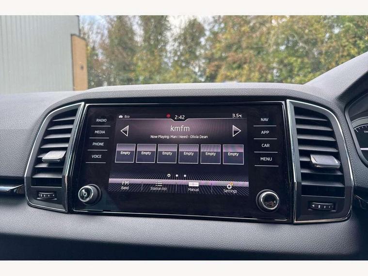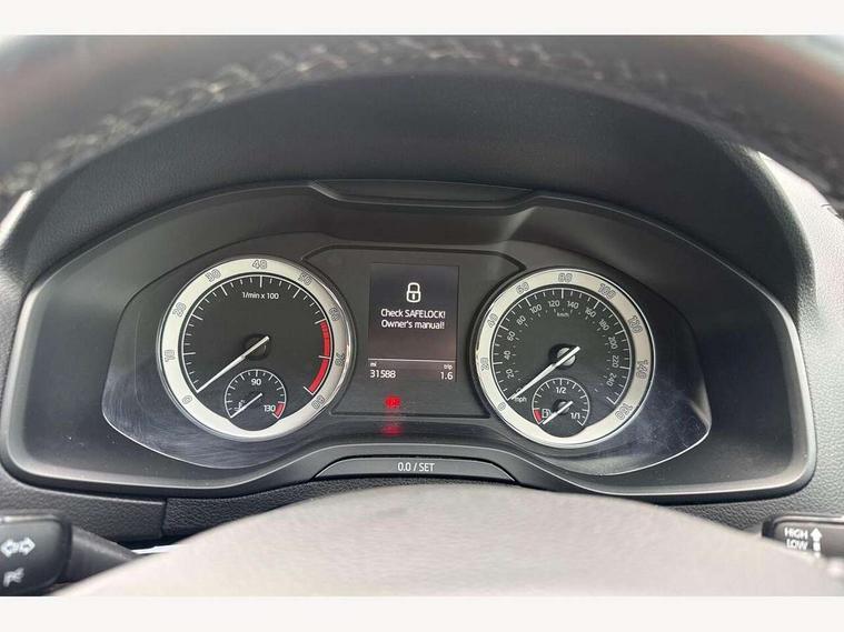 Drive mode selector, Driver alert system, Driver fatigue sensor, Driver profile selection, Electro-mechanical PAS, Front and rear parking sensors, Multifunction colour trip computer, Outside temperature gauge, Rear view camera, Service interval indicator, Start/stop system with regenerative braking, DAB radio with Bluetooth, SD card slot, USB connection, Acoustic glass, Aero front windscreen wipers with intermittent function, Automatic headlight control system, Body colour door mirrors and handles, Body coloured bumpers, Chrome outside aluminium bar around the window, Chrome roof rails, Electric front and rear windows with child proof lock, Full LED headlights + adaptive front light system + LED daytime running lights and front cornering fog lights, Headlight washers, Heated rear windscreen, LED rear lights with high functionality, Light assistant (coming/leaving home/tunnel light), Privacy glass, Safety reflectors on front doors, Third brake light, 1.5 litre bottle holders in driver and front passenger door panels, 12V socket in boot, 12v socket in front centre armrest with storage compartment and rear air vents, 2 Folding hooks and nets in boot, 2 Front readings lights for driver and passenger, 3 rear height adjustable headrests, 4 foldable roof handles with rear coat hooks, 4 lashing points on luggage floor, Backrest release, Cargo elements in boot, Chrome inner door handles, Driver and passenger seats height adjust, Dual zone climate control, Folding tables on the front seat backrests, Front seat and rear pockets, Height adjustable front three point seats belts with tensioners, Height/reach adjust steering wheel, Ice scraper, Illuminated and cooled glovebox, Illuminated luggage compartment, Isofix child seat preparation outer rear, Net programme in boot, Pen holder, Pollen filter, Rear boot cover, Rear reading lights, Rear seats fixed folding and divided 60:40, Removable LED torch in the boot, Retractable parcel shelf attachable to tailgate, Safety vest holder, Storage box in upper central dashboard closed, Storage compartment below the passenger seat, Storage net on centre console passenger side, Sunglasses storage compartment, Sunvisors with illuminated vanity mirrors, Textile floor mats, Umbrella under passenger seat, VarioFlex seats with retractable parcel shelf, Airbags - Front side, head, knee and curtain, Automatic door unlocking in case of crash, Automatic fuel cut off in case of crash, Driver airbag, Electronic parking brake with auto hold function, Emergency rear braking signal, ESC including ABS, MSR, ASR, EDS, HBA, DSR, RBS, MKB and traction control, Front assist radar scanning of the space in front of the car with automatic braking, Hill hold control, Passenger airbag with switch-off function, Pedestrian monitor, Seatbelt reminder signalisation and pretensioner for all seats, Three point seatbelts rear, Two tone horn, Tyre pressure display, Tyre pressure monitor, Alarm with interior monitoring, back up horn and tilt sensor with safe function, Electronic engine immobiliser, Keyless entry and keyless start with safe system, Remote central locking with 2 remote folding keys, Chrome framed air vents, Storage on wheel cover,