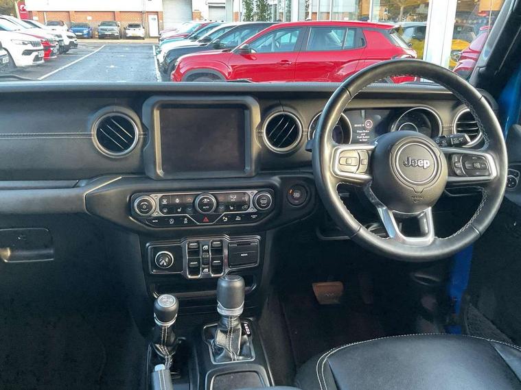 Active speed limiting device, Apple car play/Android Auto, Connected services (e-call), Emergency response assistance system, Exterior temperature gauge, Instrument cluster with 7" colour TFT Display, Jeep mapcare, Parksense rear park assist system, Parkview rear backup camera, Power Steering, Select speed control, Trip computer, Uconnect 8.4" with navigation with DAB+ Radio, Uconnect live - Europe, Vehicle information centre, Anti-spin differential rear axle, Conventional differential front axle with disconnect, Conventional differential rear axle, Gasoline particulate filter, Global telematics box module (TBM), Steering wheel mounted audio controls, USB port, Auto dimming rear view mirror, Auto high beam, Automatic headlights, Black door mirrors, Black front and rear bumpers, Black fuel filler door, Body colour fender flares, Centre high mounted stop light, Deep tint sunscreen glass, Exhaust system module, Exhaust system module Ii, Halogen headlamps, Headlamp leveling system, Headlamp off time delay, Incandescent tail lamps, Overland badge, Power adjustable heated door mirrors, Power front windows with one touch, Rear boot, Rear fog lamps, Rear side wing doors, Side repeater flashers, Tow hooks, Tubular side steps, Windshield wipers with intermittent and variable, Wrangler decal, 12V auxiliary power outlet in centre console, 12V auxiliary power outlet in rear, 2 way manual adjustable drivers lumbar support, 3 seat bench in 2nd row, 4 way manually adjustable passenger seat with height, reach, tilt, backrest and headrest, 6 way manually adjustable drivers seat, 60/40 split folding rear seat, Bright interior accents, Centre console storage, Climate control, Front centre armrest, Front headrests, Headliner parts module, Illuminated front cupholders, Isofix child seat preparation, Leather wrapped steering wheel, LED ambient lighting, Lockable glovebox, Rear compartment storage system, Rear headrests, Rear luggage cover, Reclining front seats, Single front passenger seat, Storage nets, Storage trays, Sunvisors with illuminated vanity mirrors, Tilt adjustable steering column, Premium LED lighting pack - Wrangler, Safety pack with Headlamp Control - Wrangler, Smoker's pack - Wrangler, Technology group II pack - Wrangler, 3x3 point rear seatbelts, ABS, Driver / front passenger multi stage airbags, Electronic stability control, Front side airbags, Hill start assist, Rear door child safety locks, Rear passenger seatbelt alert, Selectable tyre fill alert, Traction control, Tyre pressure monitoring warning lamp, Vehicle Dynamics Control System (VDC), Keyless entry, Keyless go with 'push to start' button, Locking fuel filler cap, Locking wheel nuts, Premium security alarm, Thatcham security equipment, Premium door trim panel, 18" Aluminium diamond cut alloy wheels, All season tyres, Full size spare wheel, Vinyl spare wheel Cover,