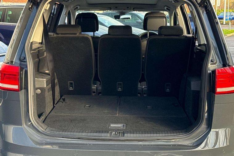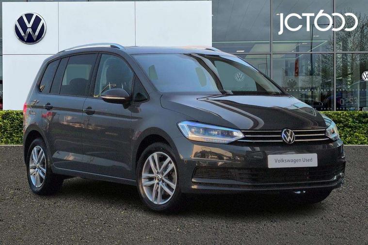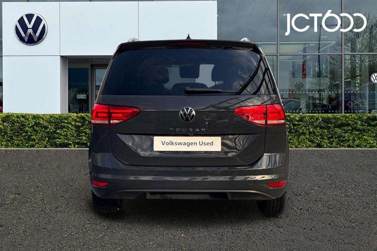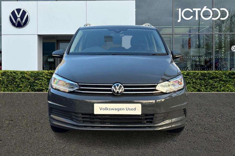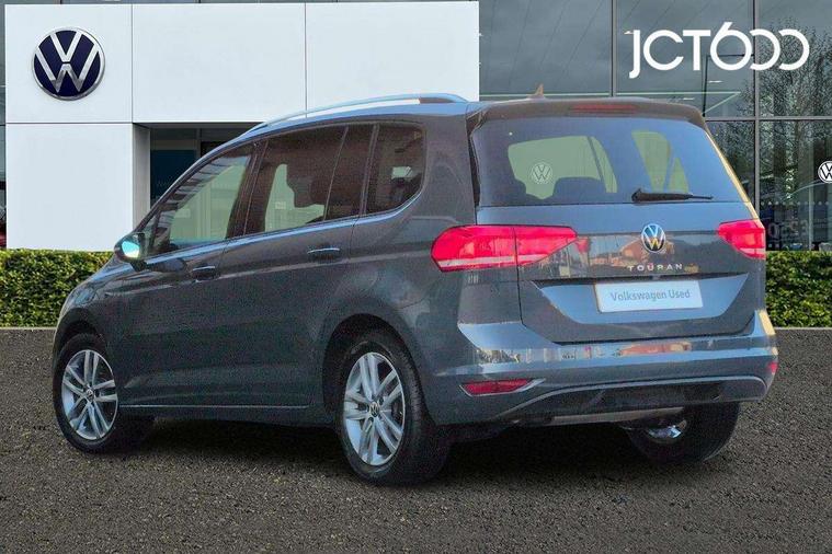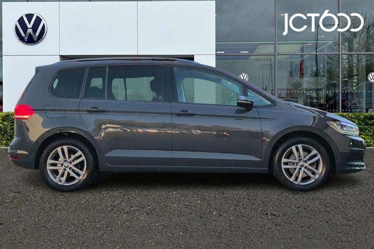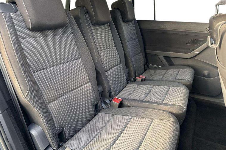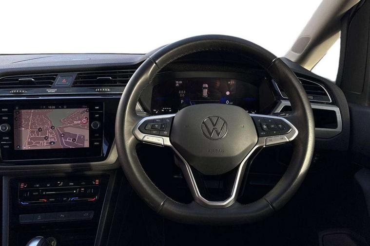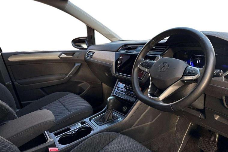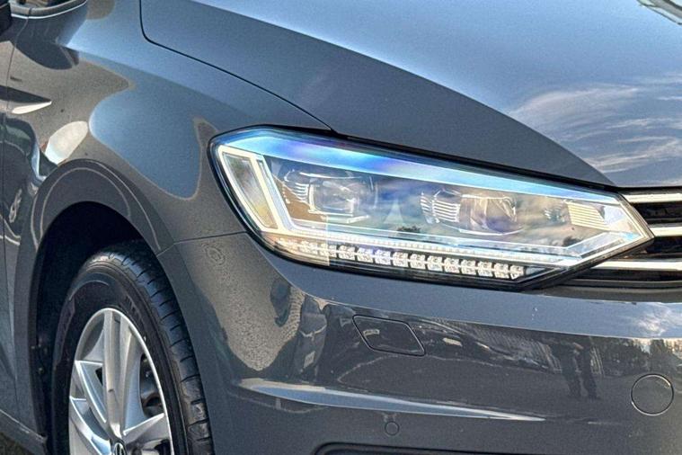 Adaptive cruise control, Audible lights on warning, Car information display, Digital cockpit - 8" display screen, Discover media navigation touchscreen navigation/radio system with streaming and internet, Driver alert system, Driver profile selection, Dynamic road sign display, Electric tailgate, Electronic odometer, Emergency services call system, Extended, crash-active and proactive Pedestrian and cyclist monitoring, External temperature gauge, Lane change system side assist and rear traffic alert, Lane keep assist, Misfuelling protection device, Mobile pairing with SMS function, Mobile phone interface with inductive charging, Rear view camera displayed via vehicles audio system display, Rev counter with fuel gauge, Side scan, Speed limiter, Speed sensitive power steering, Stop/start system, Think blue trainer driver tips and journey analysis, Trip and service interval display, We connect' and 'We connect plus' functionality, Petrol Particulate Filter, Rear stabiliser bar, XDS electronic differential lock, 4x20 watt output, 8 Speakers, Audio Connectivity System, DAB Digital radio, External USB-C data socket with increased charging performance - 2 USB sockets 45W, MP3/WMA compatability, SD card slot, Title and cover art display, USB connection, Aerial integrated into side window, Auto dimming door mirrors, on driver side, surround lighting and front passenger side mirror lowering function, Auto dimming rear view mirror, Automatic coming/leaving home lighting function, Body colour bumpers, Body colour door handles, Body colour door mirrors with integral indicators, Door mirrors with memory function, Dusk sensor + auto driving lights, Dynamic headlight range control with dynamic cornering light, Electric folding door mirrors, Electric heated + adjustable door mirrors, Electric, glass sliding/tilting panoramic sunroof including integrated roller blind and LED lighting around aperture, Front and rear electric windows, Fully galvanised body, Gloss black finish B pillar, Green tinted heat insulating glass, High level third brake light, IQ.Light - LED matrix headlamp with LED separate daytime running light and dynamic turn signal, Rain sensor, Rear fog lights, Rear side wing doors, Rear tinted glass from B-pillar backwards approx 65% tinted, Rear wash/wipe with intermittent wipe setting, Removable engine badge, Silver roof rails, Tailgate wiper- reverse gear activation, Twin chrome exhaust tailpipes, Volkswagen roundel, Windscreen wipers intermittent wipe, 12V power point for Row 2, 12V socket in luggage compartment, 2 individual fold flat 3rd row seats, 2 three point seatbelts in 3rd row, 2nd row centre armrest, 2nd row centre seat converts into table, 3 single slide/fold/removable 2nd row seats, 3 spoke steering wheel, 3x3 point seatbelts on 2nd row with height adjust on outer seats, 4 boot load lashing points, 4 way adjustable front head restraints, 5 headrests, Activated charcoal canister for intensified evaporation system, Air care climatronic 3 zone air conditioning system with rear air conditioning control panel, Chrome plated radiator grille inserts, air vent surrounds and light switch surrounds, Driver and front passenger under seat drawer, Dust/pollen filters, Foldable front passenger seat backrest with load through function, Front and rear reading lights X 2, Front centre armrest with storage compartment, Front comfort seats with lumbar support, Front cupholders x 2, Front passenger seat height adjust, Front seat storage pockets, Front seatback folding tables, Height adjustable driver's seat, Height/reach adjust steering wheel, Illuminated glovebox, Instrument lighting white adjustable panel illumination with red night time illumination, Interior light with delay, Isofix on 2nd row outer seats, Isofix on 3rd row seats, Large storage compartment in roof console, Lasano cloth upholstery, Leather multifunction steering wheel with gear knob, Leatherette on rear of front seats, Low tunnel 2nd row seat, Luggage compartment lighting, Media box in dashboard on passenger side, Multi storage in passenger/luggage areas, Multi-function centre console with storage facilities, Retractable luggage cover, Split folding rear seat backrests, Storage bins on all doors, Sun visors with illuminated vanity mirrors, Family Pack - Touran, Winter pack - Touran, 3 point height adjustable front seatbelts, Auto hold function, Automatic post collision braking system, Door open warning reflectors, Driver/Front Passenger airbags, Drivers knee airbag, EDL + ASR, Electronic parking brake, Energy recovery system, ESC with ABS, First aid kit, Front and rear (row 2) curtain airbags, Front assist with autonomous emergency braking, Front seat side impact airbags, Front seatbelt pretensioners, Front/rear disc brakes, Hill hold control, Hydraulic Brake Assist (HBA), Loose wheel warning function, Passenger airbag deactivation system, Pre crash preventive occupant protection, Proactive passenger protection system with front and side assist, Rear child proof door locks, Road sign recognition, Seatbelt warning lamp and buzzer, Traction control, Two tone horn, Warning triangle, Alarm with remote central locking and interior protection, Electronic engine immobiliser, Keyless Access Keyless locking and starting system with SAFELOCK, New brushed design decorative inserts in dash and front doors, 17" Salvador alloy wheels with anti-theft wheel bolts, 215/55 R17 self sealing tyres with low rolling resistance,