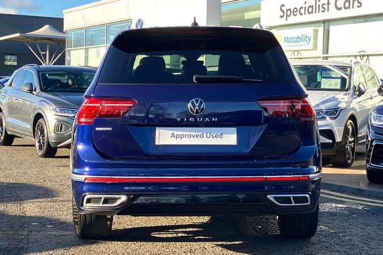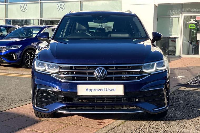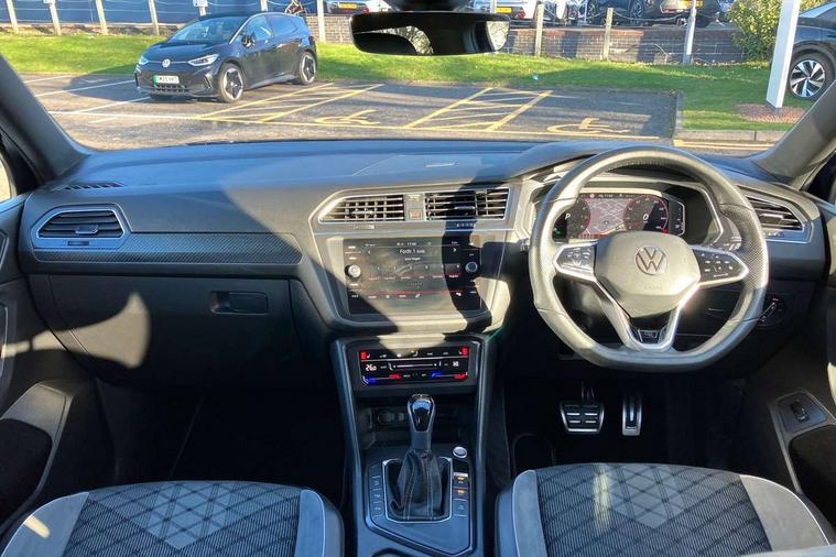 Adaptive cruise control, App-Connect, Digital cockpit pro, Driver alert system, Driver profile selection, Dynamic road sign display, eCall emergency call service, Electric boot lid, Lane change system side assist and rear traffic alert, Lane keeping system Lane Assist, Mobile phone interface comfort with inductive charging feature, Multifunction front facing camera, Progressive steering, Speedo and rev counter, electronic odometer, trip, service interval display and exterior temperature gauge, Front wheel drive, Start-stop system with battery regeneration (recuperation - energy recovery during braking), 2 USB-C ports in the front, 1 USB-C charging socket on the center console in the rear, 8 Speakers, DAB Digital radio, Diversity antenna for FM reception, Radio, Auto dimming interior rear view mirror, Automatic headlight control system, Chrome mouldings on side window, Coming/leaving home lighting function, Dark red rear combination lamps in LED technology, Exterior badge deletion, Exterior mirror housings painted in silver, Headlight range control, Heated windscreen washer jets, LED headlamps with LED separate signature running light and dynamic cornering light, Poor weather light and cornering light, Rain sensor, Rear fog light, Rear side wing doors, Rear spoiler in R style, Rear wiper, Silver roof rails, Third brake light, 12-volt outlet in centre console rear and luggage compartment, 12V socket in centre console, 3 head restraints in rear, 3 individual folding 2nd row seats, 3rd row 2 individual seats, Air Care Climatronic 3 zone automatic climate control with enhanced air filter and controls in the rear, Black roof lining, Door and side trim panel with leatherette insert, Drawers under front seats, Driver and front passenger seat height adjustment, Foldable front passenger seat backrest, Front + rear carpet mats, Front centre armrest, Front footwell illumination, Heated front seats, Heated leather wrapped multifunction sports steering wheel with touch control and shift paddles, Illuminated scuff plates, ISOFIX anchorage points for mounting 2 child seats on rear seats and i-Size child seats, Leather gearshift handle, LED interior light with switch off delay/dimmer and 2 front/rear LED reading lights, Stainless steel pedals, Sun visors with illuminated vanity mirrors, Ambience pack - Tiguan Allspace R Line, Driver assistance plus package - Tiguan Allspace, 3 point seat belt for centre rear seat, 3 rear three point seatbelts, ABS+EBD+Brake assist, Driver and front passenger safety-optimised head restraints, Driver's and front passenger's airbag with front passenger's airbag deactivation switch, Electronic parking brake, Electronic Stability Control (ESC) inc EDL (Electronic Differential Lock) and ASR (Traction Control), Height adjustable front 3 point seatbelts + pretensioners, Manual rear child locks, Pedestrian monitoring, PreCrash preventive occupant protection Front and rear, Rear disc brakes, Side airbag in front and rear with curtain airbag, Two tone horn, Warning buzzer for seatbelts if unfastened, Anti theft alarm system with interior monitoring, backup horn and towing protection, Anti-theft wheel bolts, Electronic steering lock, Remote central locking with 2 remote folding keys,