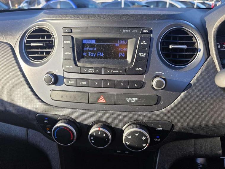 Bluetooth system, PAS, Trip computer, Vehicle Stability Control (VSC), 4 speakers, DAB Digital radio, RDS radio with MP3 player, Steering wheel mounted controls, USB/aux input socket, Black finish on B pillars, Body colour door handles, Body coloured bumpers, Body coloured door mirrors, Daytime running lights, Electric front windows, Electric rear windows, Electrically adjustable and heated door mirrors, Front intermittent wash wipers, Rear spoiler, Rear wiper, 12v power outlet - front, 60/40 split folding flat to floor rear seats, Air conditioning, Cloth upholstery, Courtesy lights, Driver + passenger vanity mirrors, Driver's seat height adjustment, Driver/passenger sunvisors with ticket holders, Front and rear bottle holders, Front door pockets, Front/rear adjustable head restraints, Height adjustable steering column, Isofix child seat preparation, Leather gearknob, Leather steering wheel, Luggage compartment lighting, Rear door pockets, 3x3 point rear seatbelts, ABS/EBD, Brake assist function, Childproof rear door locks, Curtain airbags, Driver/Front Passenger airbags, Electronic stability control, Front and rear seatbelt reminder, Front seatbelt pretensioners, Front side airbags, Passenger airbag deactivate switch, Traction control, Tyre pressure monitoring system, Immobiliser, Perimeter alarm, Remote central locking, Speed sensitive auto door locking, 14" steel wheels, Space saver spare wheel,