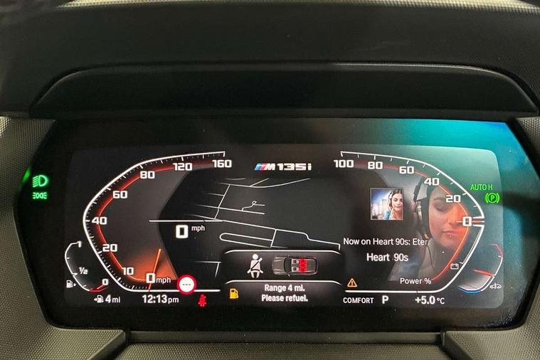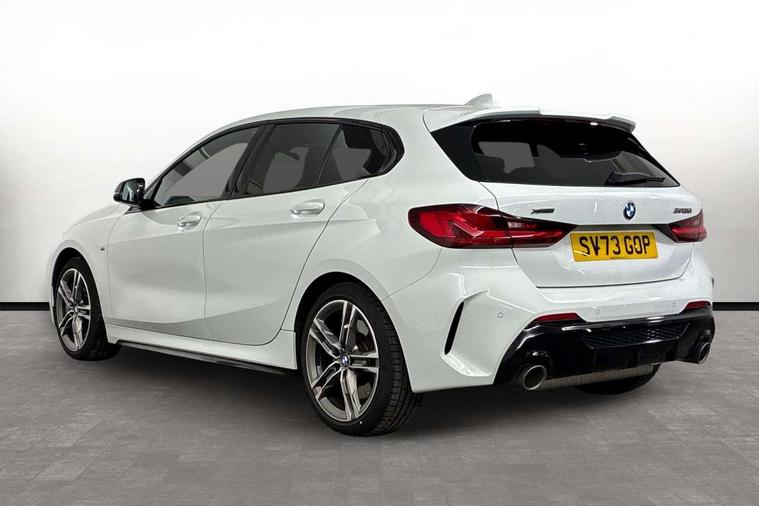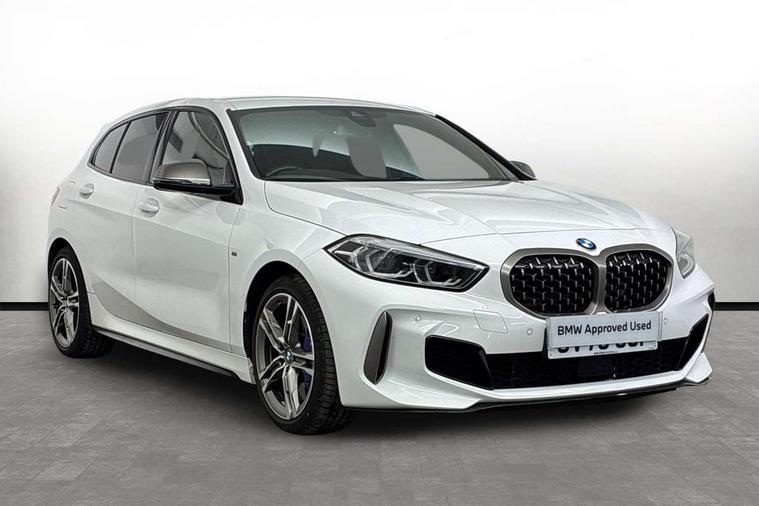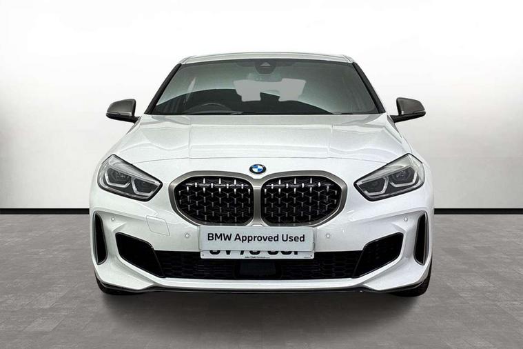 Active guard plus, Attentiveness assist, BMW ConnectedDrive online services, BMW Teleservices, Check Control warning system for monitoring of lights and door/luggage compartment open warning, Cruise control with speed limiter, Eco pro mode, Electric power steering, Electro hydraulically controlled multi-plate clutch transfers drive to rear axle and with power take-off device located on the front differential., Energy efficient operating strategy, Front axle single joint with specific axle kinematics to minimise drive influences on steering + provide increased rigidity agile driving behaviour, Gearshift time display in manual mode, Integrated owners handbook, Lane departure warning system, M Sports steering with M135i xDrive specific settings, Oil sensor for level and grade, On board computer, Optimum shift indicator, Personal Profile, Pull away assistant, Rigidly mounted rear subframe - Multi link construction with separate spring / damper configuration and excellent driving characteristics, Speed limit Info including no-overtaking indicator, Sporty fast gear shifting in sport mode, Aluminium lightweight construction, Anti roll bar front and rear, Balancer shaft, Double VANOS, Drive Performance Control, Eight speed sport automatic transmission with gearshift paddle switches, Electronic differential lock, Electronic selector lever, Engine cover with M performance designation, High precision injection, Larger fuel tank capacity (50 litres), Launch control, M135i specific heavily de-throttled engine intake air guide, M135i specific high-performance cooling package, M135i specific larger turbocharger with integrated divert-air valve, Petrol Particulate Filter, Twin tube gas filled shock absorbers with degressive characteristic curve, VALVETRONIC engine management, Variable, stepless and infinitely adjustable distribution of drive torque between the front and rear axles, xDrive intelligent all wheel drive with M135i specific reinforced components, DAB Digital radio, Auto dimming rear view mirror, Automatic headlight beam throw control, Automatic windscreen wipers and automatic headlight, Body colour door handles, Body colour roof trims, Cerium grey exterior mirror caps, Direction indicator side lights in exterior mirrors, Electrically adjustable exterior mirror with mirror adjustment switch on drivers armrest and aspheric on driver side, convex on passenger side, Exhaust tailpipe, Cerium Grey with bevelled finish - twin, round 100mm, left and right split, Fading support, Folding side mirrors with auto dimming/folding wing mirrors with auto dimming, Follow me home headlights, Front and rear bumper system with replaceable deformation elements, Front and rear electric windows with open and close fingertip control, anti trap facility and comfort closing, Front door sill finishers with M135i designation, Green tinted heat protection glazing, High gloss shadowline window frame, Recess cover mirror frames and B/C pillar embelisher trim, High level third brake light, Integrated front windscreen with washer jets, Kidney grille frame in Cerium Grey with Mesh design, LED daytime running lights, LED eyebrow turn indicators, Lightweight engineering, M logo designation side in cerium grey, M Performance exhaust system with valve control and minimised exhaust back pressure, M Performance specific setup, M Sport spoiler, Matt black air guide grilles, Matt black wheel arch trim, Model designation on electric bootlid includes xDrive designation for M135i xDrive, Nearside reverse light in rear light cluster, Preparation for high beam assistant, Rear fog lights, Rear side wing doors, Rear window wiper, Reinforced crank drive, new pistons and adapted con rods, Shark fin antenna, Trailer stabilisation logic, Visible VIN plate, Welcome lighting, 12V power socket in front centre console with blanking plug, 3 rear seat head restraints, 3 seat bench in 2nd row, 3 spoke sports leather steering wheel with black leather and stitching, pearl chrome decorative finish, specific M Badge, Anthracite headlining, Black boot net with lashing eyes, Cargo function on 2nd seat row, Child seat ISOFIX attachment for two outer rear seats and front passenger seat with anchorage points, Conditioned based service, Driver and front passenger backrest net on rear, Driver and front passenger seat heating, Driver side folding compartment in instrument panel, Folding rear clothes hook, Four grab handles integrated in roof lining, Front and rear door pockets with bottle holders, Front and rear side armrest integrated into door trim, Front armrest, Front M sports seats, Glove compartment, Height adjustable front head restraints, Luggage compartment for bag hooks on left and right, foldable luggage compartment liner and four lashing eyelets, Manual adjust steering wheel, Multi-function controls for steering wheel, Single front passenger seat, Storage compartment in centre console, Storage compartment in luggage compartment, Stowage of the parcel shelf in luggage compartment trim, Sun visors with vanity mirrors and insert tab, Two front centre console cupholders, Two zone automatic air conditioning, Type C two USB ports in rear centre console, Velour floor mats, Additional interior lighting pack - 1 Series M135i, BMW live cockpit professional pack- 1 Series, Connected pack professional - 1 Series, Interior lights pack - 1 Series, M Sport exterior styling aerodynamics pack - 1 Series 135i, 2 tone horn, 3 point seatbelts on all seats, front pyrotechnic belt tensioners, stopper and belt force limiters, rear coded belt buckles, Airbags - Front driver/passenger, front and rear curtain head protection, front side, manual deactivation of front passenger airbag, Anti lock braking system (ABS) with brake assist, BMW emergency call, Brake drying, Braking readiness, Child proof locking system in rear door, City braking function, Comfort modes, Cornering brake control, Crash sensor activating of airbags, Unlocking doors, hazard warning lights, interior light
