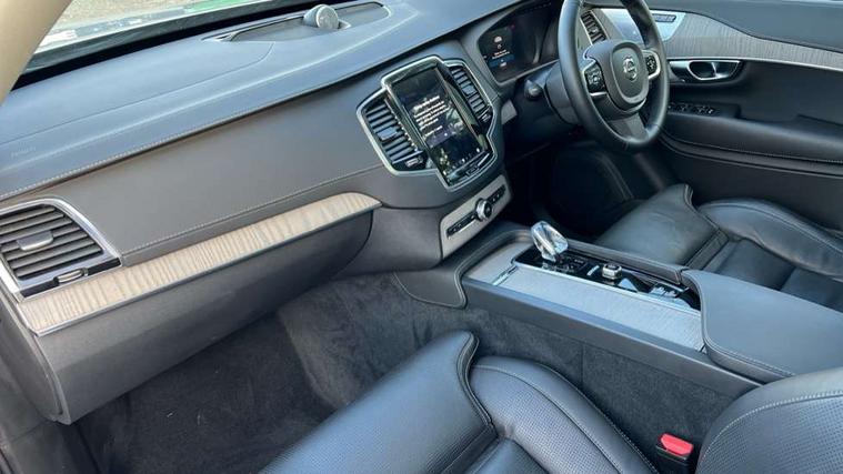 12.3" Progressive Driver Display, 360 degree surround view parking camera with side proximity sensors, 9" centre console portrait touch screen, Adjustable steering wheel force, Bluetooth hands free telephone connection, Driver alert control with lane keeping aid, Driver assistance (pilot assist and adaptive cruise control), Driver awareness - Blind spot information system with steer assist, cross traffic alert with autobrake and rear collision warning and mitigation, Emergency call service, Front and rear park assist, Google Automotive Services - Navigation with Voice recoginition and google assistant, Handsfree power tailgate opening and closing, Oncoming Lane Mitigation, Power operated tailgate, Service interval indicator, Speed limiter, Speed sensitive steering, Trip computer, Volvo on call, Wireless Mobile Phone Charger, 8 speed automatic transmission with start/stop + manual change functions, Active four C chassis - four corner adaptive dampers with electronic air suspension, DAB Radio (Digital Audio Broadcasting), Premium Sound by Bowers and Wilkins, dirac live, dolby pro logic II surround sound, 18 speakers/1400W output and fresh air subwoofer, Steering wheel remote infotainment controls, Active bending headlights with adaptive shadow technology, Adaptive brake lights with high level LED brake lights, Auto dimming interior + exterior mirrors, Auto folding and heated power door mirrors, Automatic headlight levelling system, Automatic LED Headlights + Active high beam incorporating daytime running lights, Body colour bumpers, Dark tinted windows - rear side windows and rear screen, Front and rear power windows, Headlight cleaning system, High gloss black door mirrors and window surround, High gloss black front and rear bumper deco, High gloss black mesh front grille with surround, Home safe and approach lighting, Integrated roof rails in high gloss black, LED front fog lights with cornering light function, Power glass tilt and slide panoramic sunroof with sun curtain, Puddle lights, Rain sensor with automatic windscreen wiper activation, Rear side wing doors, Rear wash/wipe with intermittent wipe setting, Roof antenna, Roof spoiler, Visible VIN plate, 12V socket front tunnel console, rear passenger compartment and cargo area, 2 seat bench in 3rd row, 2nd Row centre armrest with and cupholders, 3 seat bench in 2nd row, 4 zone electronic climate control with Clean zone air quality system + pollen filter, A-pillar parking ticket holder, Advanced interior air cleaner PM2.5, Air conditioning for 3rd row of seats, Ambient door and instrument panel lighting, B Pillar ventilation, Bright metal luggage threshold, Centre console cupholders and storage, Floor mats, Front and rear door pocket and front cupholder illumination, Front and rear reading lights, Theatre lighting and centre armrest storage illumination, Front footwell and side step illumination, Front headrests, Front seat cushion extensions, Heated front seats, Heated rear seats, Heated steering wheel, Height/reach adjustable steering column, Illuminated front and rear tread plates, Illuminated luggage compartment, Illuminated tailgate, Illuminated vanity mirrors + ticket holder, Illumination lockable glovebox compartment, Integrated sun curtains in rear doors, Isofix outer rear child seat preparation in 2nd row, Load protection net, Luggage compartment divider with grocery bag holder, Outboard armrest with cupholder and storage for third row passengers, Power driver seat with multi directional lumbar support and memory for seat and exterior mirrors, Power folding 2nd row headrests, Power passenger seat with multi directional lumbar support and memory, Rear footwell and side step illumination, Rear headrests, Semi automatic load cover, Single front passenger seat, Underfloor luggage compartment storage, 7 three point seatbelts, City safety with steering support includes pedestrian, cyclist and large animal detection and front collision warning with full auto brake, Drivers knee airbag, Dual stage driver/passenger airbags, First aid kit, Front seats SIPS airbags, Hill descent control - off drive mode, Hill start assist, IC (Inflatable Curtains) - Full Length, Passenger airbag cut-off switch, Power child locks on rear doors, Power parking brake with auto hold function, Road sign information display, Run off Road Mitigation, Run off Road Protection, Seatbelt reminder and pretensioners for all seats, SIPS (Side Impact Protection System), Slippery road and hazard light alert, Stability and Traction Control with Spin control, Engine Drag Control and Corner Traction Control, Tyre pressure monitoring system, Vehicle deceleration control with Anti-lock Brake System, Electronic Brake Distribution and Emergency Brake Assist, Warning triangle, WHIPS whiplash protection system - front, Anti-theft alarm including immobiliser/volume sensor + level sensor, Care key with user defined top speed, Key integrated remote control central locking + fuel flap with deadlocking system and auto open/close power windows, Keyless drive includes keyless entry and keyless start, Locking wheel nuts, Private locking for glovebox and tailgate, Tailored Instrument Panel and Door Tops with Contrast Stitching, Tempa spare wheel and jack,