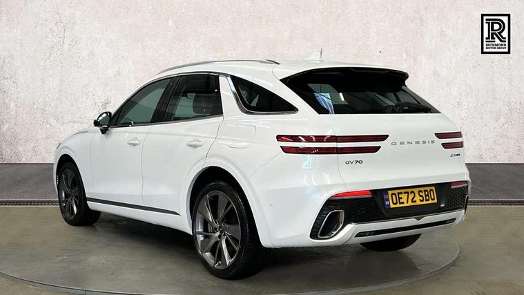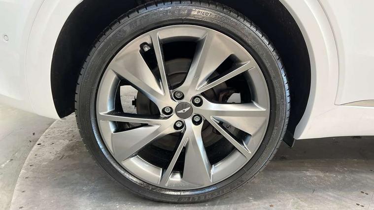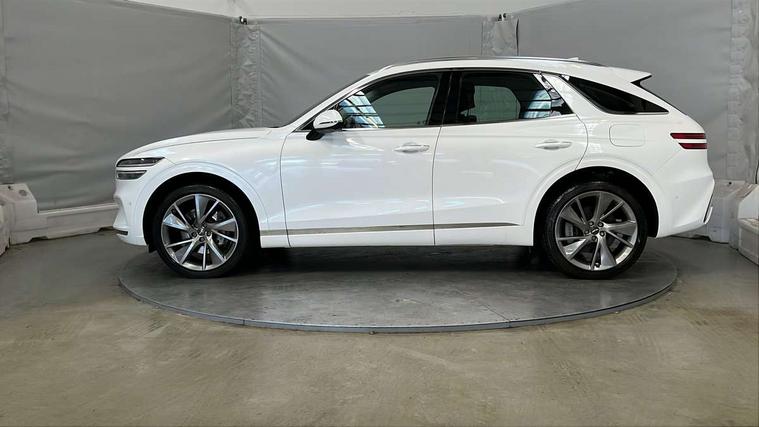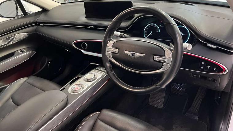 8" Dashboard cluster TFT display, Blind spot collision avoidance assist rear (BCA-R), Bluetooth connection with voice recognition, Drive mode select, E-call, Electric rear tailgate opening and height adjustable, Intelligent speed limit assist (ISLA), Lane Following Assist (LFA), Lane keeping assist (LKA), Lighting backup guidelines, Manual speed limit assist (MSLA), PAS, Rear parking sensors with button, Rear view camera with dynamic guidelines on screen, SCC smart cruise control with stop and start, Preview electronically controlled suspension, 14.5" Navi screen + DAB radio + Phone mirroring + Genesis connected, 2 port USB front charger console, 2 USB rear, Steering wheel audio remote control, Acoustic windshield film, Automatic headlights with dusk sensor, Automatic window defogger, Body coloured bumpers, Dual front LED low and high projection headlamps with high beam, Electrochromic inside rear view mirror, Electrochromic outside rear view mirrors, Laminated front side glass, LED daytime running lights, LED rear combination lamps, LED rear fog lamps, LED rear stop lamp, Outside door handles chrome coating, Outside electrical adjustment and heated rear mirror, Outside electrical folding rear mirror, Puddle lamps with logo, Rain sensor, Rear side wing doors, Rear wash/wipe, Standard appearance, Standard rear side backlight glass, 2 way electric cushion tilt up for driver and passenger, 2 way electric height adjust driver's seat, 2 way electric height adjust front passenger seat, 2nd row heating floor output, 3 seat bench in 2nd row, 3 zone auto air conditioning and temperature control in rear, 4 way electric driver lumbar support, 4 way electric passenger lumbar support, 4 way electrically adjustable driver and passenger seat with walk-in device, 4 way manual headrest adjust for front seats, 60:40 split back folding rear seats, Aluminium interior garnish, Ambient lighting, Console storage box, Console ventilation duct, Cup holder at centre armrest, Front air condition with dual zone adjustment, Heated steering wheel, Leather steering wheel, Leatherette console box, Lever type paddle shifter, Memory function for driver seat, Power outlet for rear (lower centre console), Power outlet for trunk, Power tilt telescopic steering wheel with memory seat, Premium air filter, Rear headrests, Rear luggage cover, Single front passenger seat, Trailer pack - GV70, 3x3 point rear seat belts, ABS + ESC + DBC + HAC + TSA (Trailer Stability Assist) + MCB (Multi Collision Brake), Driver and passenger airbag, Driver knee airbag, Electronic parking brake with auto hold, FCA - J Forward collision avoidance system with junction and crossing, Forward collision avoidance system (car/pedestrian/bicycle), Front brake ventilated disc 360mm, Front center side airbags, Front thorax and pelvis + curtain airbags, ISOFIX rear child anchor with upper and lower, Rear brake ventilated disc 345mm, Rear seat alert without sensors, Tyre pressure monitoring system, Central door lock driver's and passenger's control, Immobiliser, Manual child lock + Deadlock + Cat 1 alarm, Smart key/button start, Leatherette dashboard, 21" Dark sputtering design A alloy wheels, Michelin tyres, Space saver spare wheel, Summer tyres pilot sport 4,