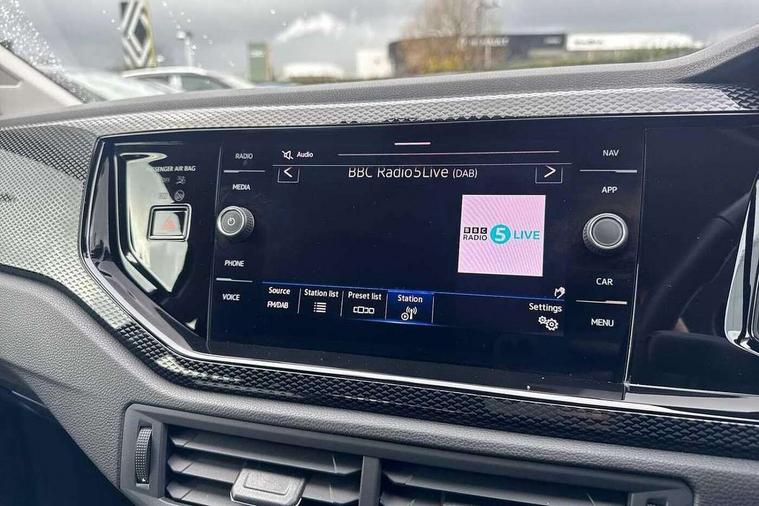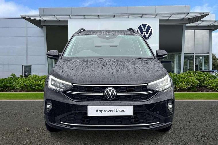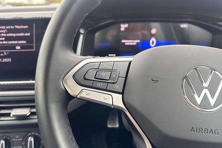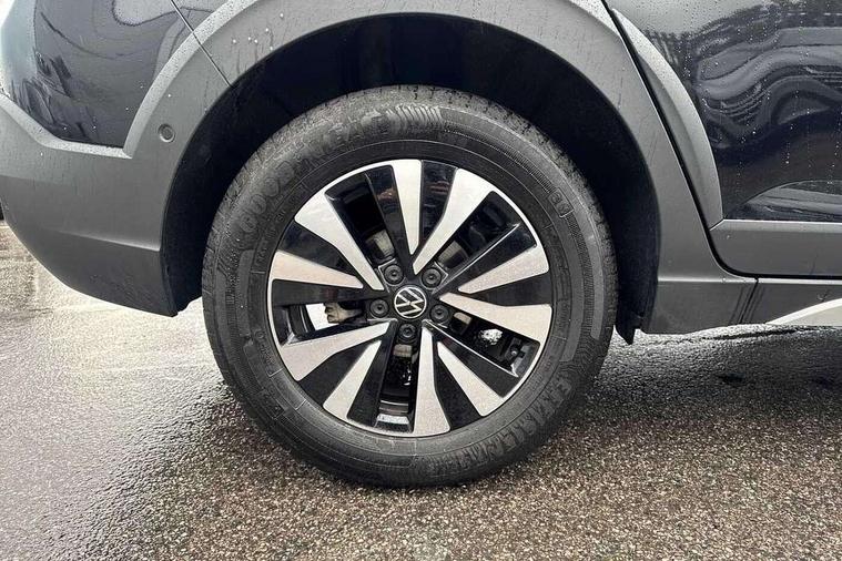 Adaptive cruise control, Advanced driver attention and drowsiness monitor, Dynamic road sign display, e-Call (emergency call), Power Steering, Travel assist including emergency assist, Washer fluid level indicator, Wireless Charging including Bluetooth, Start-stop system with battery regeneration (recuperation - energy recovery during braking), WeConnect plus, Ambient lighting with logo projection, Aspherical driver's exterior mirror, Auto headlights, Body coloured bumpers, Body coloured exterior mirror housings and door handles, Electric windows, External USB type C socket and charging sockets, Heat insulating glass windscreen, LED rear combination lamp, LED third brake light, Left convex exterior mirror, Power folding adjustable/heated exterior mirrors and front passenger exterior mirror lowering function, Rear fog light on one side, reversing light on both sides, Rear side wing doors, Rear wash/wipe with intermittent wipe setting, 'Slash/ Austin' Cloth upholstery, 12V socket in centre console, 2 front reading lights, 3 rear head restraints, 3 seat bench in 2nd row, Black carpets, Child seat anchor for child seat system i-Size, 2x top tether and child seat anchor in front on front passenger side, Door and side trim panels in titan black, Driver and front passenger seat height adjustment, Front centre armrest, Height and reach adjustable steering wheel, Leather trimmed gear knob, Leather wrapped multifunction steering wheel with paddle shift, Luggage compartment floor, Luggage compartment light, Lumbar support for driver's and front passengers seat, Seat covers in titanium black, Single front passenger seat, Split folding backrest with centre armrest and unsplit rear seat bench, Storage compartment under front seats, Sun visors with illuminated vanity mirrors, Chrome Package - Taigo, Drivers assistance pack - Taigo, Light and Sight pack including High beam assist - Taigo, 2 x 3-point seatbelts/outer rear seats with ECE label, 3-point seat belts in front with pretensioner and height adjustment, 3-point seatbelt for centre rear seat, Adaptive driver and front passenger airbags with passenger airbag deactivation function, Driver and front passenger safety-optimised head restraints, Electronic stability control, Extended and predictive pedestrian/ cyclist protection, Front and rear disc brakes, Front curtain and side airbags with center airbag, Hill start assist, Manual rear child locks, Single tone horn, Tyre pressure loss indicator, Anti-theft alarm system with interior monitoring, backup horn, and towing protection, Lava stone black gloss/matt decorative inserts in dash and front door panels, Low rolling resistance tyres,