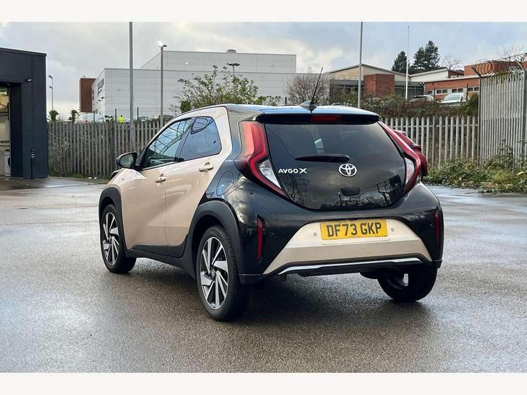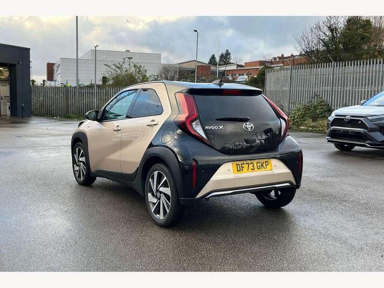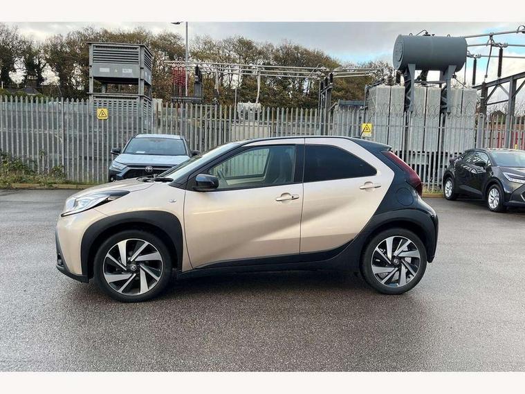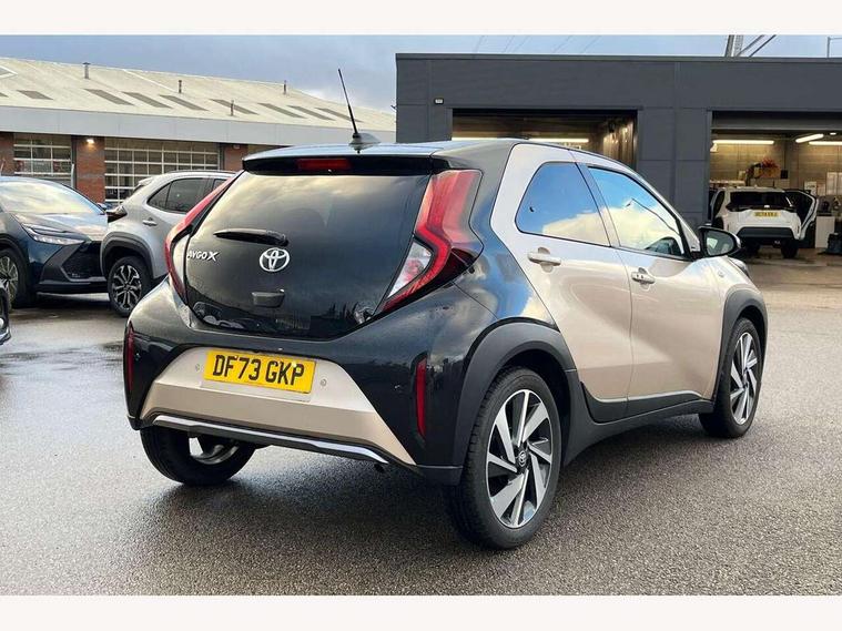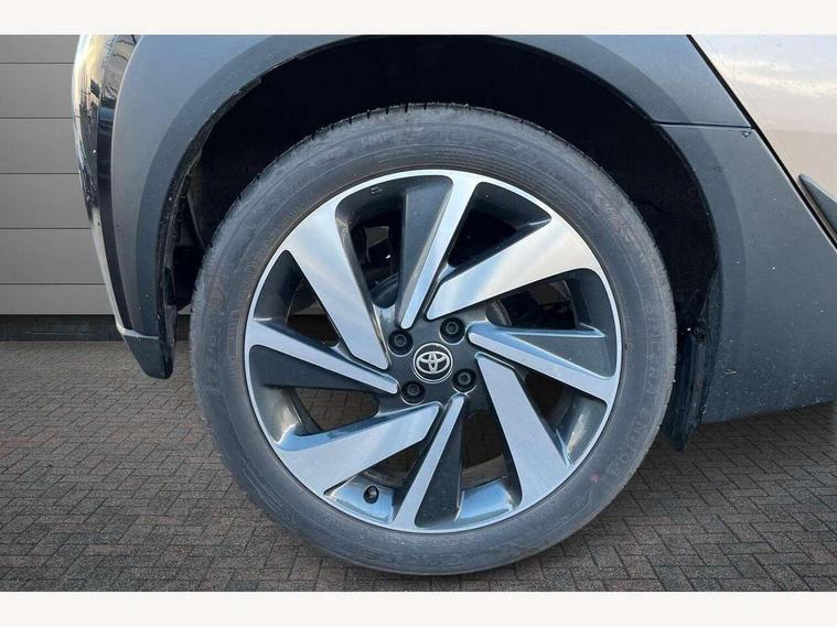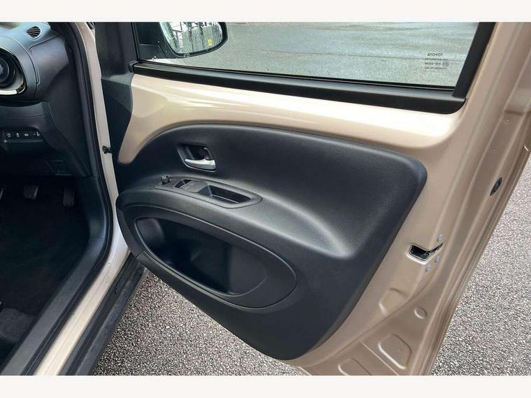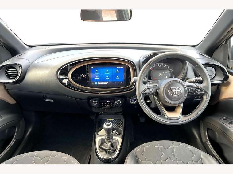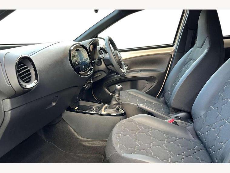 4.2" TFT colour screen, Adjustable speed limiter, Analogue speedometer, Bluetooth connectivity, Digital tachograph, Driver attention alert system, eCall emergency call system, Electric power steering, Front and rear parking sensors with auto brake, Intersection turn assist, Key reminder warning, Noise reduction kit, Pre collision system with emergency steering assist, Remote boot door release on key, Reversing camera with static guide lines, Smart entry and push button start, Smart phone integration with Apple car play/Android Auto, Speed limit display, Start and stop, Wireless charger, Vehicle Stability Control (VSC), 10.5" HD multimedia display touch screen with Toyota smart connect, 4 speakers, DAB digital audio broadcast, USB connector, Auto headlights, Auto wipers, Automatic headlights cut-off, Automatic high beam On/Off switch, Bicycle towing hook, Black contrast roof, Black fog light surrounds, Black side protection mouldings, Black wheel arch mouldings, Body colour door handles, Body coloured front bumper, Boot door scuff plate, Eclipse black rear bumper, Electric heated door mirrors, Follow me home headlights, Front and rear underruns in silver, Front fog lights, Front power windows, Gloss black door mirrors, Gloss black upper front grille, Headlight cut-off reminder, LED daytime running lights guide, LED front light guide, LED High mounted stop lamp, LED projector headlights, Manual day/night rear view mirror, Manual headlight levelling, Pagoda roof, Power adjustable door mirrors, Power back door, Privacy glass, Rain sensor, Rear combination lights LED bulb type, Rear side wing doors, Rear windscreen defogger, Rear windscreen wiper, Remote hazard lights system, Short antenna, Variable intermittent windscreen wipers, 12v power outlet - front, 2 seat bench in 2nd row, 3 spoke leather steering wheel, 50/50 split folding rear seat, Adhesive roof headlining, Adjustable speed limiter switch on steering wheel, Audio and telephone switches on steering wheel, Auto air conditioning, Black roof lining, Body colour satin anodised insert on steering wheel, Boot light, Centre room light, Chrome interior door handles, Chrome surround on air conditioning buttons, Clean air filter, Console box storage, Floor mats, Front and rear cup holders, Front head rest deco art, Front head restraints, Height adjustable driver seat, Intelligent adaptive cruise control switch on steering wheel, ISOFIX child restraint system on rear seats, Lane departure alert switch on steering wheel, Leather gearshift knob, Light blue ambient lighting in centre console, Manual tilt steering wheel, Manually reclining and sliding driver seat, Manually reclining and sliding front passenger seat, Multimedia switches on steering wheel, Partial synthetic leather upholstery, Pollen filter, Rear door pockets, Rear head restraints, Satin silver insert on gear shift knob, Single compartment glovebox with lights, Single front passenger seat, Soft tonneau cover, Sun visors with mirror on driver and passenger side, Voice recognition switch on steering wheel, Toyota safety sense pack - Aygo X, Anti lock braking system + Electronic brake force distribution, Child safety door lock, Emergency brake light signal (EBS), Hill start assist control (HAC), Passenger airbag on/off switch, Seat belt reminder for front and rear seats, Supplement restraints system (SRS) - 6 airbags, Traction control, Tyre pressure warning system, Immobiliser, Remote power door locks, Black wheel centre caps, Tyre repair kit,