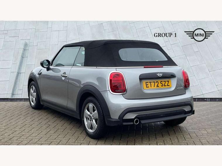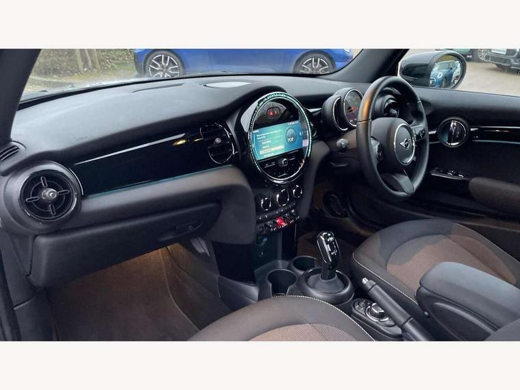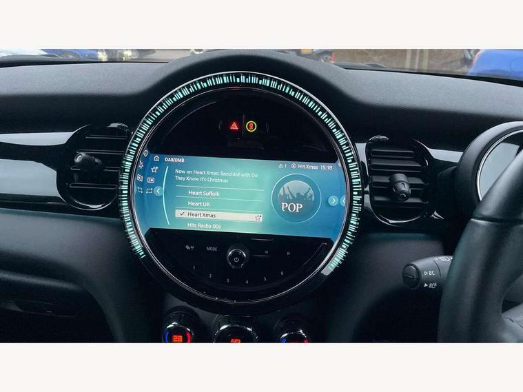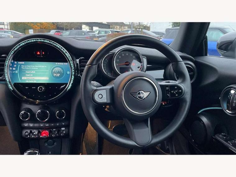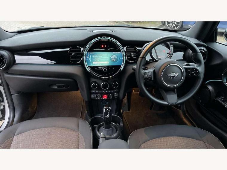 Apple CarPlay, Automatic start/stop function with brake energy recuperation, Compatible mobile phone bluetooth with audio streaming, Cruise control with brake assist, Electro-mechanical speed dependant steering assistance, Instrument cluster, Mini E-call, MINI TeleServices, On board computer, Rear park distance control, Service interval indicator, Double Vanos system, Fully variable valve control, High precision injection, Performance Control, Steptronic transmission with double clutch, FM tuner and DAB digital radio, Automatic headlight activation switch, Body colour fuel filler cap, Chrome border high gloss black slats radiator grille, Dynamic brake lights, Electric windows, Fully electric black softtop with integrated sunroof functionality, Heated rear window, Heated windscreen washer jets, LED headlight with closed ring and daytime driving lights, Left exhaust tailpipe with chrome finisher, Metal door sill strips with MINI imprint, Model logo Cooper on right of tailgate, Rain sensor window wipers, Rear boot, Rear fog lights, Rear LED lights with union jack design, Side scuttle panel with integrated indicator, Sun/heat protection glass, Third brake light, White indicator lenses, 12V Accessory socket in centre console, 2 seat bench in 2nd row, 4 lashing eyes in luggage compartment, 50/50 split folding rear seats, Chrome interior highlights, Colour line - Carbon black, Cupholders, Easy Load boot handles, Front and rear head restraints, Front and rear isofix with front passenger airbag deactivation, Glove compartment, Height and length steering column adjustment, Interior lighting with 12 different colours running across the dashboard, underneath door bezel illuminated laser engraved design on central display, Leather gearshift lever and handbrake gaiters, LED reading lights, vanity mirror lights, front foot well light and spotlight on front seats, Manual air conditioning, Mechanical seat adjustment, driver seat height adjust, forward/back and front seats backrest, Multifunction steering wheel, Single front passenger seat, Sports steering wheel, Storage compartments in doors, Sunvisors with vanity mirrors, Three spoke steering wheel with speed limiter and audio/communication controls, Velour floor mats, Convertible pack with comfort access - Mini Convertible, Navigation pack without Apple car play - Mini Convertible, 3 point seatbelts on all four seats, 6 Airbags - front, side and seat belt tensioners, Active rollover protection, Anti-lock braking system (ABS), DSC - Dynamic Stability Control, Front and rear disc brakes, Hill start assist, Single tone fanfare horn, Tyre pressure monitoring system, Alarm system with tilt sensor, monitoring doors, bonnet interior and tailgate, Electronic vehicle immobiliser, Keyless Go, Piano black interior trim, Tool kit, Tyre repair kit,