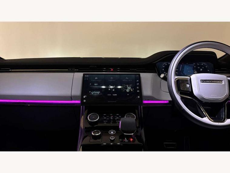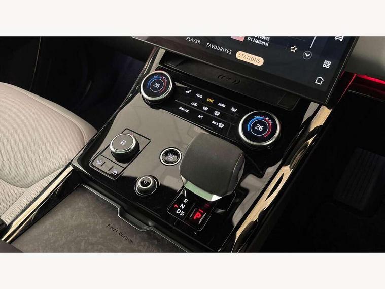 13.1" Touchscreen, 3D 360 degree surround camera with wade sensing, Adaptive cruise control with steering assist, All wheel steering, Android Auto, Apple car play, Blind spot assist, Bluetooth connectivity streaming, Driver condition response, Eco mode, Front and rear parking aid, Head up Display, Interactive Driver display instrument cluster, Lane departure warning system, Lane keep assist, Park assist, Push button start, Rear collision monitor, Rear traffic monitor, Remote, Traffic sign recognition with adaptive speed limiter, Trip computer, Wireless device charging with phone signal booster, 8 speed automatic transmission, Adaptive dynamics, Adaptive off-road cruise control, All wheel drive system, Automatic access height, Dynamic air suspension with dynamic response pro, Electronic active differential with brake torque vectoring, Terrain Response 2, Twin speed transfer box, DAB Radio (Digital Audio Broadcasting), Incontrol protect - SOS emergency call with automatic collision detection, optimised assistance call and Incontrol remote app essential, Meridian sound system, Pivi pro connected, USB/aux input socket, Adaptive brake lights, Automatic headlight levelling, Automatic headlights, Centre high mounted stop light, ClearSight interior rear view mirror, Digital LED headlights with signature DRL and image projection, Electric heated/power fold memory door mirrors with approach lights and auto dimming driver side, Electric windows with one touch open/close and anti trap, Flush deployable exterior door handles, Follow me home lighting, Front and rear recovery eyes, Front fog lights, Headlight power wash, Heated rear window, Heated washer jets, Heated windscreen, Illuminated metal treadplates with First Edition script, Integrated quad tailpipes, LED tail lights, Metal load space scuff plates, Metallic paint, No badges, Privacy glass, Rain sensing windscreen wipers, Rear animated directional indicators, Rear fog lights, Rear side wing doors, Rear wash/wipe, Remote window closing, Side repeater indicators in mirror, Sliding panoramic roof with electric sunblind, Trailer stability assist, Winter wiper park position, 22 way heated and ventilated front and power recline rear seats, massage electric memory front seats and front and rear winged headrests, 3 seat bench in 2nd row, 60:40 seats with power recline and loadthrough, Air quality sensor, Auto air recirculation, Bright metal foot pedals, Centre console with armrest, Customer configurable single point entry, Driver's footrest, Easy boot loading, Ebony console door armrests and seatbelts, Electric adjustable steering column, Four zone climate control, Front and rear cupholders, Front door storage space, Front map lights, Front seat back map pockets, Front stowage pocket, Front/rear passenger grab handles, Gearshift paddles, Heated steering wheel, Isofix child seat preparation, Loadspace cover, Loadspace floor partition, Loadspace Hook, Loadspace light, Loadspace mounting provisions, Lockable glovebox, Luggage tie-downs in loadspace, Multifunction steering wheel, Pollen filter, Power socket, Premium cabin lighting, Rear centre armrest, Rear ISOFIX, Single front passenger seat, Soft close doors, SV bespoke carpet mats, Three 12V accessory power outlets, Twin blade sunvisors with Illuminated vanity mirrors, Upper secondary glovebox, Online pack with data plan - Range Rover Sport, 3 point seatbelts on all seats, Anti-lock braking system (ABS), Brake pre-fill technology, Configurable autolock, Cornering brake control (CBC), DSC - Dynamic Stability Control, EBD - Electronic brakeforce distribution, Electric parking brake, Electronic traction control, Emergency braking, Front seatbelt pretensioners, Front side airbags, Height adjustable front seatbelts, Hill descent control, Hill launch assist, Illuminated seat belt buckles, Low traction launch, Occupant protection assist, Passenger seat occupant detector with front airbags, Power operated child locks, Roll stability control, Seatbelt warning, TPMS (Tyre pressure monitoring system), Immobiliser, Intrusion sensor, Keyless entry, Locking wheel nuts, Perimetric and volumetric anti theft alarm, Remote locking, Moonlight noble chrome interior finishers,
