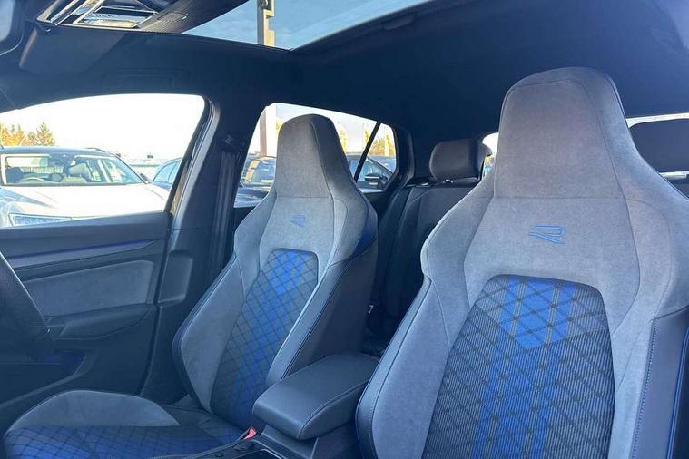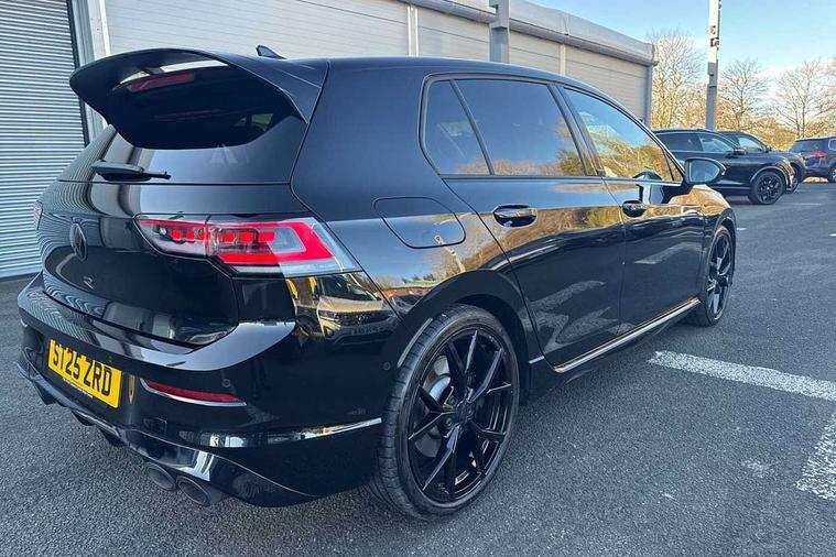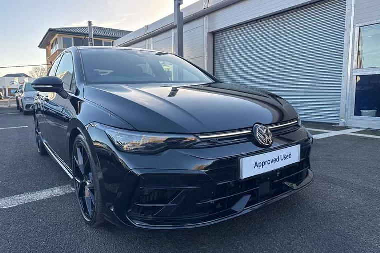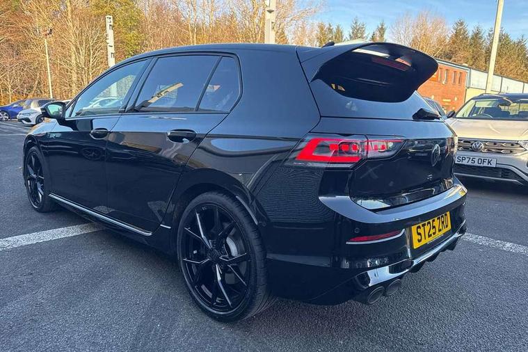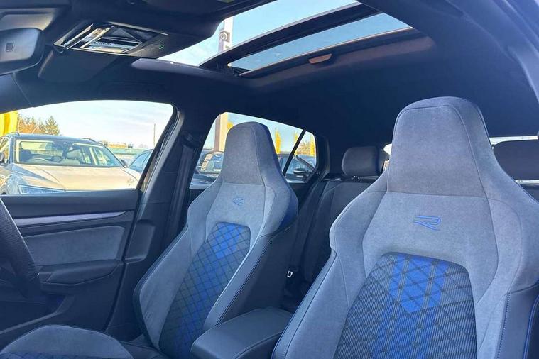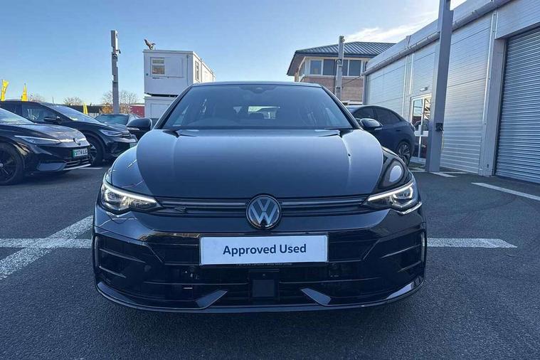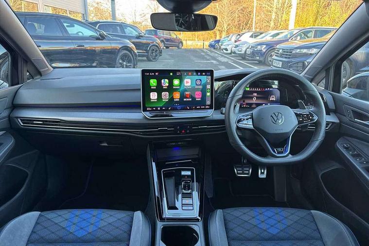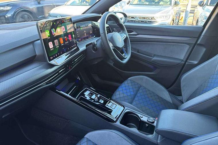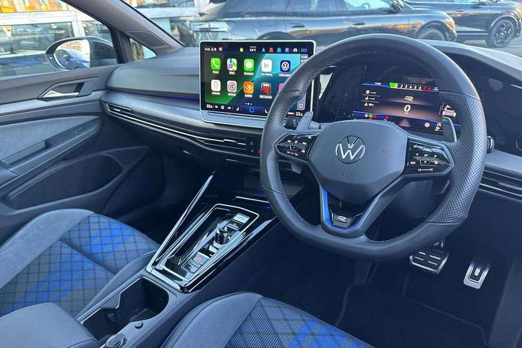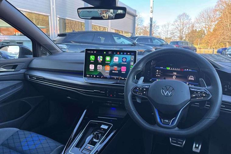 Activated carbon canister, Adaptive cruise control (ACC), Advanced driver attention and drowsiness monitor, Dynamic road sign display, E-Sim card for online connectivity, eCall emergency call system, Electronic maximum speed limit increased to 270 km/h, includes driving Modes 'drift' and 'special', larger roof spolier and GPS laptimer + G-Meter, Multi-color Digital cockpit pro, selection of different info profile possible, Multifunction front facing camera for distance control, Navigation system, Oncoming vehicle braking when turning including swerve support, Side assist blind spot lane change system, rear traffic alert and exit warning system, Speed limiter, Speedo, rev counter, electronic odometer, trip, service interval display, exterior temperature and fuel gauge, Traffic jam assist, Voice enhancer and voice control, Warning signal and warning light for front and rear seatbelts not fastened, We connect plus preparation, We connect preparation, Wireless app connect, All wheel drive - 4Motion, Petrol Particulate Filter, Start-stop system with battery regeneration (recuperation - energy recovery during braking), XDS electronic differential lock for improved traction and handling, 2 USB C ports in front, 2 USB charging sockets on the centre console in the rear charging capacity upto 45W, Digital radio reception (DAB), Diversity antenna for FM reception, Gaming platform via car app, Infotainment system with 12.9" display, Mobile phone interface with inductive charging feature, 3rd brake light, Auto dimming rear view mirror, Automatic headlamp activation with Coming home and Leaving home feature, Black badge on B-pillar, Black mirror caps, Black strips on radiator grille and headlights, Body colour door handles, Darkened headlights, Darkened R Logos and VW logos in front, rear and on fender, Exterior mirrors convex on the left and aspherical on the right, Front and rear electric windows, Front fog lamps and cornering light, Heat insulating windshield made of laminated glass, Illuminated lighting animation with wake up/goodbye scenario, LED matrix headlights with ambient light V2, advanced high beam, dynamic range contol with cornering, LED rear lamp with indicator, poor weather, LED separate daytime running light, R name plate, Rain sensor, Rear fog light on one side and reversing lights on both sides, Rear side wing doors, Rear tinted glass 65% light absorbing from B pillar backwards, Rear windscreen washer and wiper with interval delay, Remote electrically foldable door mirrors, puddle lights and reverse activated passenger's door mirror, Welcome light with surround lighting, 12V socket in front centre console, 12V socket in luggage compartment, 3 rear head restraints, 3 seat bench in 2nd row, 30 colour ambient lighting, illuminated center console storage compartment in front, Air care climatronic 3 Zone automatic climate control with rear air conditioning control panel, Aluminium gearshift handle, Brushed stainless steel pedals, Chrome plated radiator grille inserts, air vent surrounds and light switch surrounds, Entry lights, Front + rear black carpet mats, Front centre armrest, Integrated front head restraints, ISOFIX anchors for child seats on outer rear bench seats and on front passanger seat compatible for i-Size, Luggage compartment lighting, Rear cupholder and loadthough, Single front passenger seat, Soul black instrument panel, Soul black roof lining, Split folding backrest with centre armrest and unsplit rear seat bench, Sun visors with illuminated vanity mirrors, Driver assistance pack - Golf Estate/Hatchback Auto, R styling pack - Golf, Technology park and comfort pro package - Golf Hatchback, 3 point height adj front seatbelts + pretensioners, 3 rear three point seatbelts, ABS, Autonomous emergency braking front assist with pedestrian and cyclist monitoring, Child locks on rear doors, Driver and front passenger airbag with front passenger airbag deactivation, Electronic parking brake with auto hold, ESC (Electronic Stability Control), Extended pedestrian protection measures, Front and rear black brake calipers with darkened R-logo, Hill start assist, Rear disc brakes, Two tone horn, Tyre pressure loss indicator, Volkswagen roadside assistance, Anti theft wheel bolts, Preparation for alcohol interlock, 19" Estoril alloy wheels in black with progressive steering, Sporty vehicle dynamics, Tool kit for tyre mobility set, Tyre mobility kit Includes 12V compressor and tyre sealant, Wheel hub cover with darkened R-logo,