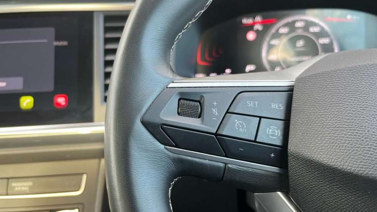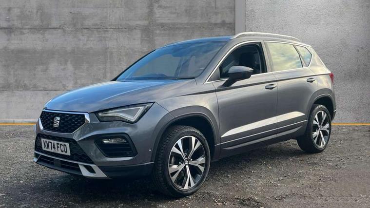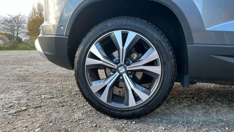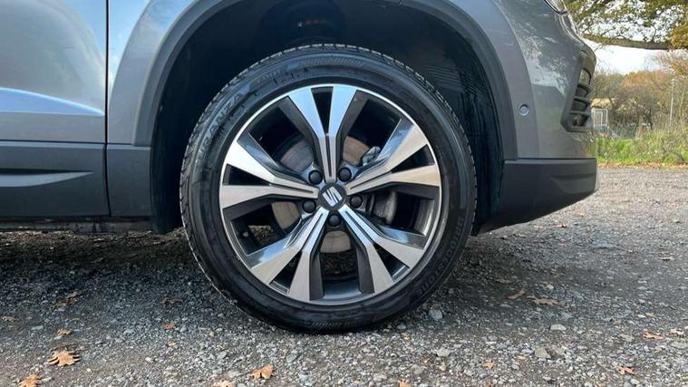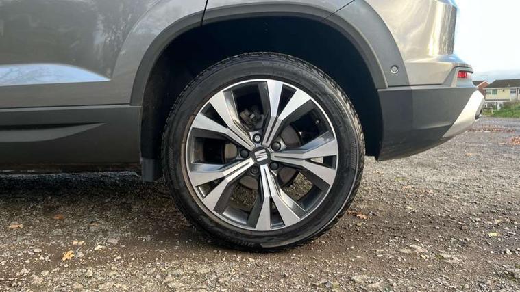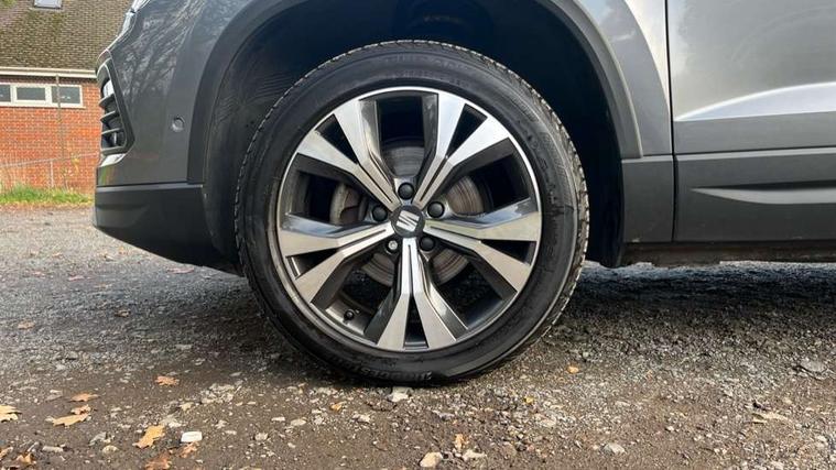 8" Digital cockpit, Colour multi-function on board computer display, Cruise control system with speed limiter, E-call, Outside temperature gauge, PAS, SEAT drive profile with driving experience button - Normal, Sport, Eco and Individual mode, gearshift, steering and throttle response, Self parking functionality (includes front and rear parking sensors), Start/stop system, Tailgate, Trip computer, wired and wireless full link smartphone integration, Wireless phone charger, Steering wheel mounted audio/phone controls, Black wheel arch surrounds, Body colour bumpers, Chrome front grille frame, Chrome roof rails, Chrome side window trim, Daytime running lights, Door mirrors with welcome light silhouette, Dynamic headlight range control with self adjusting whilst driving, Electric adjustable/heated/folding door mirrors, Front and rear electric windows, Full LED headlamps with lens and LED front fog lamps with cornering function, LED 3rd brake light, LED rear tail lights, Rear exhaust tailpipe, Rear fog lights, Rear side wing doors, Rear wash/wipe, Variable front intermittent wipers, 12V socket in front, 3 seat bench in 2nd row, 60/40 split folding rear seat, Cloth upholstery with front comfort seats, Drawer under right front seat, Dual zone climate control, Front and rear head restraints, Front centre armrest, Front seat back storage pockets, Height adjustable driver and passenger seat with lumbar adjustment, ISOFIX points in outer rear seats with top tether anchorage points, Leather sports steering wheel and gear knob, Rear armrest and easy back seat release mechanism from boot, Single front passenger seat, Steering wheel mounted gearshift paddles, Convenience pack - Ateca, Interior lighting pack - Ateca, Navigation system pack with DAB - Ateca, Safety and driving pack with attention and drowsiness assist - Ateca, 3x3 point rear seatbelts, ABS, Traction control system (TCS), Electronic stability control (ESC) and Electronic differential lock system (XDS), Airbags - Driver and front passenger airbag with deactivation, front side, two curtain and driver's knee airbags, Electric parking brake with auto hold function, Front and rear seatbelt reminder, Front assist with autonomous emergency braking, Hill hold control, Manual rear child locks, Single tone horn, Tiredness recognition system, Tyre pressure monitoring system, Alarm, Keyless entry, Locking wheel bolts, Remote central locking, Chrome interior detailing, 18" Performance machined alloy wheels 36/2 in nuclear grey,