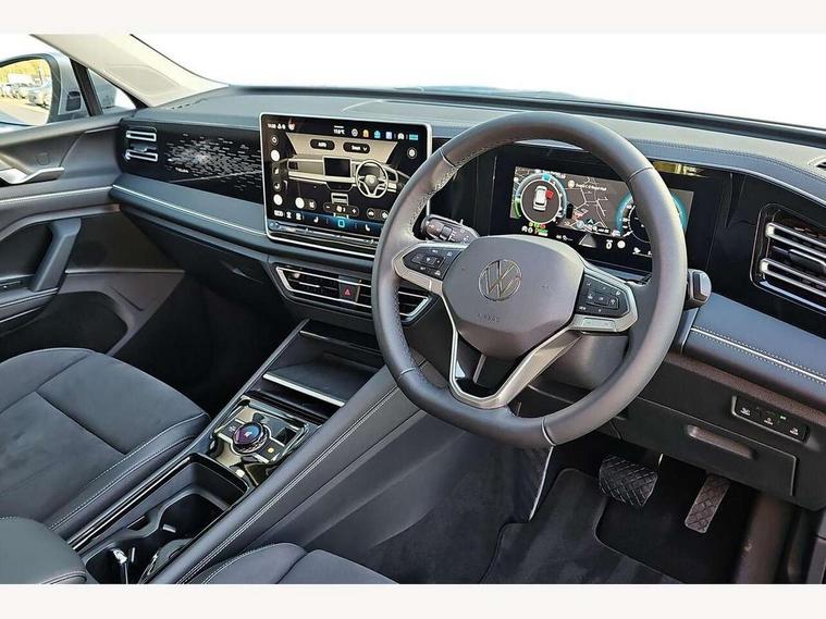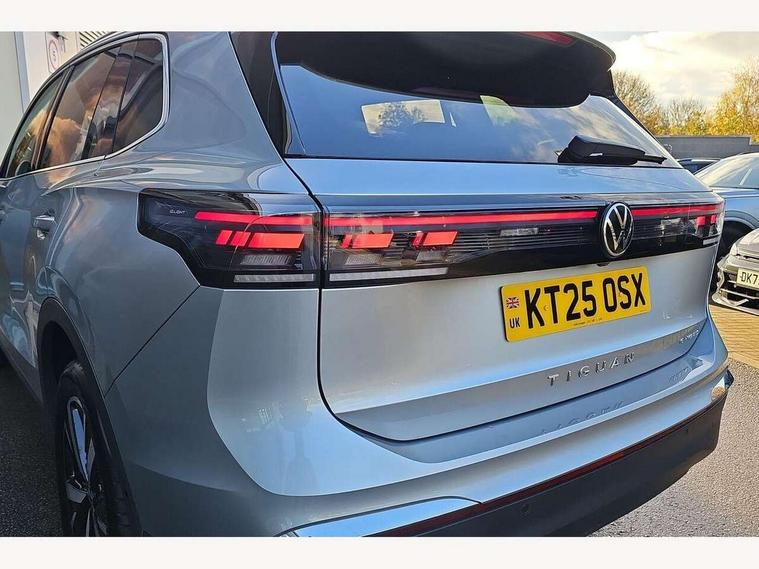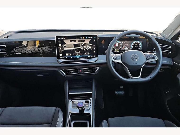 Adaptive cruise control (ACC), Advanced driver attention and drowsiness monitor, Bluetooth mobile phone interface, Car2X technology, Comfort drive travel assist, lane keeping system, lane assist and emergency assist, Digital Cockpit Pro - 10.25" high resolution dash display screen with customisable menus and information, Dynamic road sign display, E-Sim card for online connectivity, eCall emergency call service, Front Assist - Autonomous emergency braking with pedestrian and cyclist monitoring, Lane change system, Side assist, Rear traffic alert and Exit warning system, Multifunction front facing camera, Oncoming vehicle braking when turning including swerve support, Park assist pro with park distance control (Remote park assist), Power assisted steering with speed sensitive, Start/stop system with regenerative braking, Warning signal and warning light for front and rear seatbelts not fastened, Wireless App-Connect, Adaptive chassis control DCC pro includes driving mode selection, Charging cable Mode 3 Type 2 / 3 (16A), Front shock absorption, Front wheel drive, Rear shock absorption, Digital radio reception (DAB), Diversity antenna for FM reception, Air intake with Chrome trim, Ambient lighting with logo projection, Auto dimming interior rear view mirror, Automatic headlight control system, Body colored bumpers in R-Line style, Body coloured door handles, Body-coloured exterior mirror housings, Chrome moldings on the side windows, Coming/leaving home lighting function, Heat insulating glass in side and rear windows, Heated rear window, Heated windscreen washer jets, High level 3rd brake light, Illuminated door handle recesses, Illuminated lightline between headlamps, Laminated safety glass from B-pillar backwards 90% tinted, Laminated safety glass windshield, LED Day time running light, Rain sensor windscreen wipers, Rear fog light on one side, reversing light on both sides, Rear side wing doors, Rear wiper, Silver roof rails, 12V outlet in center console rear and in luggage compartment, 12V socket in centre console, 3 bench rear seats in 2nd row, Air care climatronic 3 zone air conditioning system with rear air conditioning control panel, Carpet mats, front and rear, Centre console with illuminated storage compartment with sliding cover and two drinks holders, Ceramique headlining, Chrome elements on the mirror switch and power window switches and door pulls, Door and side trim panel with leatherette insert, Door sill protectors, Front centre armrest, Interior ambient lighting with 30 colour options, ISOFIX anchors for child seats on outer rear seats and front passenger seat compatible with i-Size, Mechanical rear seat release, Power adjustable lumbar support in front, Rear bench seat, split folding, longitudinally movable and folding with load-through hatch and centre armrest, Safety optimised front head restraints, Single front passenger seat, Sports comfort seats in front, Sun visors with illuminated vanity mirrors, Three rear head restraints, Variable luggage compartment floor, Comfort package with park assist plus and Safelock - Tiguan, Driver assistance package - Tiguan, 3 point seat belt for centre rear seats, 3 Point seat belts in front with pretensioners, 3 point seatbelts in outer rear with ECE label, Driver and front passenger airbag with front passenger airbag deactivation, Electronic parking brake with auto hold, Front and rear curtain airbags, Front and rear side airbags, Front centre airbag, Front disc brakes, Hill start assist, Manual child proof rear door locks, Rear disc brakes, Two tone horn, Warning triangle, Decorative inserts Cross in dash and front door panels, Interior door handle in matte chrome, Soul instrument panel, Tyre mobility kit including compressor and sealing foam,