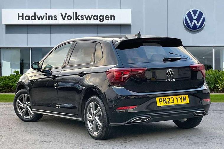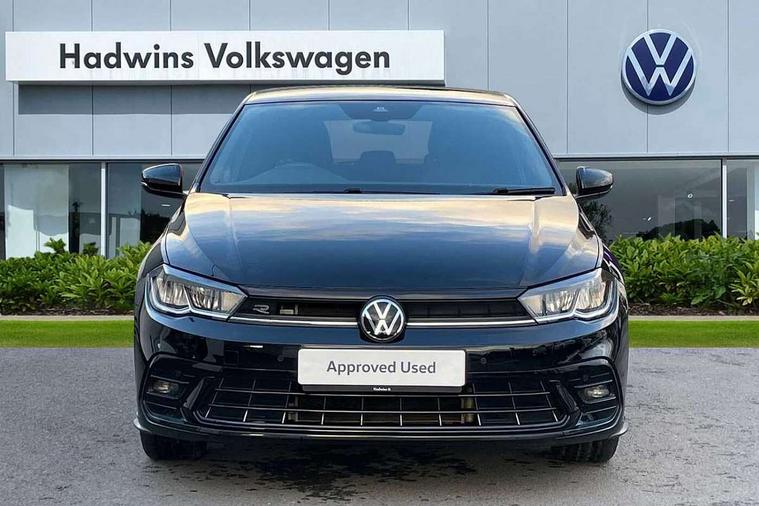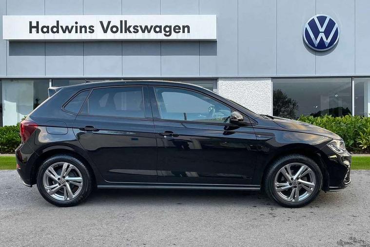 Adaptive cruise control without follow-to-stop and speed limiter, Bluetooth mobile phone interface, Digital Cockpit Pro with 10.25" Display, Driver alert system, Dynamic road sign display, Emergency call service, Power assisted speed sensitive steering, Preparation for We connect and We connect plus, Speedo and rev counter, electronic odometer, trip, service interval display and fuel gauge, Standard rear axle, Travel Assist - Lane keeping system and traffic jam assist, Travel assist including emergency assist, Trip computer, Warning signal and warning light for front and rear seatbelts not fastened, Washer fluid level indicator, Wireless app connect, Front wheel drive, Rear shock absorpion, Start-stop system with battery regeneration (recuperation - energy recovery during braking), DAB Digital radio, Diversity antenna for FM reception, Front and rear 6 speakers, Body colour bumpers, Body colour door handles, Electric front windows, Front scuff plates with R-Line logo, Heat insulating darkened glass in side and rear windows, Heat insulating glass windscreen, Power folding adjustable/heated exterior mirrors and front passenger exterior mirror lowering function, Rear electric windows, Rear fog light, Rear side wing doors, Rear windscreen washer and wiper with interval delay, Third brake light, 12V power socket in centre console, 2 USB-C ports in the front, 2 USB-C charging sockets on the center console in the rear, 3 rear head restraints, 60/40 split folding rear seat and rear seat bench not split, Air care climatronic air conditoning system with active combination filter and 2-zone temperature control, Black roof lining, Chrome plated radiator grille inserts, air vent surrounds and light switch surrounds, Door and side trim panel, Driver and front passenger seat height adjustment, Driver/passenger sunvisors with illuminated vanity mirrors, Front + rear carpet mats in recycled material, Front centre armrest, Front footwell illumination, Front seat backrest storage pockets, Front sports comfort seats, Handbrake lever handle in leather, Headliner in recycled material, Isofix child seat preparation easy-fit (for two outer rear seats, and front passenger seat) compatible with I-size, Karoso artvelours cloth upholstery, Leather trimmed gear knob, LED interior light with switch off delay and dimmer, 2 reading lights front and rear, Luggage compartment cover, Luggage compartment floor, Luggage compartment lighting, Lumbar adjustment for front seats, Multifunction steering wheel, Single front passenger seat, Stainless steel pedals, Standard pedal cluster, Light and sight pack - Polo R-Line/Black Edition, 3 point height adj front seatbelts + pretensioners, 3x3 point rear seatbelts, ABS, Driver and front passenger airbag with front passenger airbag deactivation, Drivers and front passengers safety optimised head restraints, ESC (Electronic stability control) + EDL (Electronic Differntial lock) and ASR (Traction control), Extended and predictive pedestrian/ cyclist protection, Front curtain and side airbags with center airbag, Hill hold control, Manual child lock in rear doors, Single tone horn, Tyre pressure loss indicator, Alarm with interior protection, Anti-theft alarm system with interior monitoring, backup horn, and towing protection, Anti-theft wheel bolts, Electronic engine immobiliser, Chrome applications on rotary light, mirror adjustment, window regulator switches, outlet with frame in black, Dark grey anodised matt decorative inserts in dash and front door panels, Low rolling resistance tyres,