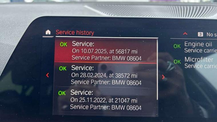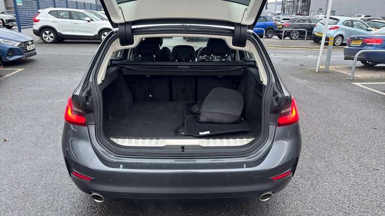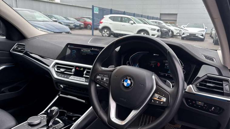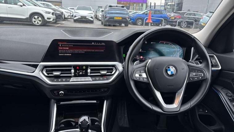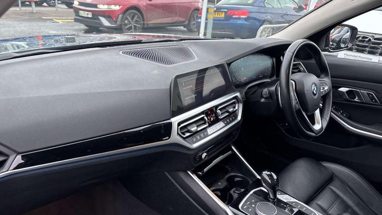 Active guard plus, Attentiveness assist, Auto start-stop, BMW ConnectedDrive oline services with BMW apps, BMW iDrive controller on centre console, BMW service history, BMW Teleservices, Brake pad wear indicator in front and rear, Check Control warning system for monitoring of lights and door/luggage compartment open warning, Condition based service, Electric power steering with Servotronic steering optimised at all speed ranges, Gearshift time display in manual mode, Instrument cluster with speedometer with mph readout, tachometer, fuel gauge and oil temperature gauge, Integrated owners handbook, Oil sensor for level and grade, warning by check control system, On board computer - average speed+fuel consumption, service interval, clock/date, odometer/trip meter, outside temperature display and ice warning, Optimum shift indicator, Personal Profile - automatic lock when driving away selectable, Balanced 50/50 weight distribution, Battery cut-out switch, Drive performance control - ECO PRO, comfort and sport modes, EU6 emissions management, Sport automatic transmission with steering-wheel mounted gearshift paddles and launch control, Stroke dependent dampers, DAB tuner, Electronic service booklet, Acoustic glazing, Active airstream chrome frame kidney grille with 8 high gloss black vertical slats, Automatic headlight activation/adjustment, Automatic headlight beam throw control with load dependent regulating reaction, dynamic compensation of braking dive and acceleration squat, Body colour door handles, Body colour fuel filler flap, Body colour mirror caps with bottom segment in matt black, Body colour roof mouldings, Brushed aluminium inserts in the front door sill finishers with BMW designation, Dynamic brake lights, Electric windows - front and rear, with open/close fingertip control, anti-trap facility and comfort closing, Exhaust tailpipe - split left and right, Exterior mirrors - electrically folding with anti-dazzle, Fading support, Front and rear bumper system with replaceable deformation elements, Green tinted heat protection glazing, High gloss black exterior B pillar, High gloss black front bumper with specific design elements, High gloss black rear bumper with specific design elements, Interior rear view electrochromatic mirror with automatic anti dazzle function, LED daytime running lights, LED front fog lights, Lightweight engineering, Model designation on right side of tailgate, Rear wiper, Shark fin antenna, T-shaped design element right and left in black high gloss, Two part LED tailights in L-shape with components in smoked glass, brake light, LED turn indicator and rear fog light, Visible VIN plate, Welcome lights in interior and door handle area, Windscreen wipers with integrated washing jets, 12V power socket in front storage compartment, 2 front cupholder in centre console with clamping elements and matt black inlay, 3 zone automatic air conditioning, 4 pieces lashing eyelets in luggage compartment, 40:20:40 split folding rear seat with loading system, Ambient lighting with welcome carpet light, Armrest integrated in front and rear door trim + front centre console armrest, Centred top Luggage compartment lights, Four grab handles integrated in roof lining, Front and rear door exit lighting (left / right), Front and rear door pockets, Front and rear reading lights, Front and rear velour floor mats, Front head restraints, Front sport seats, Heated driver and front passenger seats, Height adjustable mechanically and infinitely variable steering column, Illuminated armrest storage compartment, Illuminated glove compartment with separate small compartment, Interior lighting - front centre over interior mirror with soft light, rear centre and front and rear footwell lighting, Make-up mirror lights, Rear centre armrest with 2 cupholders, Rear centre console with storage compartment and ventilation grille, Sunvisors with vanity mirrors and ticket pocket, Three spoke multifunction sport leather steering wheel, Toolkit located in luggage compartment, Vernasca leather upholstery, Connected pack professional - 3 Series Saloon/Touring, Live cockpit professional pack - 3 series, 2 tone horn, 3 rear seats with non folding headrests, Airbags activation controlled with intensity and scope, BMW emergency call, Brake energy regeneration, Braking pre-tensioning, Child proof locking system in rear door, Child seat ISOFIX attachment rear outer seats, Coasting in idle in ECO PRO mode, Crash sensor activating of airbags, Unlocking doors, hazard warning lights, interior light, safety battery terminal, Deactivation of fuel pump in the event of a crash, Driver and front passenger side airbags, integrated in the door side seat backrest bolsters for all seat variants, Driver/Front Passenger airbags, Dry braking, Dynamic brake control, Dynamic stability control + (DSC+) - Anti-lock Braking System (ABS) with brake assist and cornering brake control + Automatic Stability Control (ASC), Dynamic Traction Control - DTC, Electric parking brake including automatic hold function and automatic release of the parking brake when driving off, Electronic differential lock control (EDLC), Front passenger manual airbag deactivation, Head airbags for all 4 outer seats, Hill start assist, Seat belt security check for driver and front passenger, Side impact protection, Three 3 point seat belts on all seats including front belt stopper, pyrotechnic belt tensioners and belt force limiters, Tyre pressure monitoring with three level warning strategy, Ventilated front and rear disc brakes, Warning triangle and first aid kit, Alarm system (Thatcham 1) with remote control and electronic engine immobiliser, Central locking switch for all doors, fuel filler cap and luggage compartment, Remote control with integrated key one button open/close vehicle and windows, sole opening of the luggage compartment lid and panic mode, Start/stop button with Comfort Go keyless engine start and auto Start/stop deactivation button, Reduced 