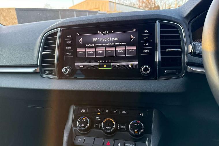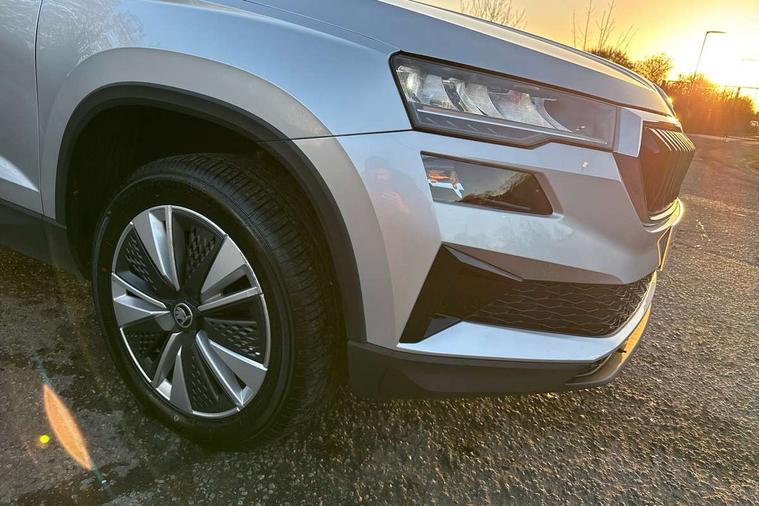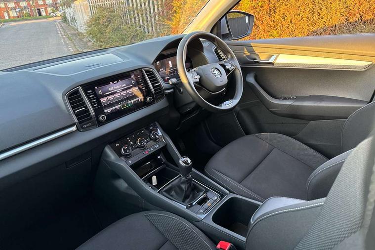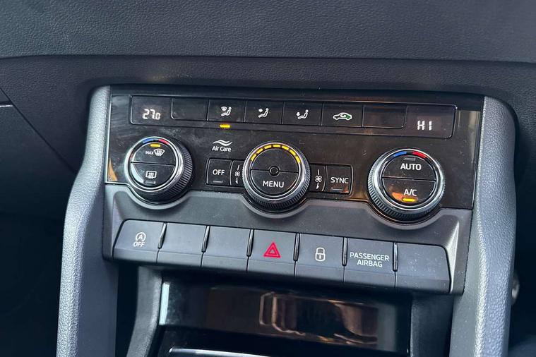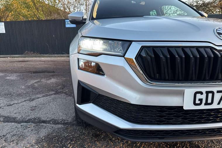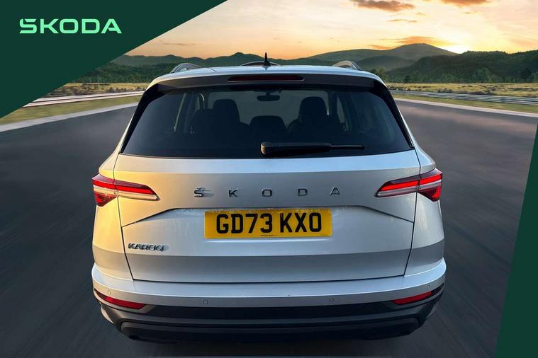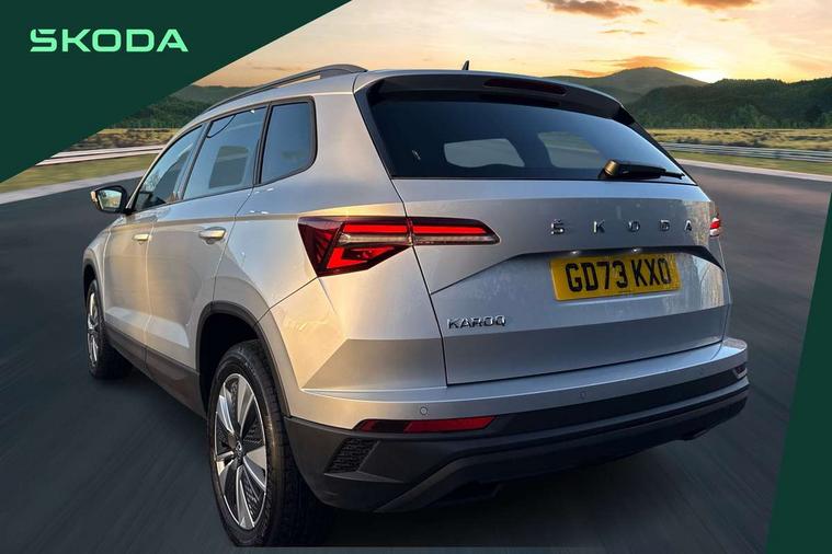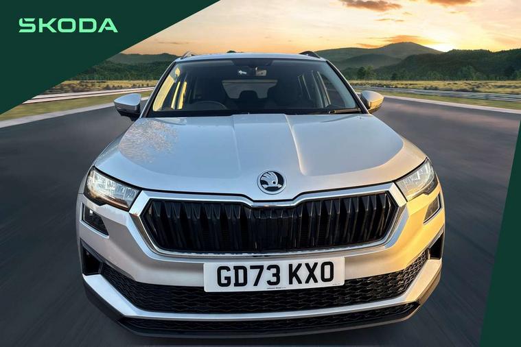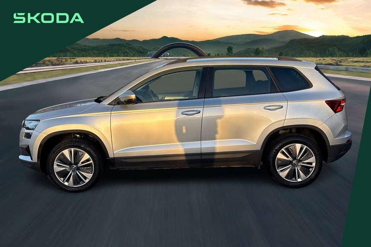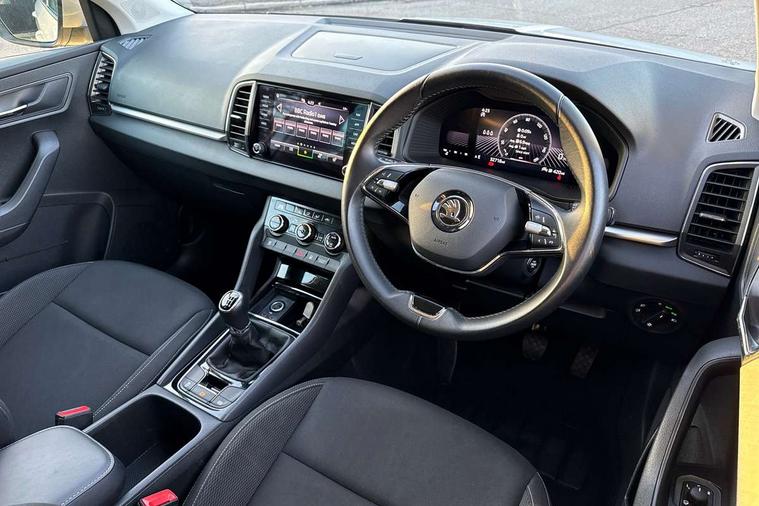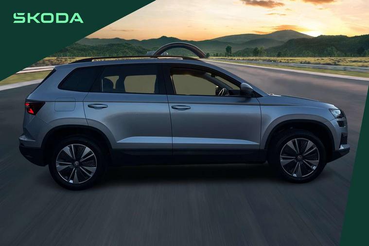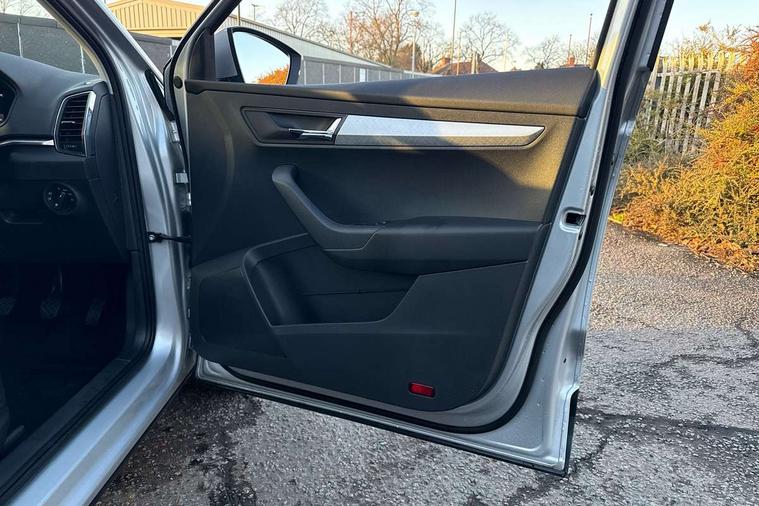 8" Digital display, Amundsen satellite navigation with 8" touchscreen display with maps Europe, WLAN and web radio, Care connect, Driver fatigue sensor, Electro-mechanical PAS, Emergency services call system, Outside temperature gauge, Service interval indicator, SmartLink wireless for Apple and wired for Android, Start/stop system with regenerative braking, USB C Port x 2 in front centre console, 8 Speakers, DAB radio with Bluetooth, USB connection, Acoustic glass, Aero front windscreen wipers with intermittent function, Auto dimming rear view mirror with light and rain sensors, Black electric window control buttons, Body colour door mirrors and handles, Dynamic headlight range control with cornering light function, Electric front and rear windows with child proof lock, Electrically adjustable heated folding and auto dimming door mirrors, Front fog lights, Heated rear windscreen, LED daytime running lights, LED Headlights, LED rear lights with high functionality welcome effect and dynamic indicators, Light assistant (coming/leaving home/tunnel light), Plastic scuff plates, Privacy glass, Rear side wing doors, Rear window wiper with washer system and intermittent control, Safety reflectors on front doors, Third brake light, 1.5 litre bottle holders in driver and front passenger door panels, 12V socket in boot, 12v socket in front centre armrest with storage compartment and rear air vents, 2 x Tablet holder, 3 rear height adjustable headrests, 3 seat bench in 2nd row, 4 foldable roof handles with rear coat hooks, Black floor carpet, Chrome inner door handles, Double sided boot floor, Driver/front passenger reading lights, Foldable hooks in the boot, Folding tables on the front seat backrests, Front head restraints, Height adjustable driver and passenger seat, Height adjustable front three point seats belts with tensioners, Height/reach adjust steering wheel, Ice scraper, Illuminated glovebox, Illuminated luggage compartment, Isofix child seat preparation for front passenger seat, Isofix child seat preparation outer rear, Manual lumbar support for front seats, Pearl grey interior ceiling, Pen holder, Pollen filter, Rear boot cover, Rear reading lights, Rubbish bin door, Safety vest holder, Single front passenger seat, Storage box in upper central dashboard closed, Sunvisors with illuminated vanity mirrors, Textile floor mats, Ticket holder, Umbrella under passenger seat, Boot pack - Karoq, Automatic door unlocking in case of crash, Automatic fuel cut off in case of crash, Child locks on rear doors, Driver airbag, Electronic parking brake with auto hold function, Emergency rear braking signal, ESC including ABS, MSR, ASR, EDS, HBA, DSR, RBS, MKB and traction control, Front side airbags, Hill hold control, Knee airbags, Passenger airbag with switch-off function, Pedestrian monitor, Seatbelt reminder signalisation and pretensioner for all seats, Three point seatbelts rear, Two tone horn, Tyre pressure display, Tyre pressure monitor, Alarm with interior monitoring, back up horn and tilt sensor with safe function, Electronic engine immobiliser, Remote central locking with 2 remote folding keys, Black centre console, Chrome framed air vents, Satin black dashboard, Satin black door trim, Anti-theft wheel bolts protection, Tool kit,