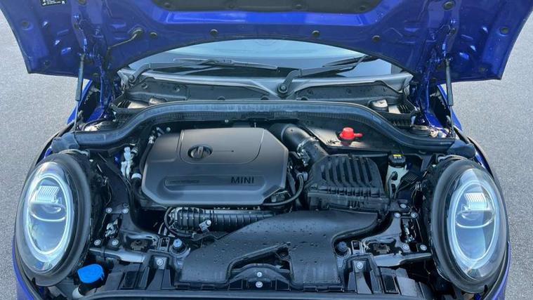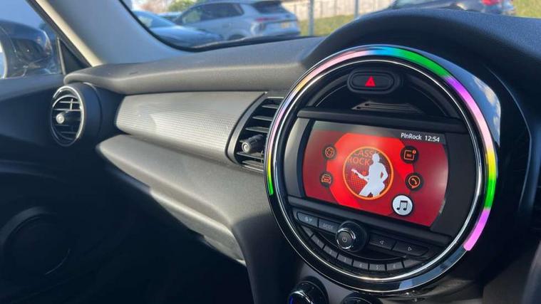 Automatic start/stop function with brake energy recuperation, Compatible mobile phone bluetooth with audio streaming, Electro-mechanical speed dependant steering assistance, Instrument cluster, Mini E-call, MINI TeleServices, On board computer, Service interval indicator, Double Vanos system, Fully variable valve control, High precision injection, 6.5" touchscreen with LED ring, FM tuner and DAB digital radio, Automatic headlight activation switch, Body colour fuel filler cap, Chrome border high gloss black slats radiator grille, Dynamic brake lights, Electric front+rear windows, Heated rear window, Heated windscreen washer jets, LED headlight with closed ring and daytime driving lights, Left exhaust tailpipe with chrome finisher, Metal door sill strips with MINI imprint, Model logo Cooper on right of tailgate, Rain sensor window wipers, Rear fog lights, Rear LED lights with union jack design, Rear window wiper, Side scuttle panel with integrated indicator, Sun/heat protection glass, White indicator lenses, 12V Accessory socket in centre console, 4 lashing eyes in luggage compartment, 60/40 split folding rear seat, Chrome interior highlights, Colour line - Carbon black, Cupholders, Front and rear head restraints, Front and rear isofix with front passenger airbag deactivation, Glove compartment, Height and length steering column adjustment, Interior lighting with 12 basic colours selectable via toggle switch in roof, Leather gearshift lever and handbrake gaiters, LED reading lights, vanity mirror lights, front foot well light and spotlight on front seats, Manual air conditioning, Mechanical seat adjustment, driver seat height adjust, forward/back and front seats backrest, Mini logo projection on floor from drivers exterior mirror, Multifunction steering wheel, Satellite grey headlining, Storage compartments in doors, Sunvisors with vanity mirrors, 3 point seatbelts on all four seats, 6 Airbags - front, side, head and seat belt tensioners, Anti-lock braking system (ABS), DSC - Dynamic Stability Control, Front and rear disc brakes, Hill start assist, Single tone fanfare horn, Tyre pressure monitoring system, Alarm system with tilt sensor, monitoring doors, bonnet interior and tailgate, Electronic vehicle immobiliser, Start/stop toggle with keyless go, Tool kit,