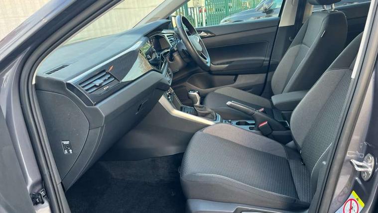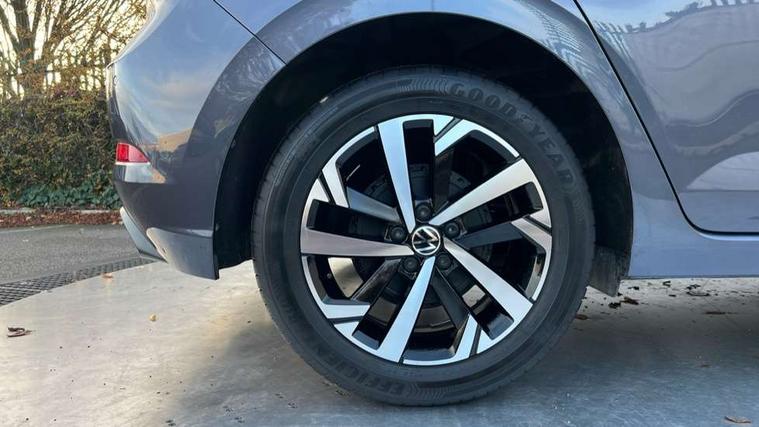 Advanced driver attention and drowsiness monitor, Bluetooth mobile phone interface, Dynamic road sign display, Emergency call service, Multifunction front facing camera for distance control, Park distance control, Power assisted speed sensitive steering, Predictive adaptive cruise control without follow-to-stop and speed limiter, Preparation for navigation system with media and internet package, Preparation for We connect and We connect plus, Rear view camera, Speedo and rev counter, electronic odometer, trip, service interval display and exterior temperature gauge, Standard rear axle, Travel Assist - Lane keeping system and traffic jam assist, Travel assist including emergency assist, Trip computer, Warning signal and warning light for front and rear seatbelts not fastened, Washer fluid level indicator, Wireless app connect, Front wheel drive, Rear shock absorpion, Start-stop system with battery regeneration (recuperation - energy recovery during braking), DAB Digital radio, Diversity antenna for FM reception, Front and rear 6 speakers, Automatic dimming interior rear view mirror, Automatic headlight control with LED separate daytime running lights with coming/leaving home function, Body colour bumpers with chrome inserts, Body colour door handles, Body colour door mirrors, Electric front windows, Engine badge deletion, Headlight range adjustment, Heat insulating and laminated safety glass windshield, LED Headlights, LED rear combination lamps, Power folding adjustable/heated exterior mirrors and front passenger exterior mirror lowering function, Rain sensor, Rear electric windows, Rear fog light, Rear side wing doors, Rear tinted glass from B-pillar backwards approx 65% tinted, Rear windscreen washer and wiper with interval delay, Third brake light, 12V power socket in centre console, 2 front and 2 rear reading lights with switch off delay and dimmer, 2 USB-C ports in the front, 2 USB-C charging sockets on the center console in the rear, 3 rear head restraints, 60/40 split folding rear seat and rear seat bench not split, Ceramique roof lining, Chrome plated radiator grille inserts, air vent surrounds and light switch surrounds, Door and side trim panel, Driver and front passenger seat height adjustment, Driver/passenger sunvisors with illuminated vanity mirrors, Front centre armrest, Front seat backrest storage pockets, Front standard seats, Handbrake lever handle in leather, Hartley/Thomas cloth upholstery, Headliner in recycled material, Isofix child seat preparation easy-fit (for two outer rear seats, and front passenger seat) compatible with I-size, Leather trimmed gear knob, Luggage compartment cover, Luggage compartment lighting, Removable luggage compartment floor, Single front passenger seat, Standard climatic zones, Standard pedal cluster, Three spoke leather wrapped multifunction steering wheel with shifting paddles, Light and vision pack - Polo, 3 point height adj front seatbelts + pretensioners, 3 point seat belt for centre rear seat, 3 point seatbelts, outer rear with ECE lable, ABS, Driver and front passenger airbag with front passenger airbag deactivation, Drivers and front passengers safety optimised head restraints, ESC (Electronic stability control) + EDL (Electronic Differntial lock) and ASR (Traction control), Extended and predictive pedestrian/ cyclist protection, Front assist with autonomous emergency braking (for Adaptive Cruise Control ACC up to 130 mph), Front curtain and side airbags with center airbag, Front disc brakes, Hill hold control, Manual child lock in rear doors, Rear drum brakes, Single tone horn, Tyre pressure loss indicator, Alarm with interior protection, Anti-theft alarm system with interior monitoring, backup horn, and towing protection, Anti-theft wheel bolts, Electronic engine immobiliser, Lava stone black gloss/matt decorative inserts in dash and front door panels, 16" Torsby alloy wheels, Low rolling resistance tyres,