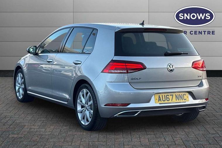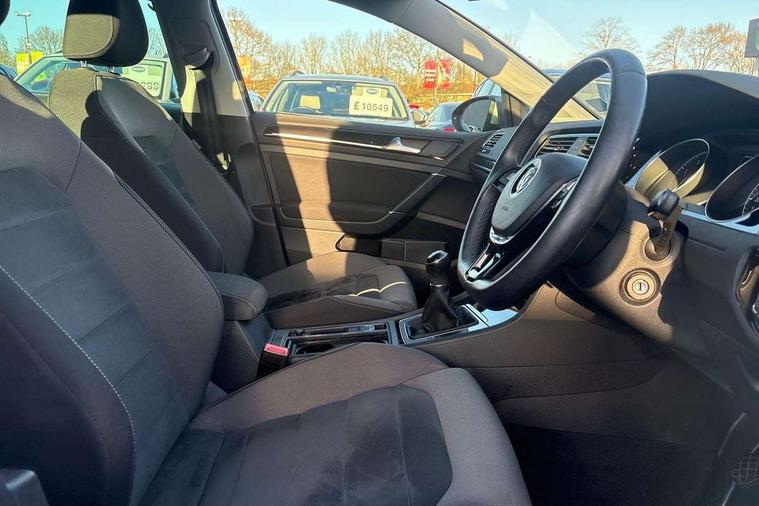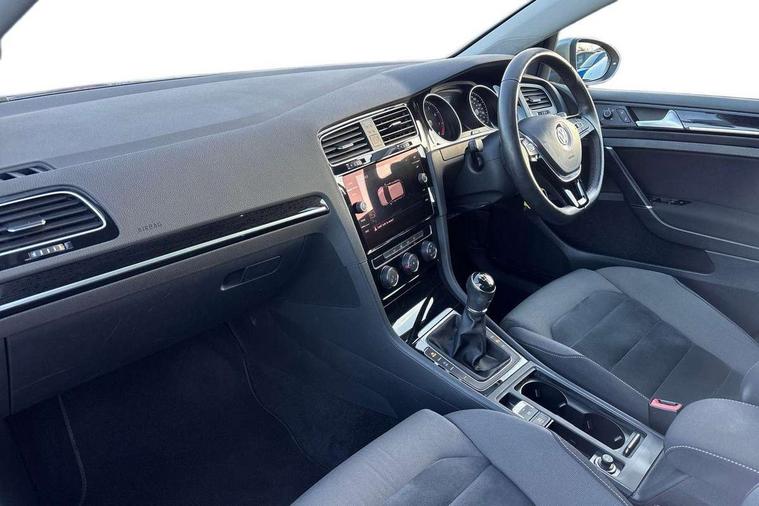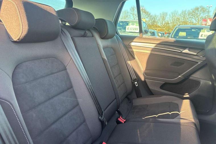 'Lights On' Reminder warning buzzer, 8" touch screen, Adaptive Cruise Control with pedestrian detection and speed limiter, App-Connect, Bluetooth hands free telephone connection, Brake pad wear indicator warning light, Driver alert system, Driver profile selection, Exterior temperature gauge, Front assistant collision mitigation, Instrument cluster in white, Multifunction computer, PAS - speed related, Rev counter, Trip and service interval display, Ultrasonic front and rear optical and audible parking sensors, Warning buzzer and light for front seatbelts unfastened, Lowered sports suspension, XDS electronic differential lock, CD/MP3/WMA, USB and SD card reader, aux-in, Composition media system, DAB Digital radio, Auto dimming rear view mirror, Automatic coming/leaving home lighting function, Automatic headlights, Black front air intake and radiator grille with chrome insert, Black rear diffuser, Body colour bumpers, Body colour door handles, Body colour door mirrors, Chrome grille surround, Electric front windows, Electric rear windows, Electrically adjustable and heated door mirrors, Heat insulated tinted glass 65% light absorbing from B pillar back, Heated rear windscreen, LED daytime running lights, LED front fog lights with static cornering light function, LED rear lights, Rain sensor, Rear roof spoiler, Rear windscreen washer and wiper with interval delay, 12V socket in luggage compartment, 3 rear headrests, 3 spoke steering wheel, 60/40 split folding rear seat, Bag hook in luggage compartment, Boot lashing points, Cooled glovebox, Courtesy light delay, Cover for storage compartment in centre, Dust/pollen filter, Front + rear carpet mats, Front centre armrest with storage box and rear air vents, Front passenger drawer stowage, Front passenger seat height adjust, Front seat back storage pockets, Grab handles, Height/reach adjust steering wheel, Illuminated vanity mirrors, Isofix preparation for 2 rear child seats, Load through provision with rear centre armrest and cupholders x2, Luggage compartment cover, Luggage compartment lighting, Multifunction leather steering wheel with leather gear knob/handbrake grip, Overhead storage box, Pearl grey headlining, Storage box in luggage compartment, Storage compartments in doors, Sun visors, Variable boot floor, height adjustable and removable, Ambient lighting pack - Golf, Mirror pack - Golf, 3 point height adj front seatbelts + pretensioners, 3 rear 3 point seatbelts, ABS, Automatic post collision braking, Child locks on rear doors, Driver/Front Passenger airbags, Driver/Passenger whiplash optimised head restraints, Drivers knee airbag, Electronic parking brake with auto hold, ESP with EDL + ASR, Front and rear curtain airbags, Front passenger airbag deactivation, Front side airbags, Pre crash system, Tyre pressure monitor, Alarm with interior protection, Electronic engine immobiliser, Remote central locking with 2 remote folding keys, Chrome-plated light switch surround, Piano black centre console, Tumbler decorative inserts, Steel space saver spare wheel,